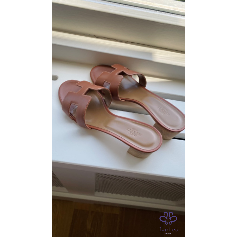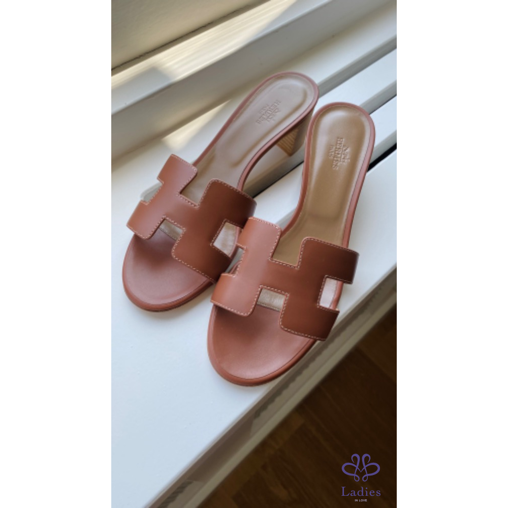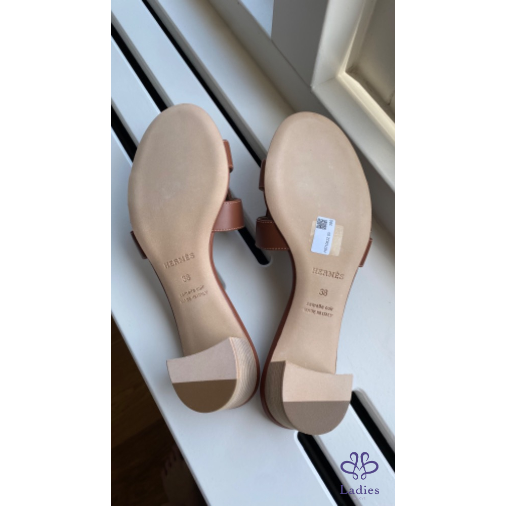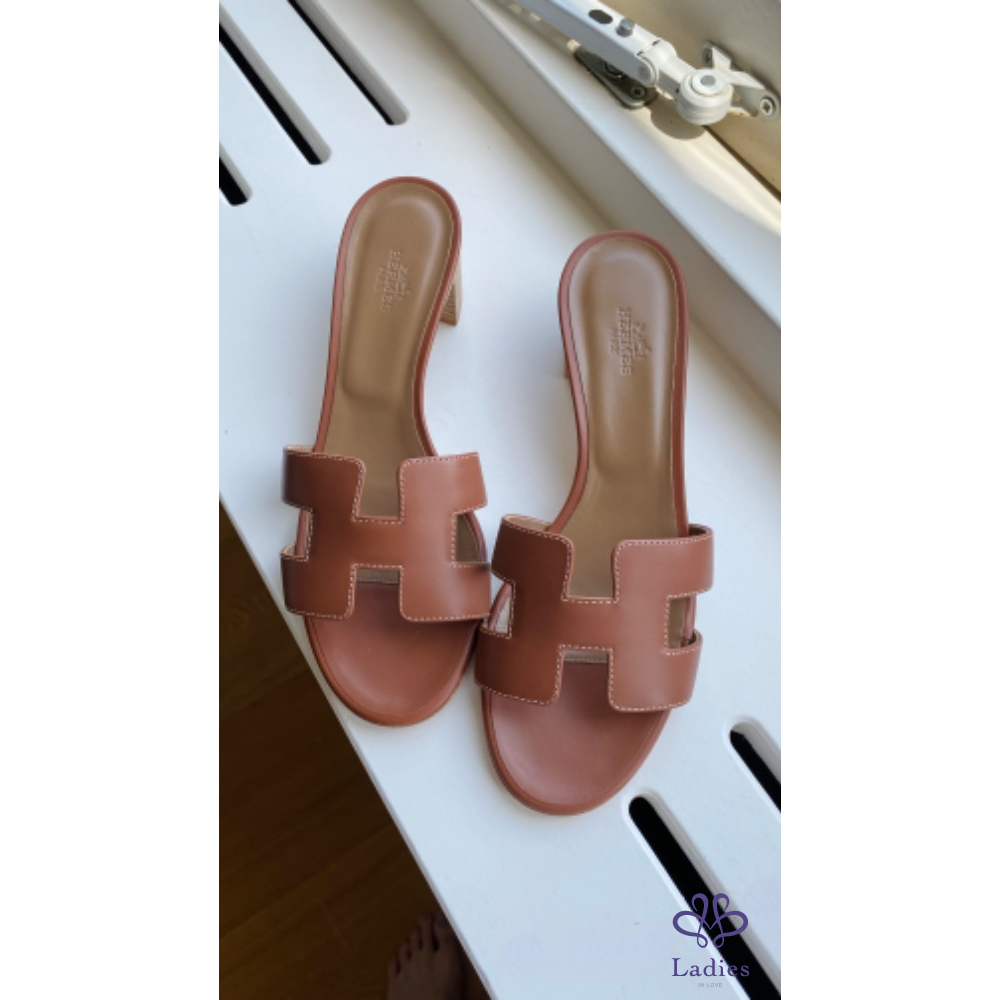 全新Hermes Oasis 低跟涼鞋 焦糖色