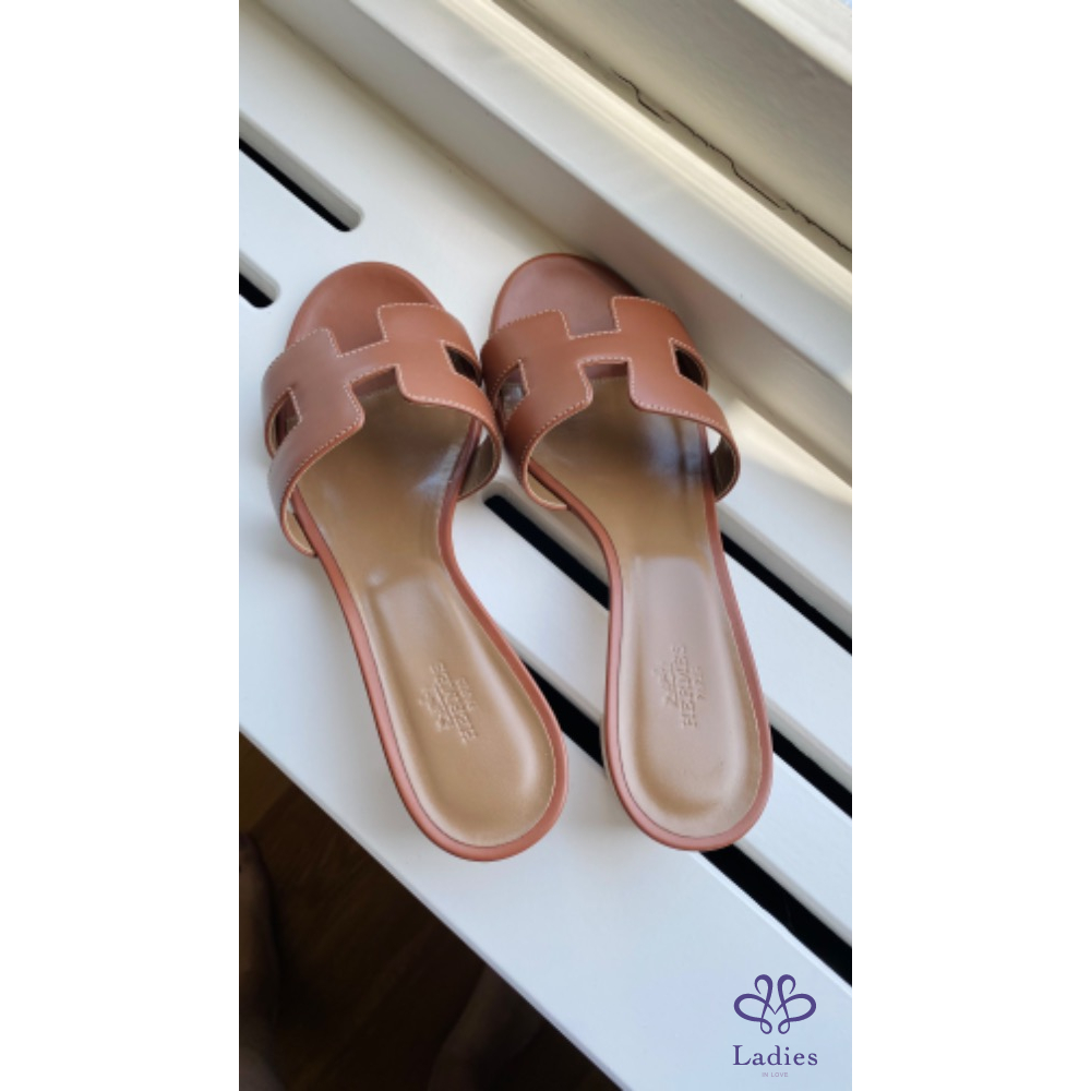 首頁 精品女鞋 全新Hermes Oasis 低跟涼鞋 焦糖色