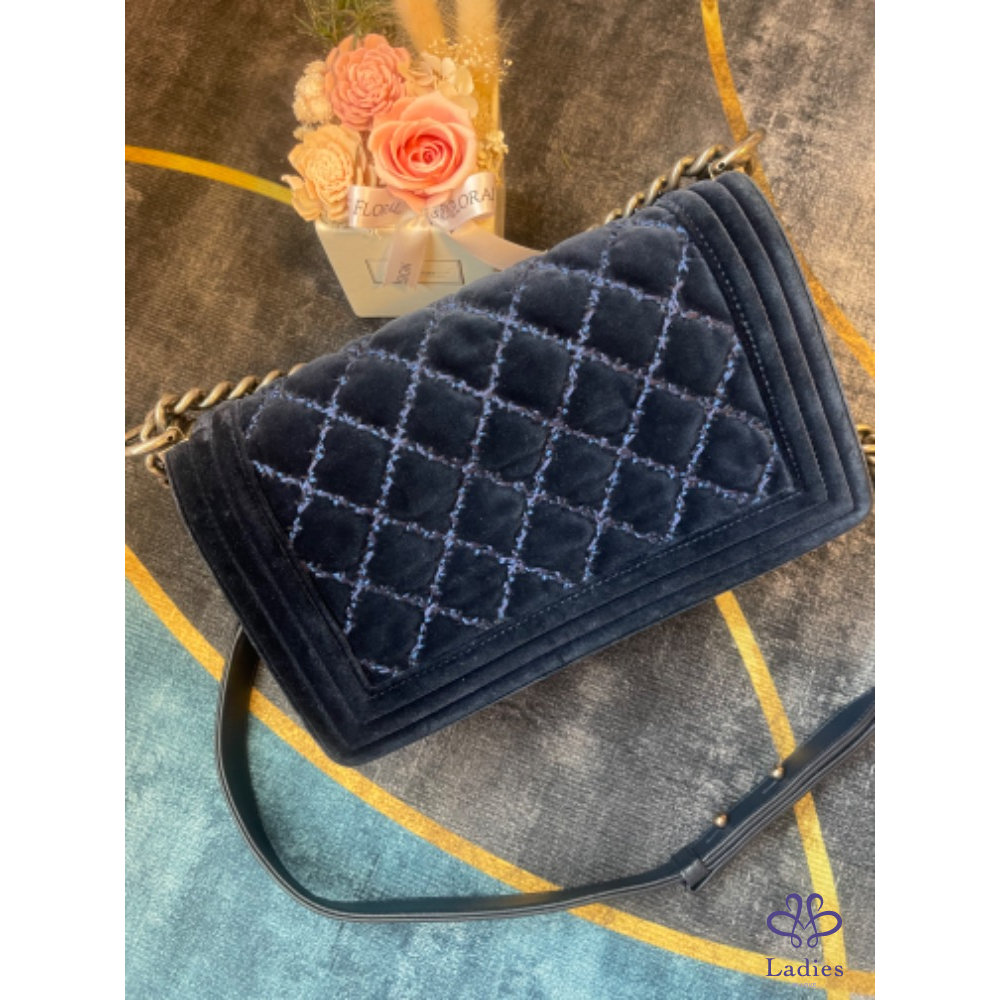 【商品名稱】香奈兒boy絨布 黑釦黑鏈