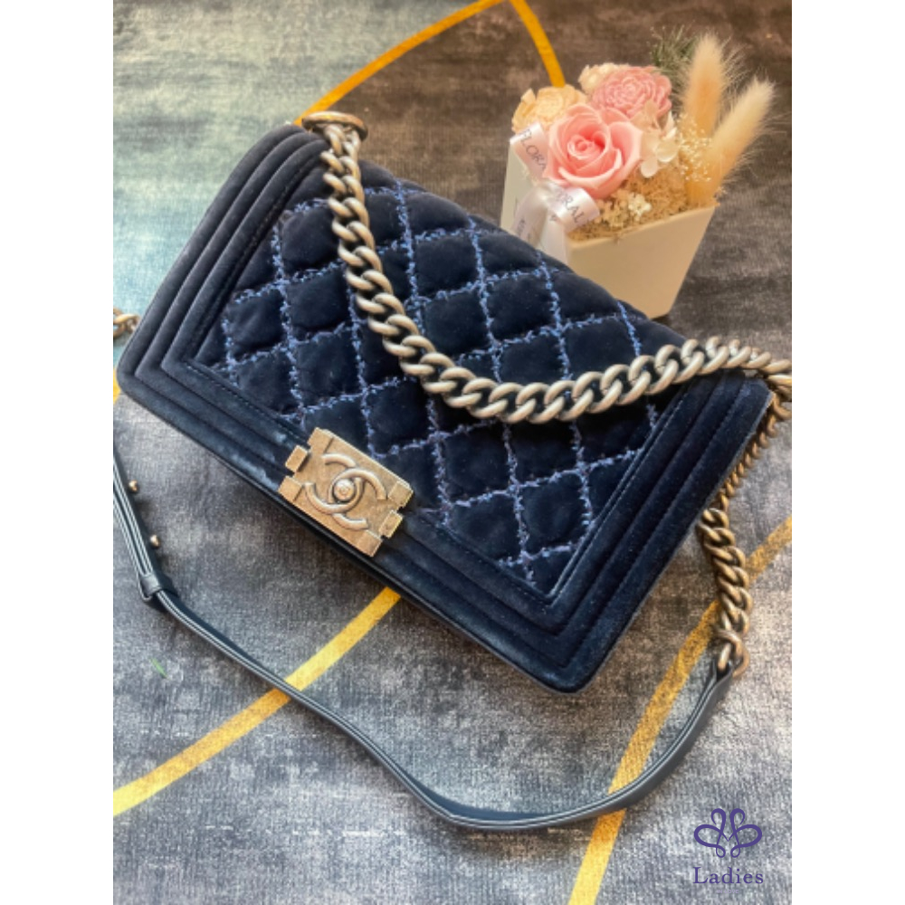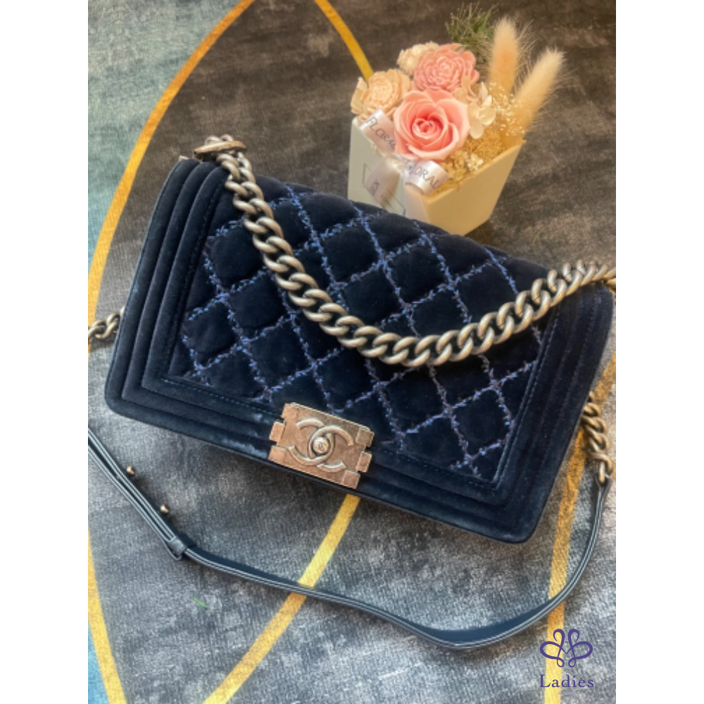 首頁 精品包包 香奈兒boy絨布 黑釦黑鏈