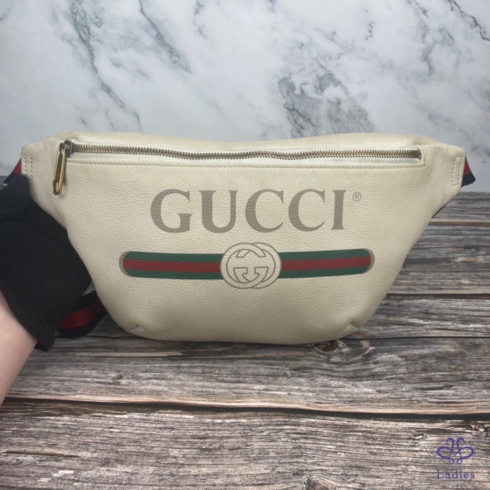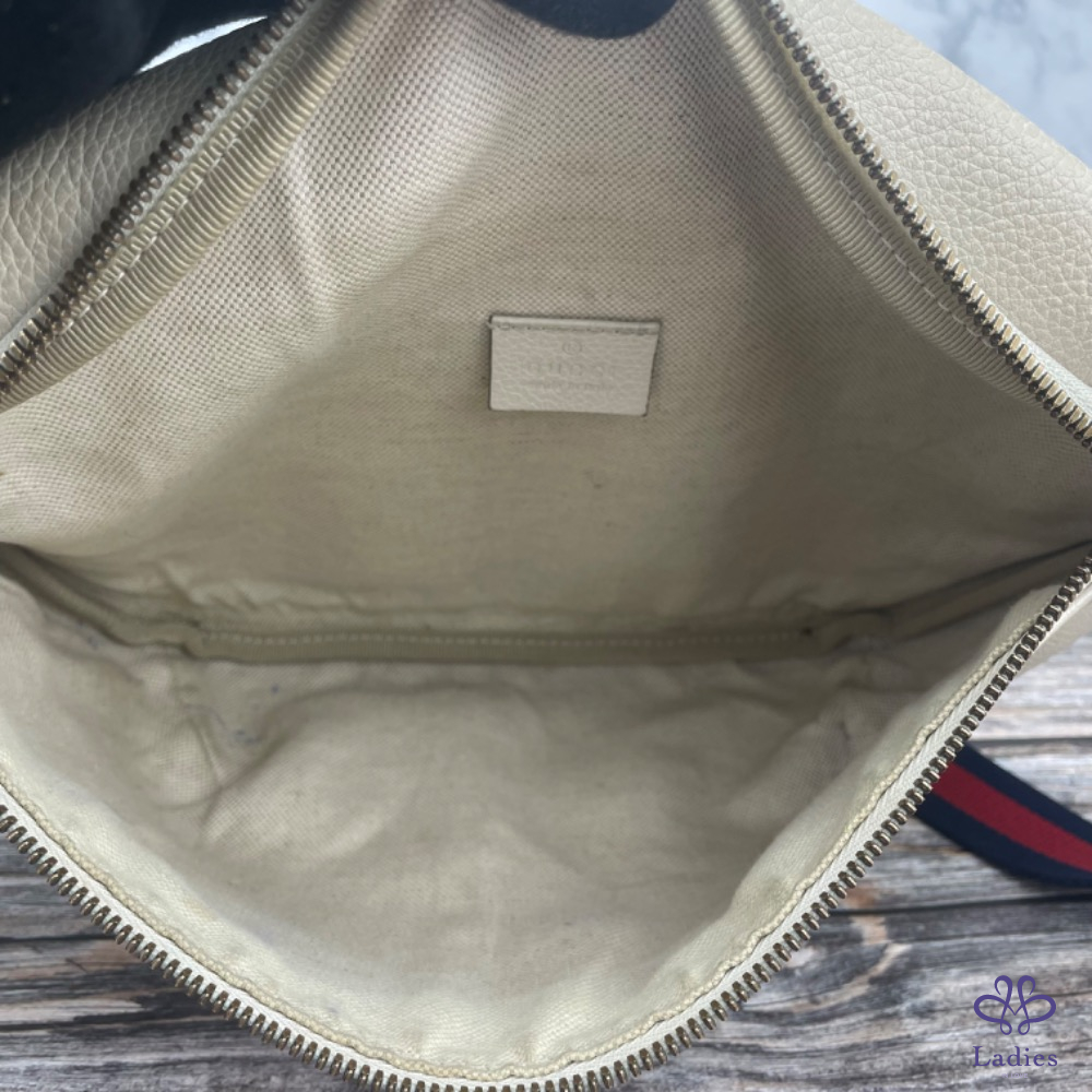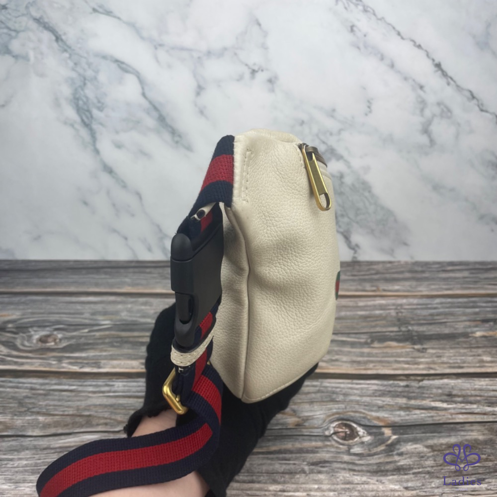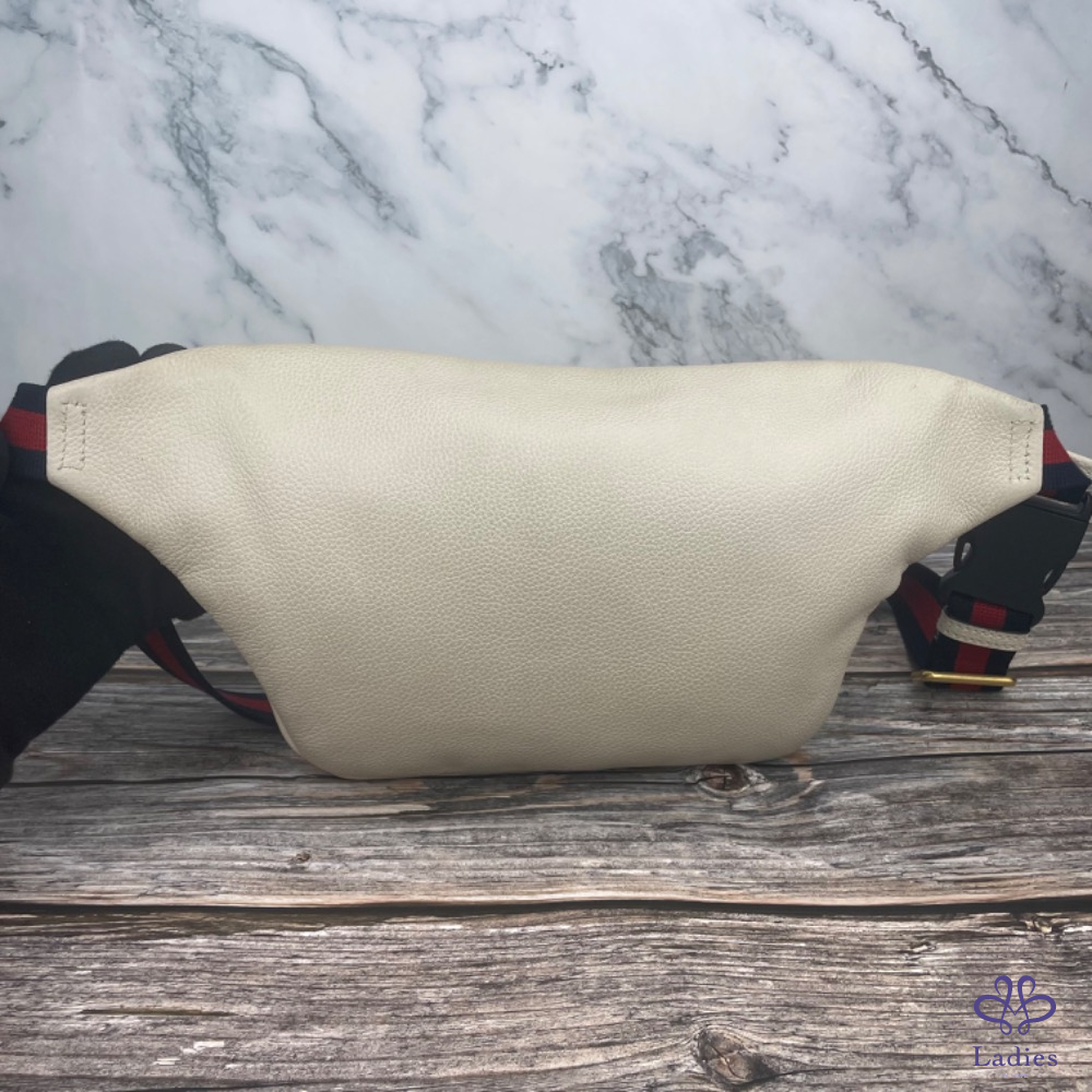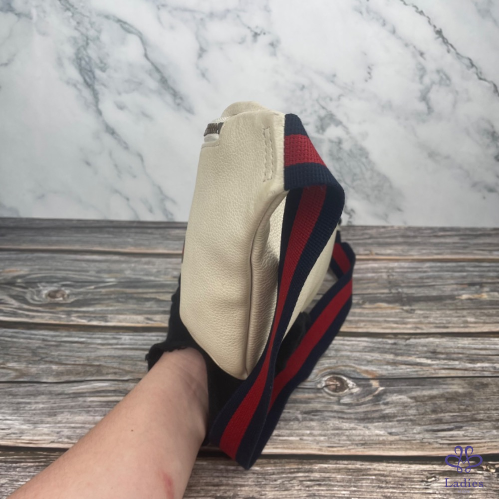 GUCCI 復古藍紅織帶Print #胸口包 /#腰包 大款 長背帶