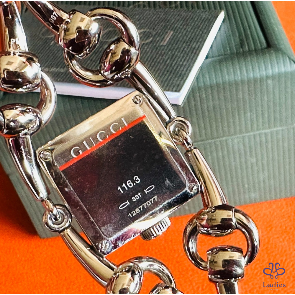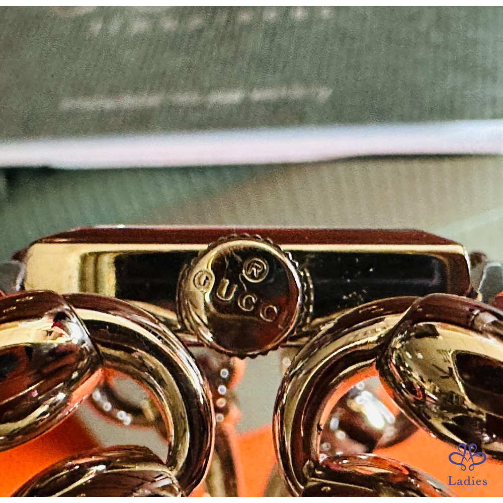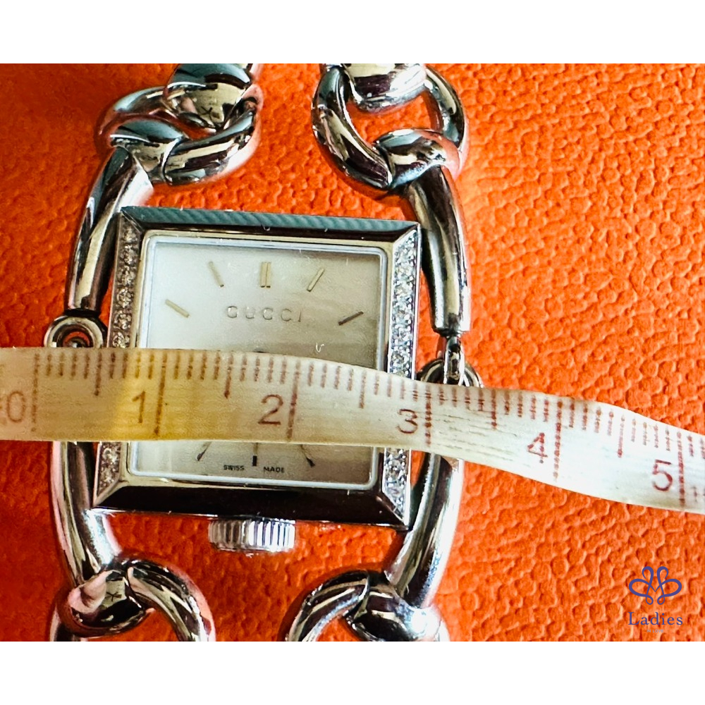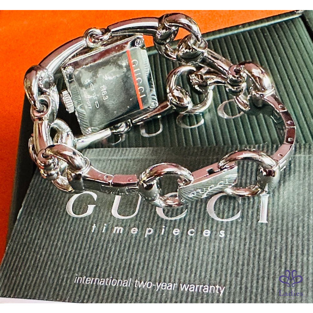~Gucci附原廠盒 原鑲雙邊鑽石 珍珠母貝面盤 馬銜鍊女錶