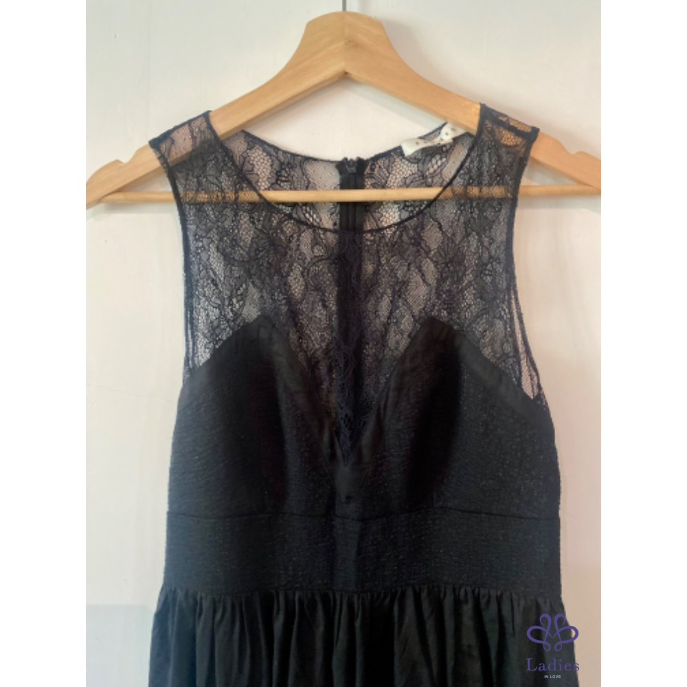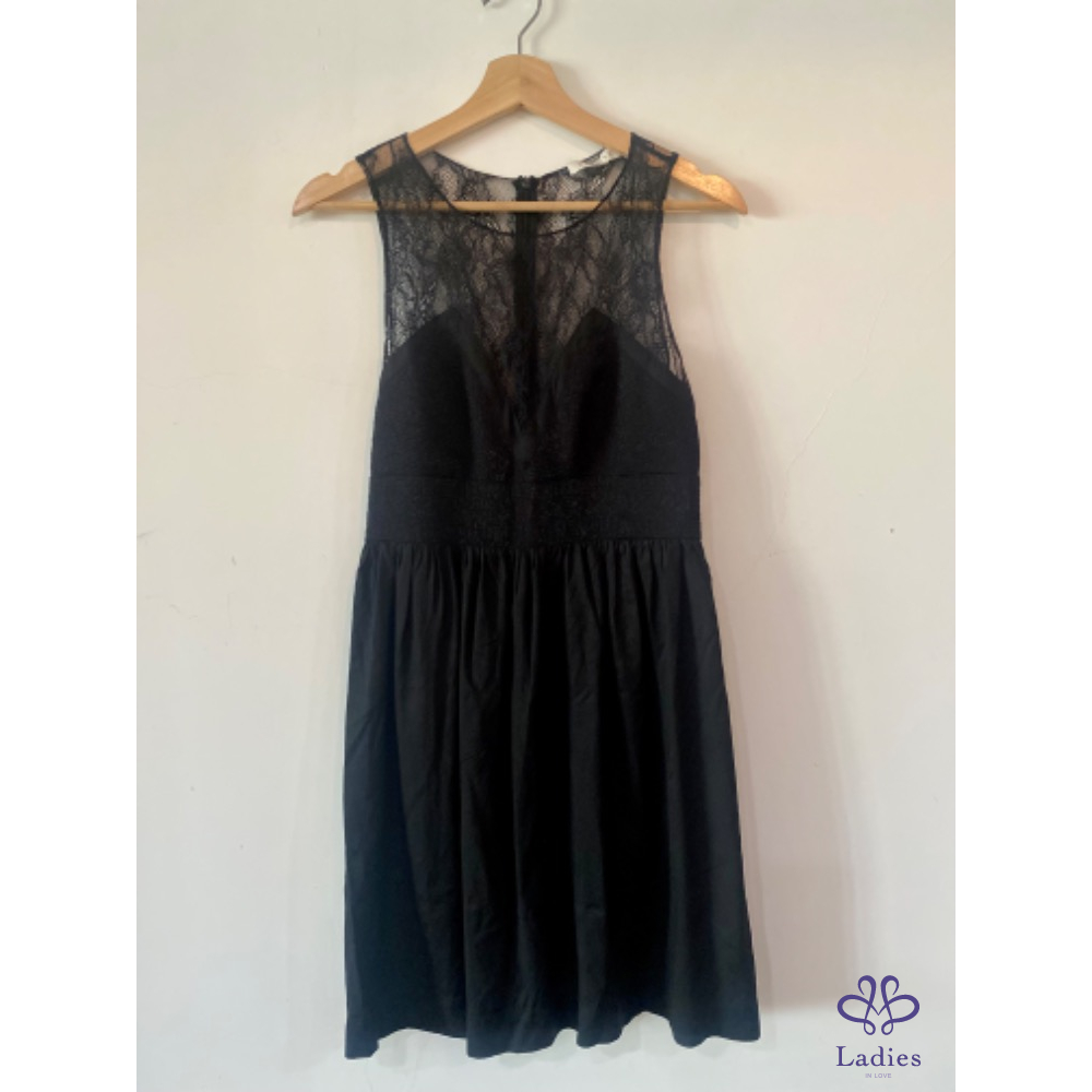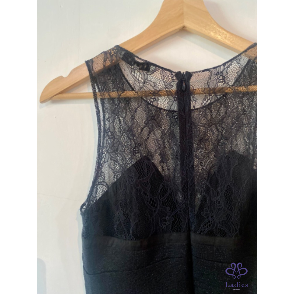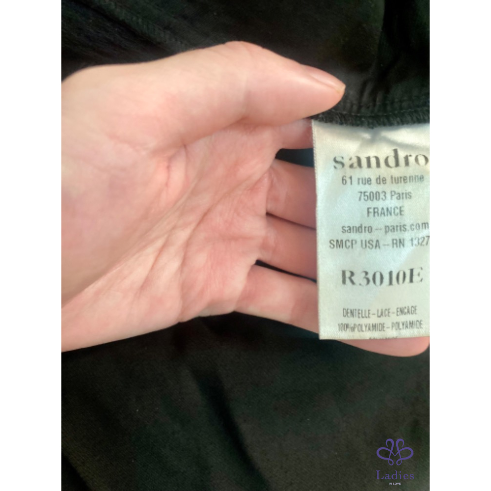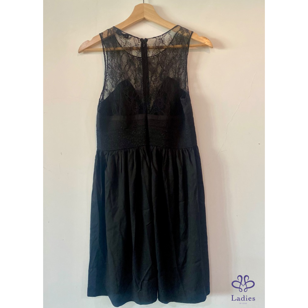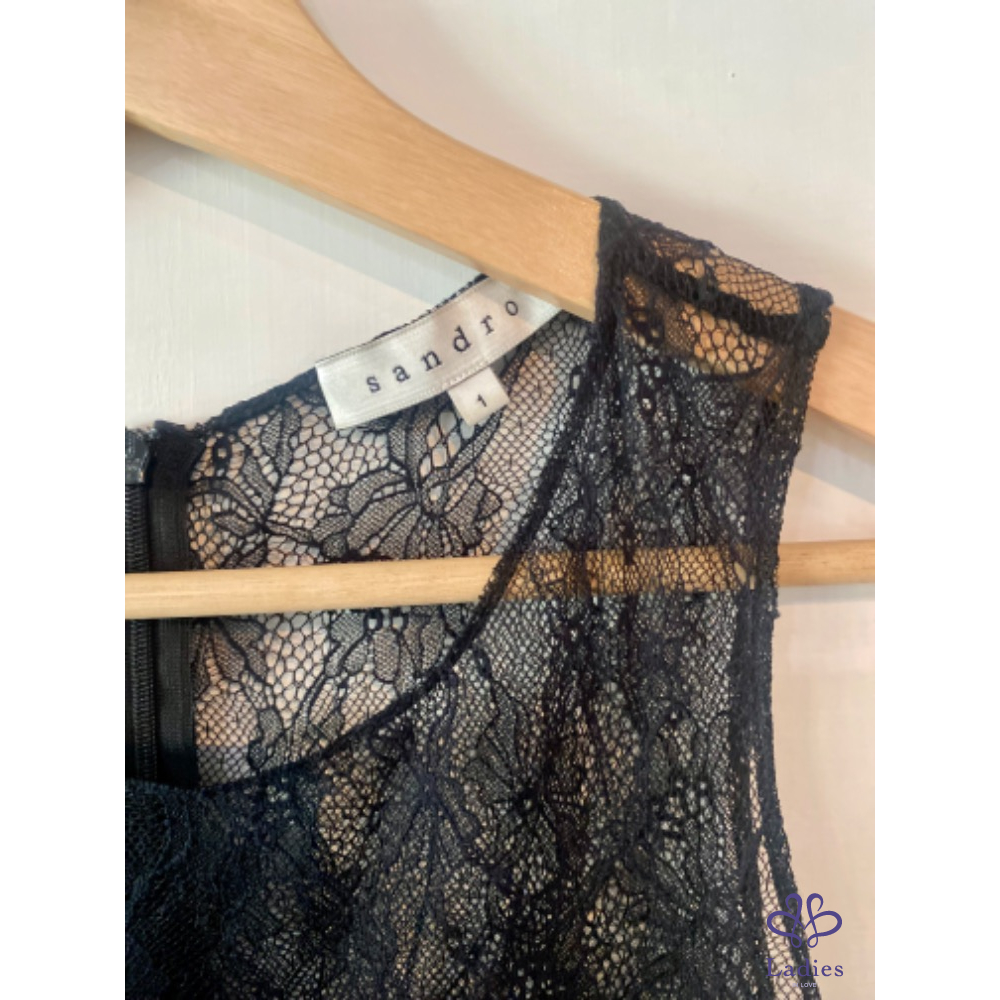 法國輕奢品牌 Sandro 透明燒花蕾絲高腰小黑裙