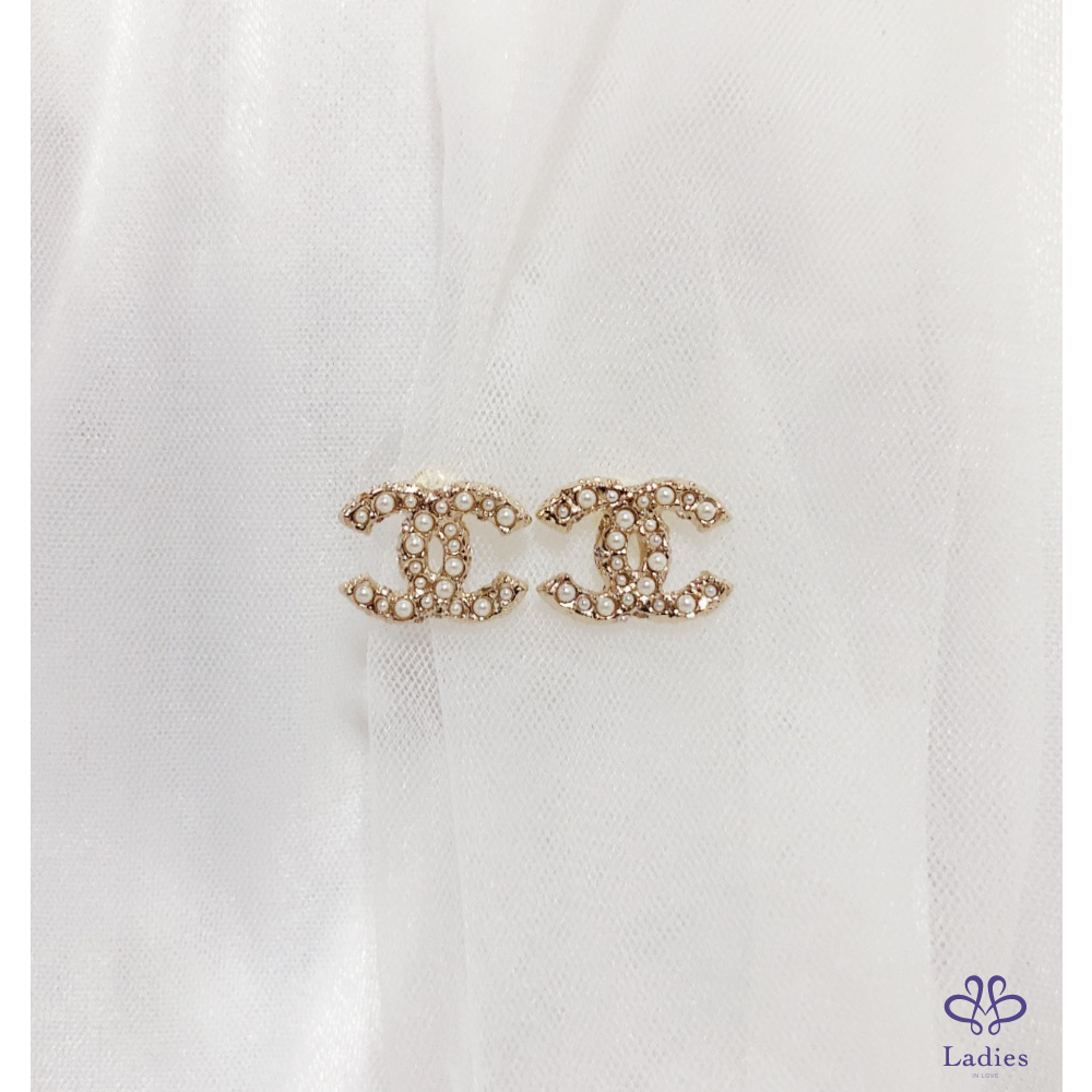首頁 精品手錶 CHANEL 香奈兒 小香 經典 淡金配珍珠雙C logo 針式 穿式 耳環 全新✨
