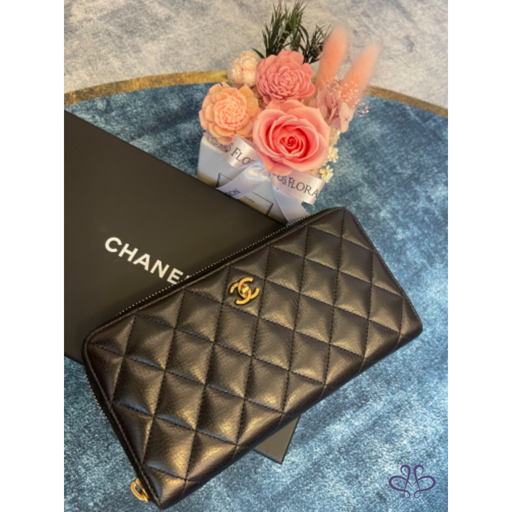 Chanel 經典黑色荔枝皮革吐司錢包