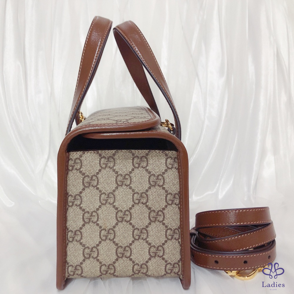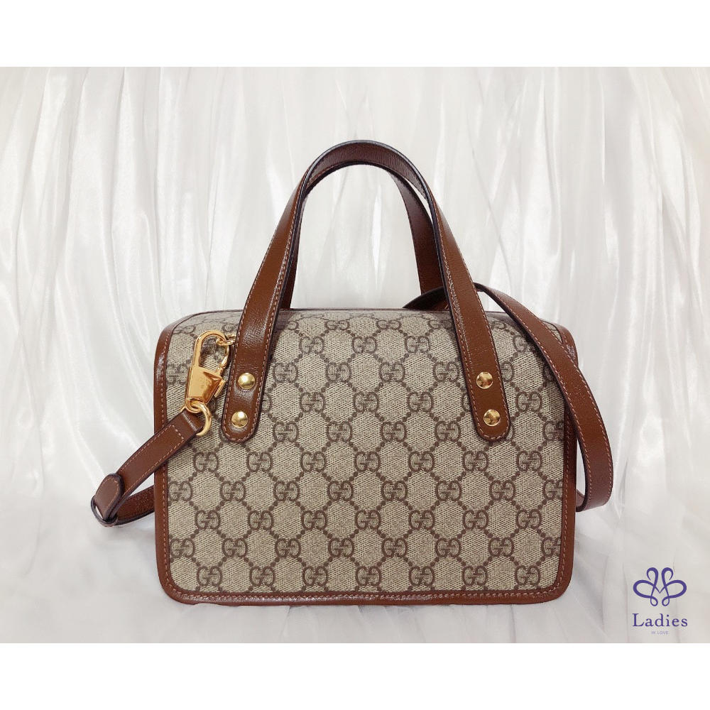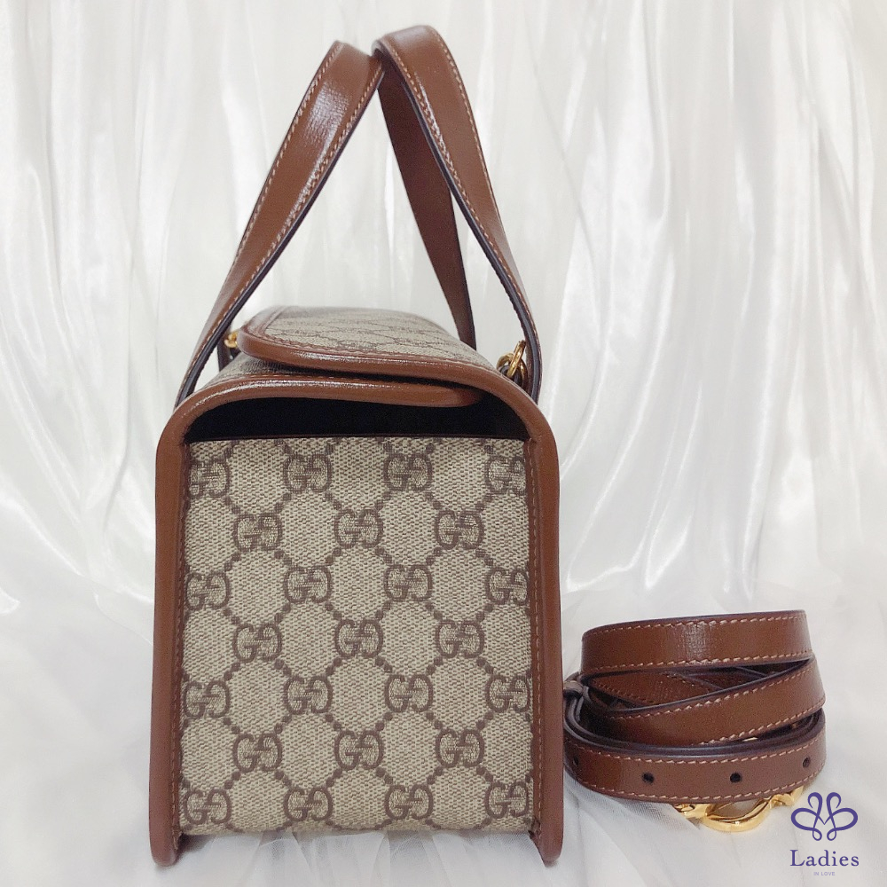 首頁 精品包包 Gucci 古馳 咖啡色 老花 1955 馬銜扣 復古 手提 肩背 盒子包✨