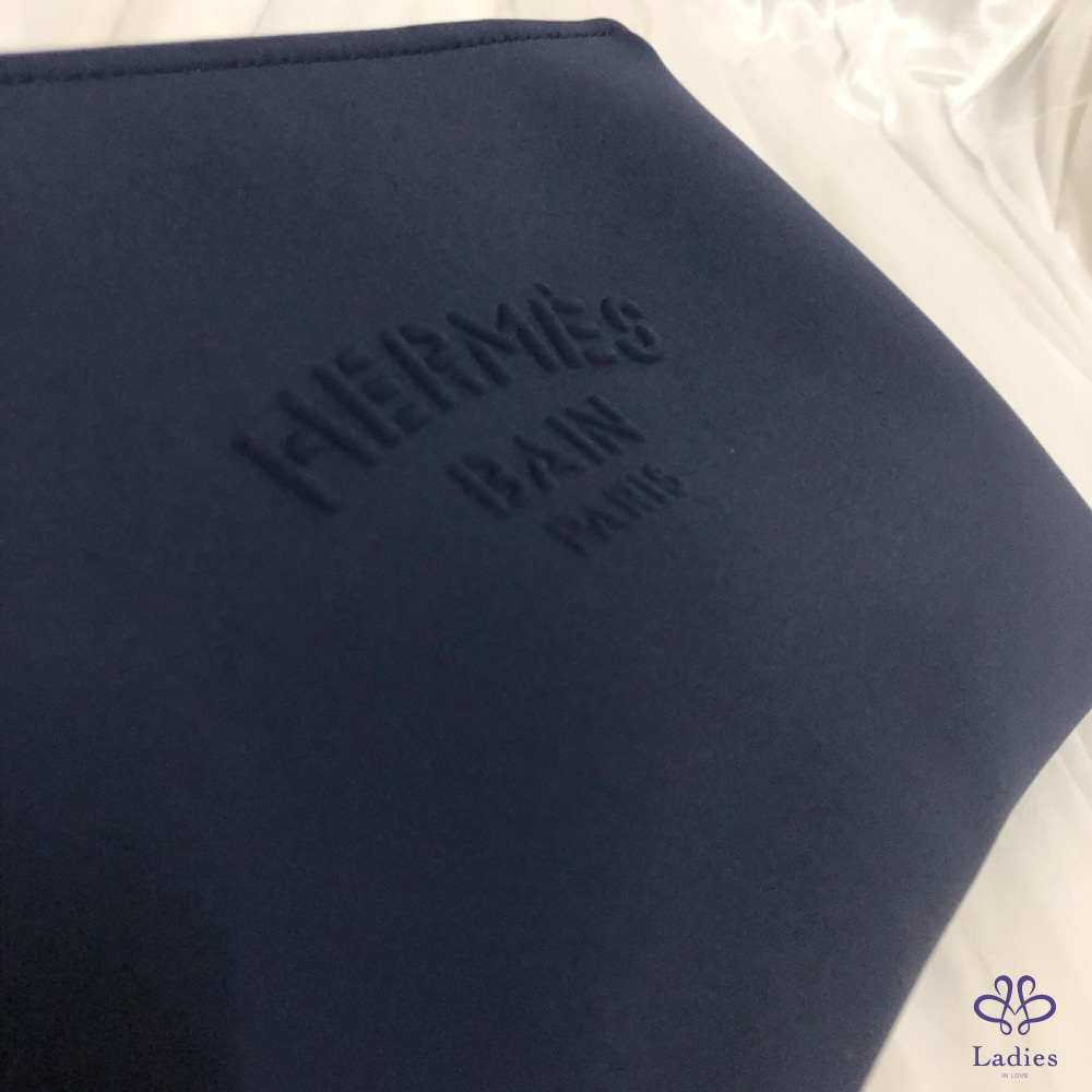 扁平收納包,飾有防水「Hermès Bain」壓紋細節(80%錦綸和20%氨綸)。