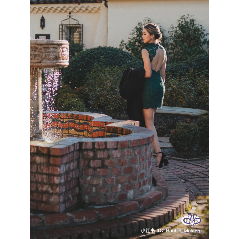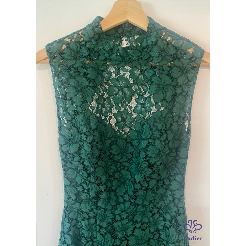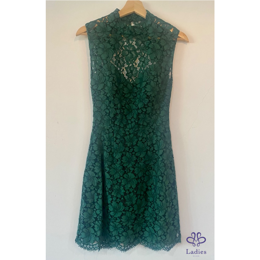 Sandro 祖母綠睫毛蕾絲露背洋裝