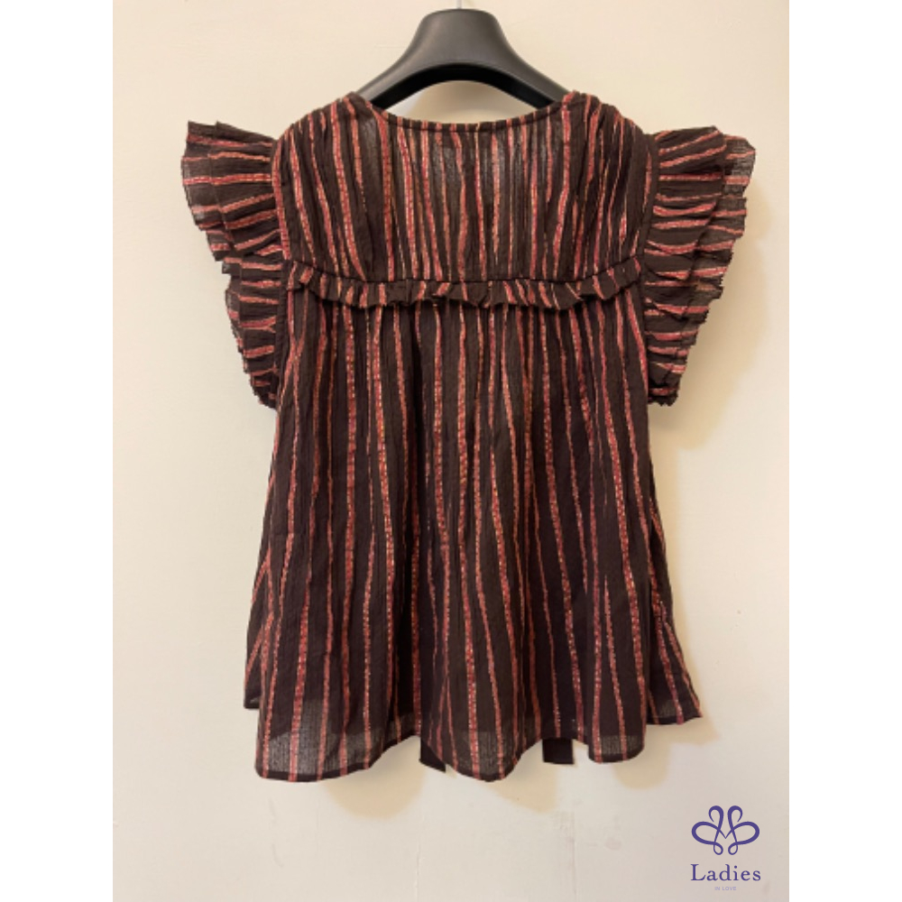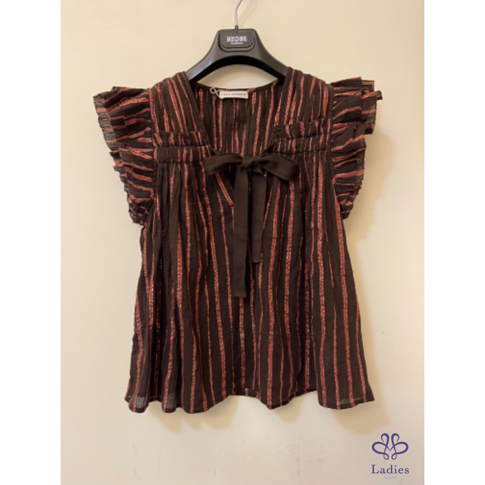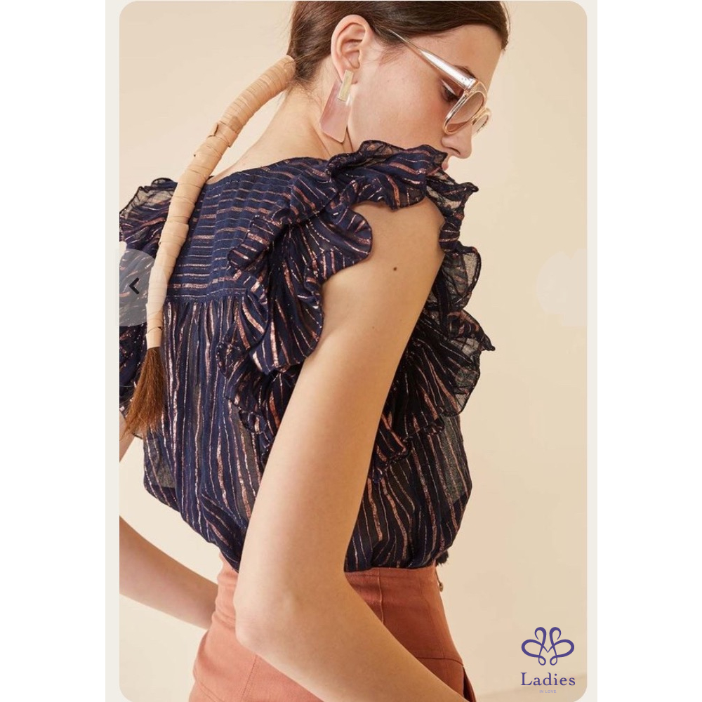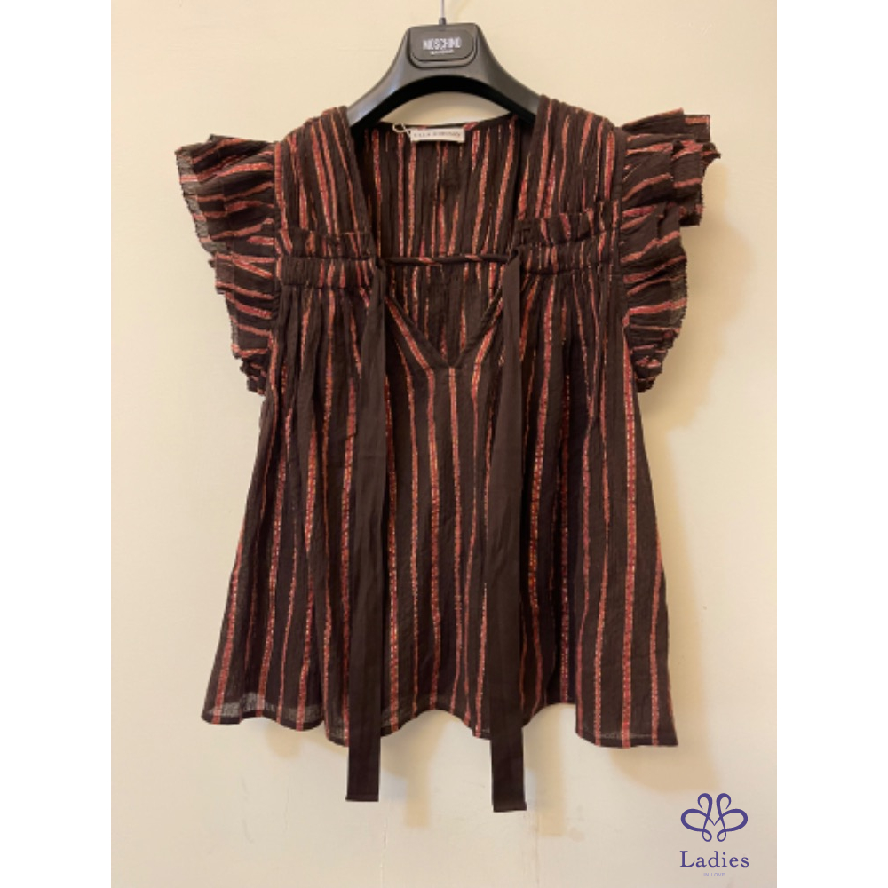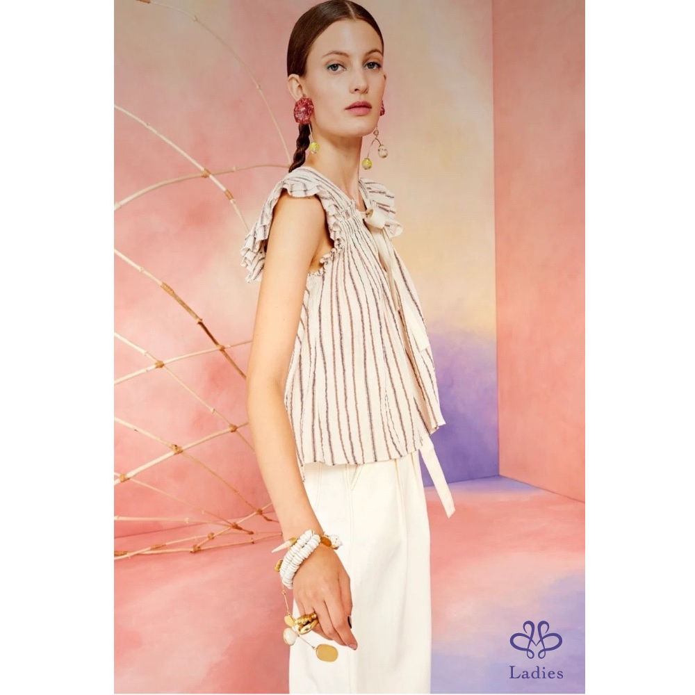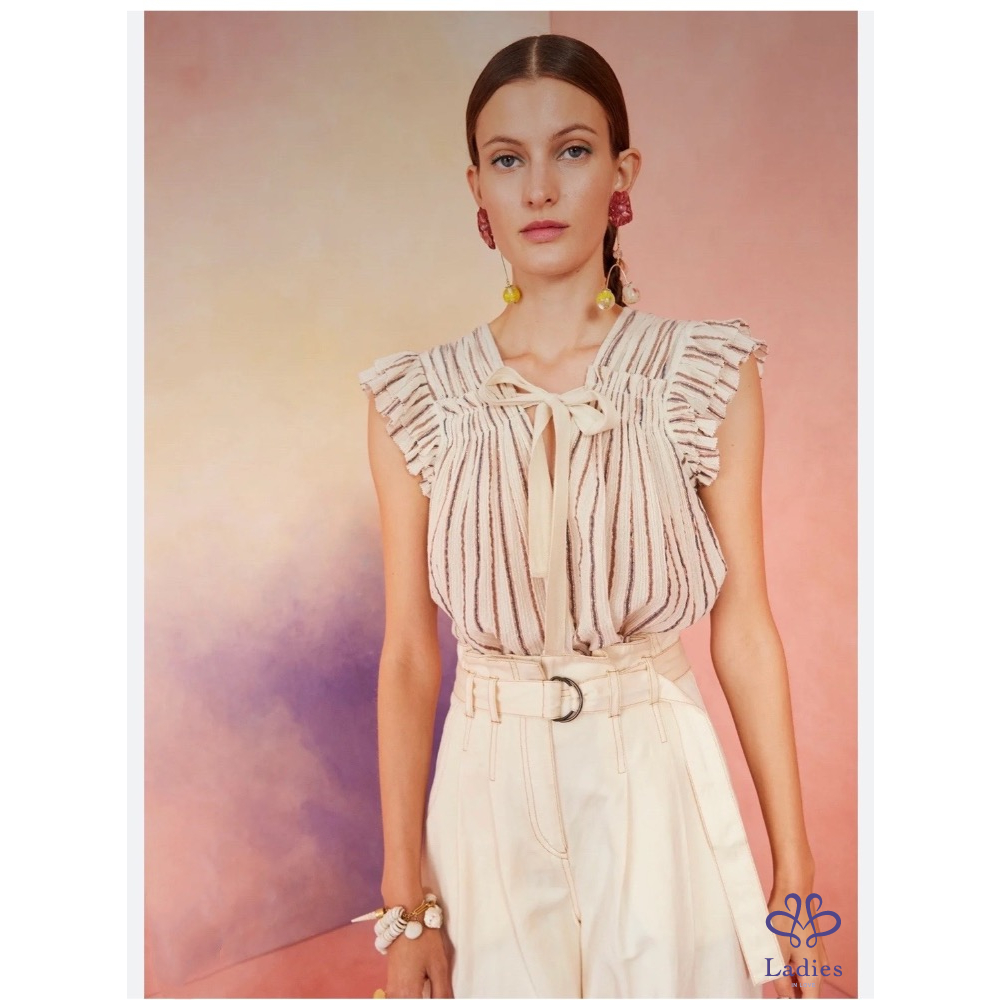 全新ULLA JOHNSON荷葉袖系帶V領襯衫