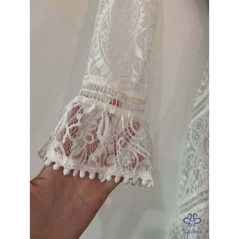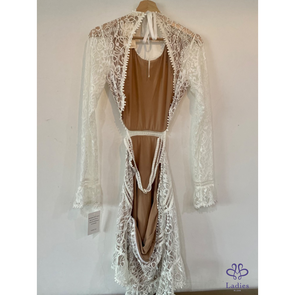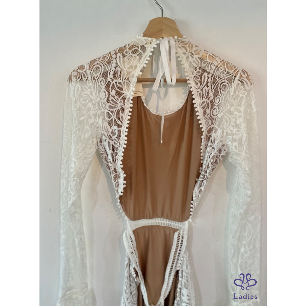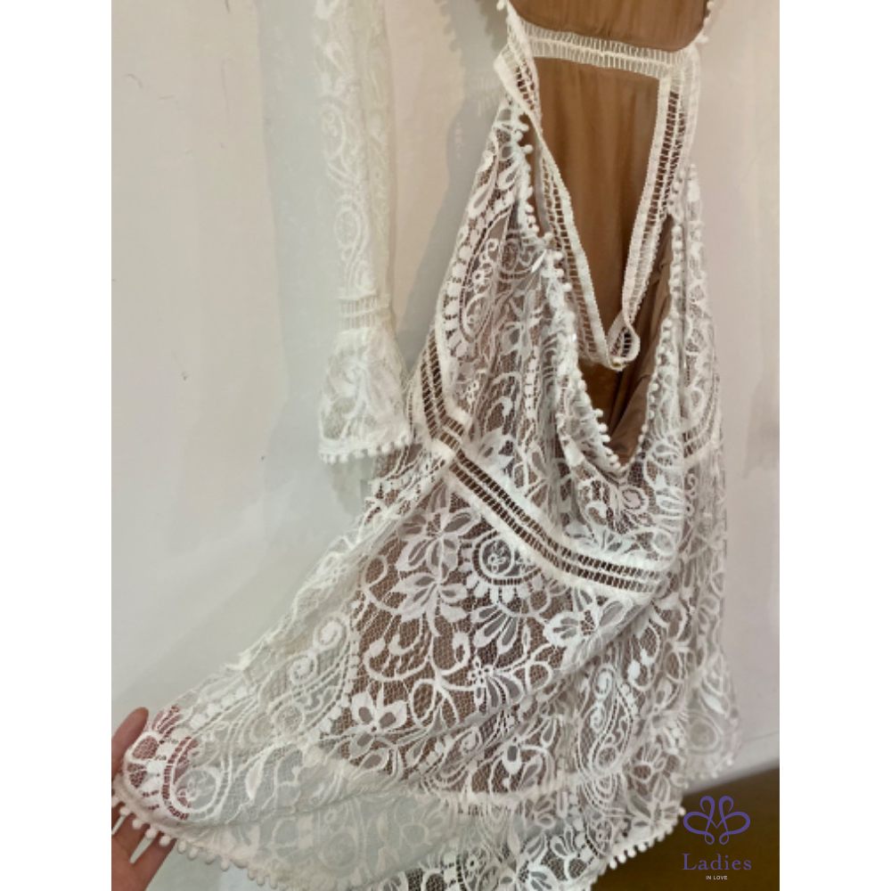 首頁 精品服飾 For Love & Lemons 重工美背白色簍空蕾絲洋裝