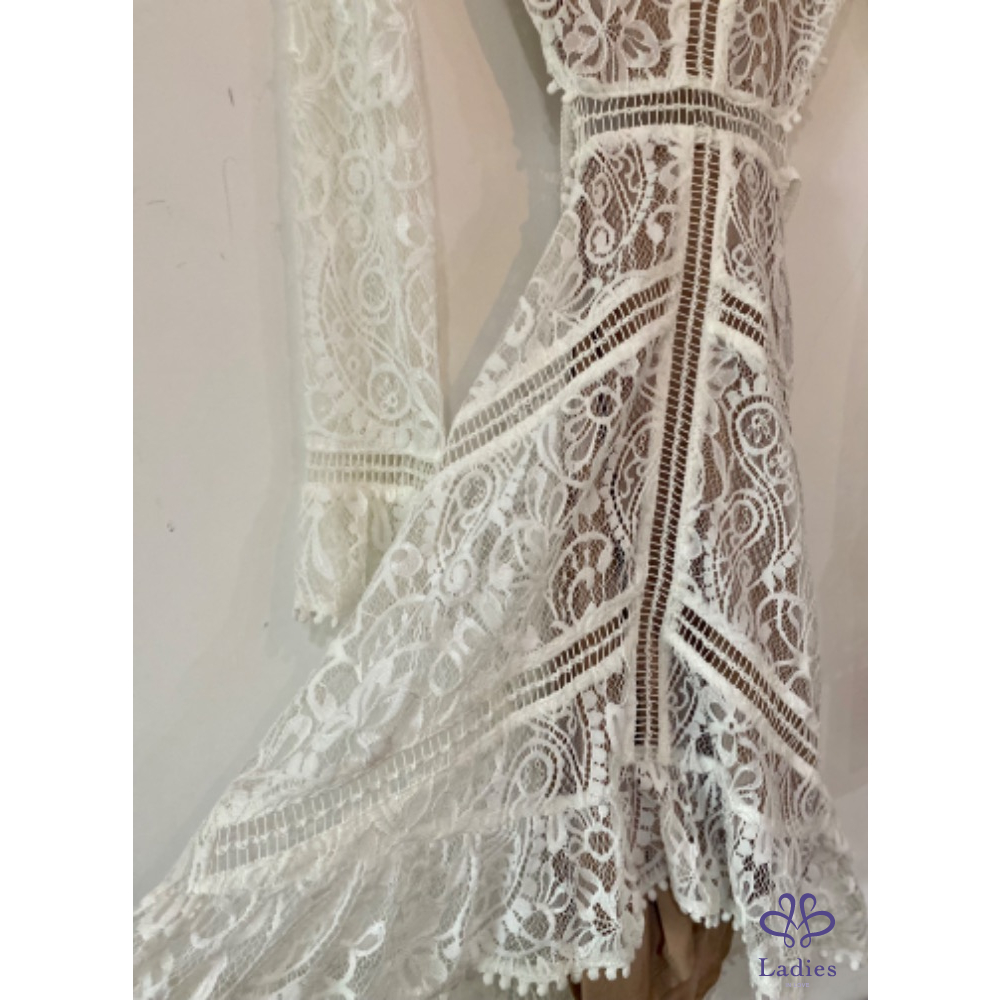 For Love & Lemons 重工美背白色簍空蕾絲洋裝