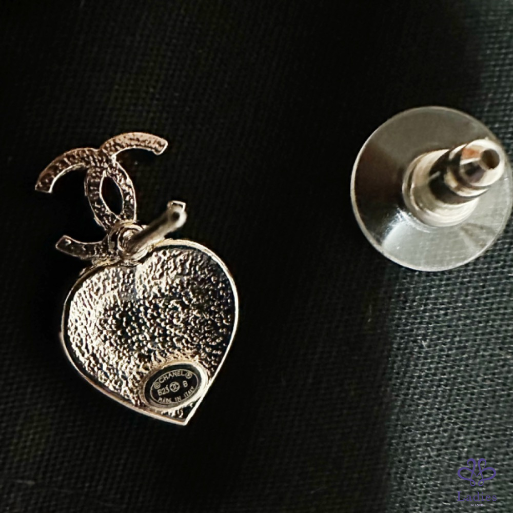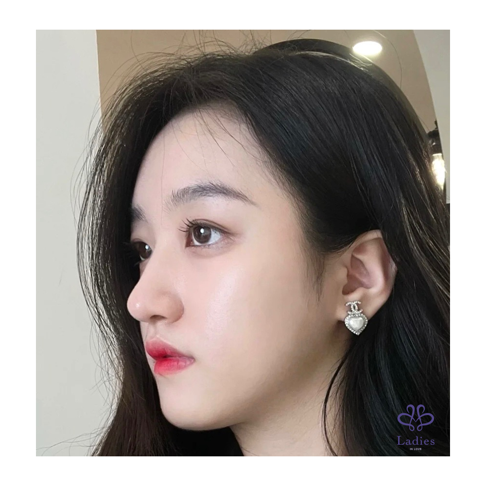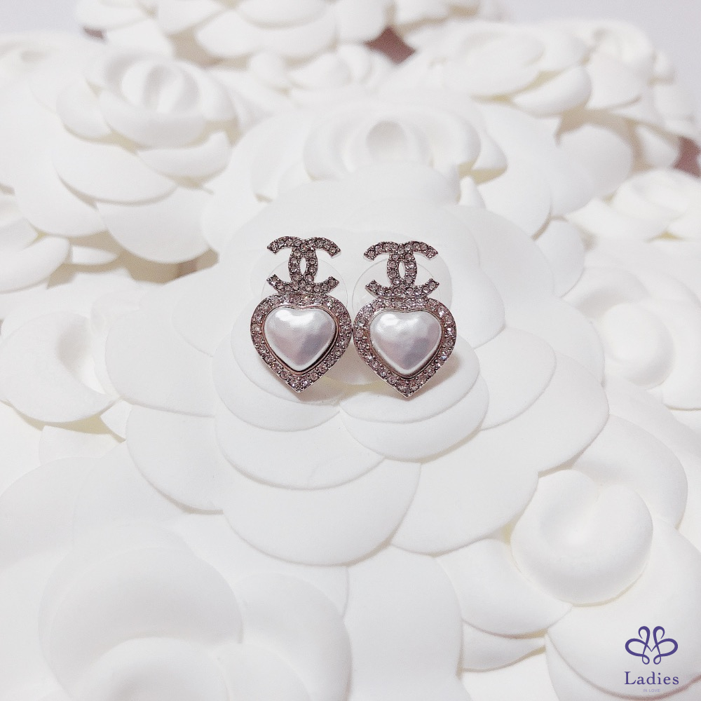 CHANEL 香奈兒 小香 23B 新款 雙C 銀色 水鑽 珍珠 愛心 針式 穿式 耳環 全新✨