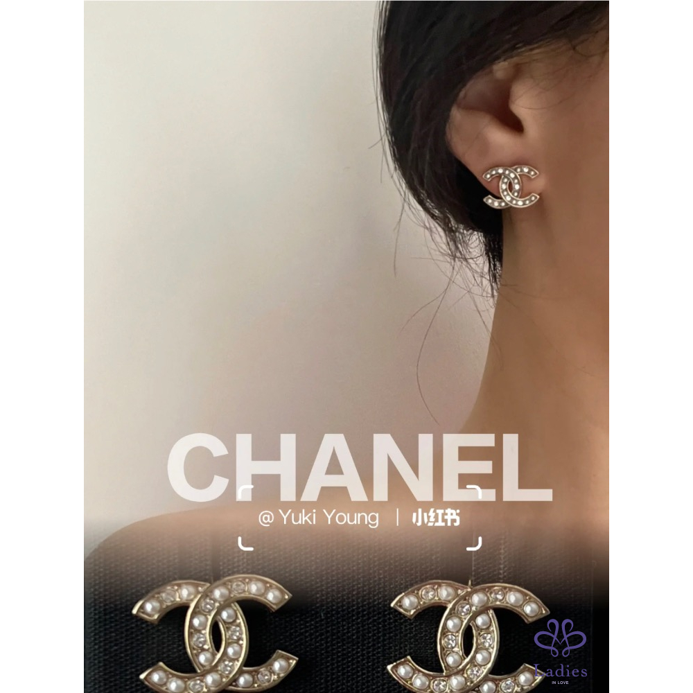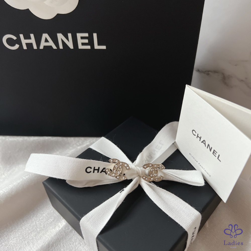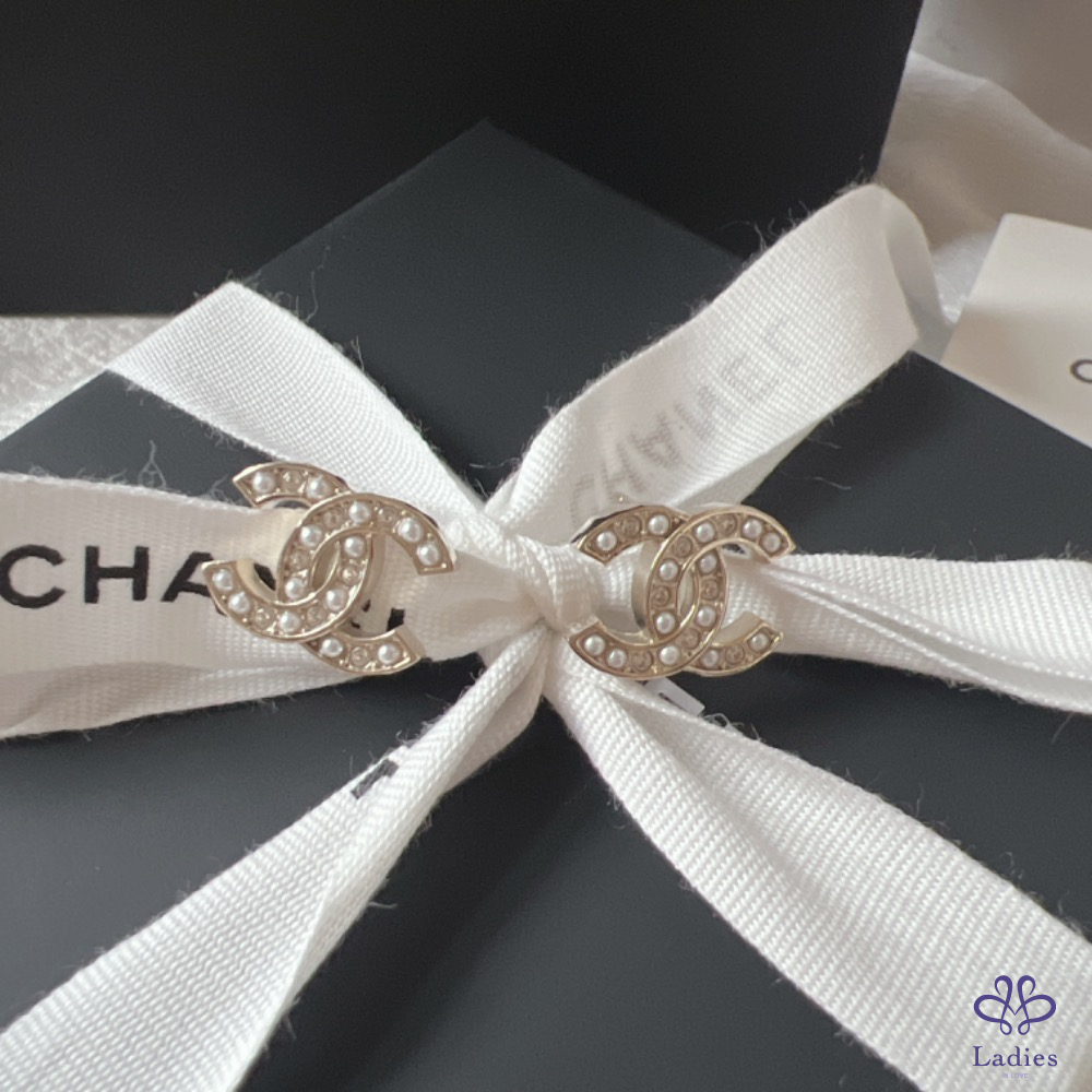 CHANEL香奈兒 23B 手工鏤空珍珠鑲鑽耳環