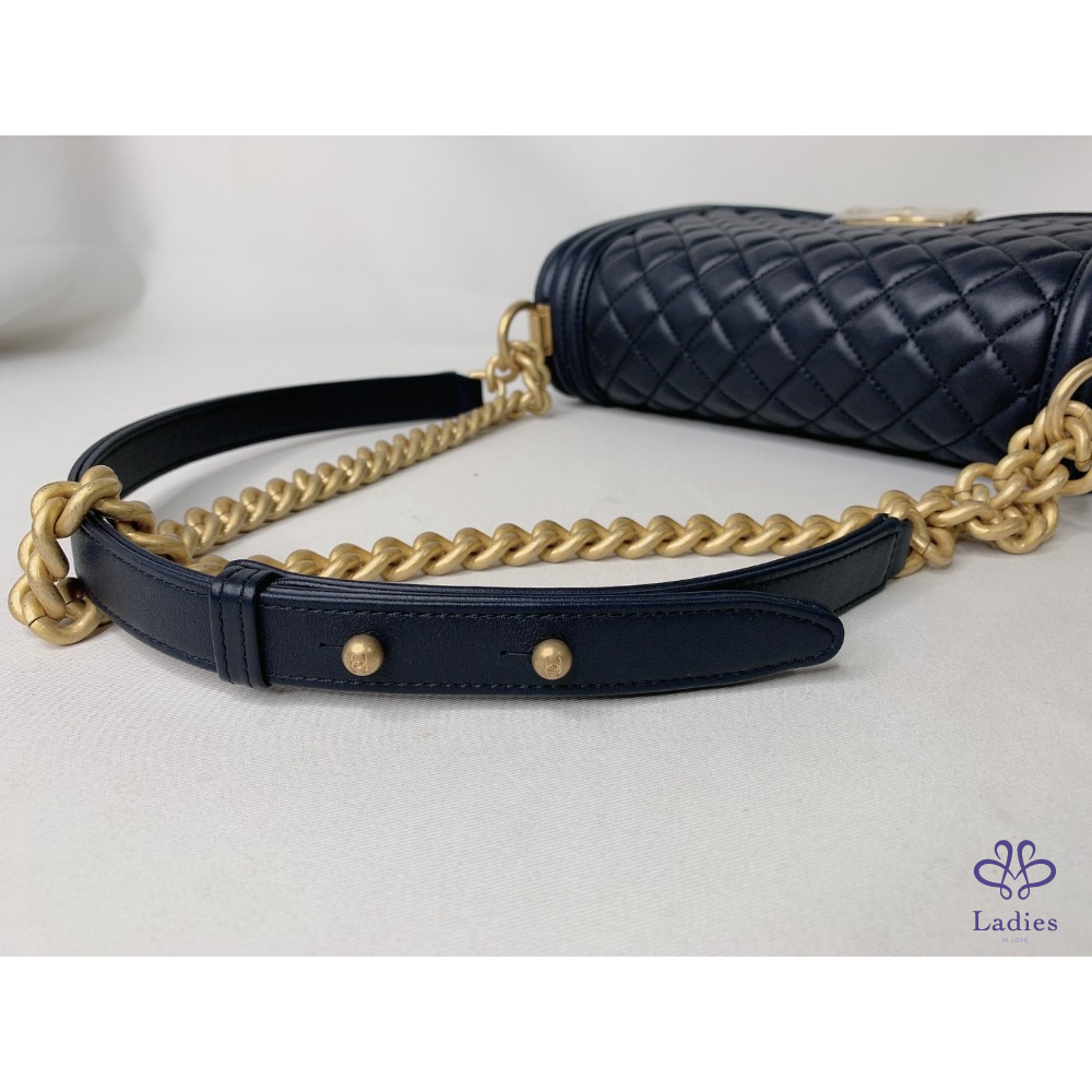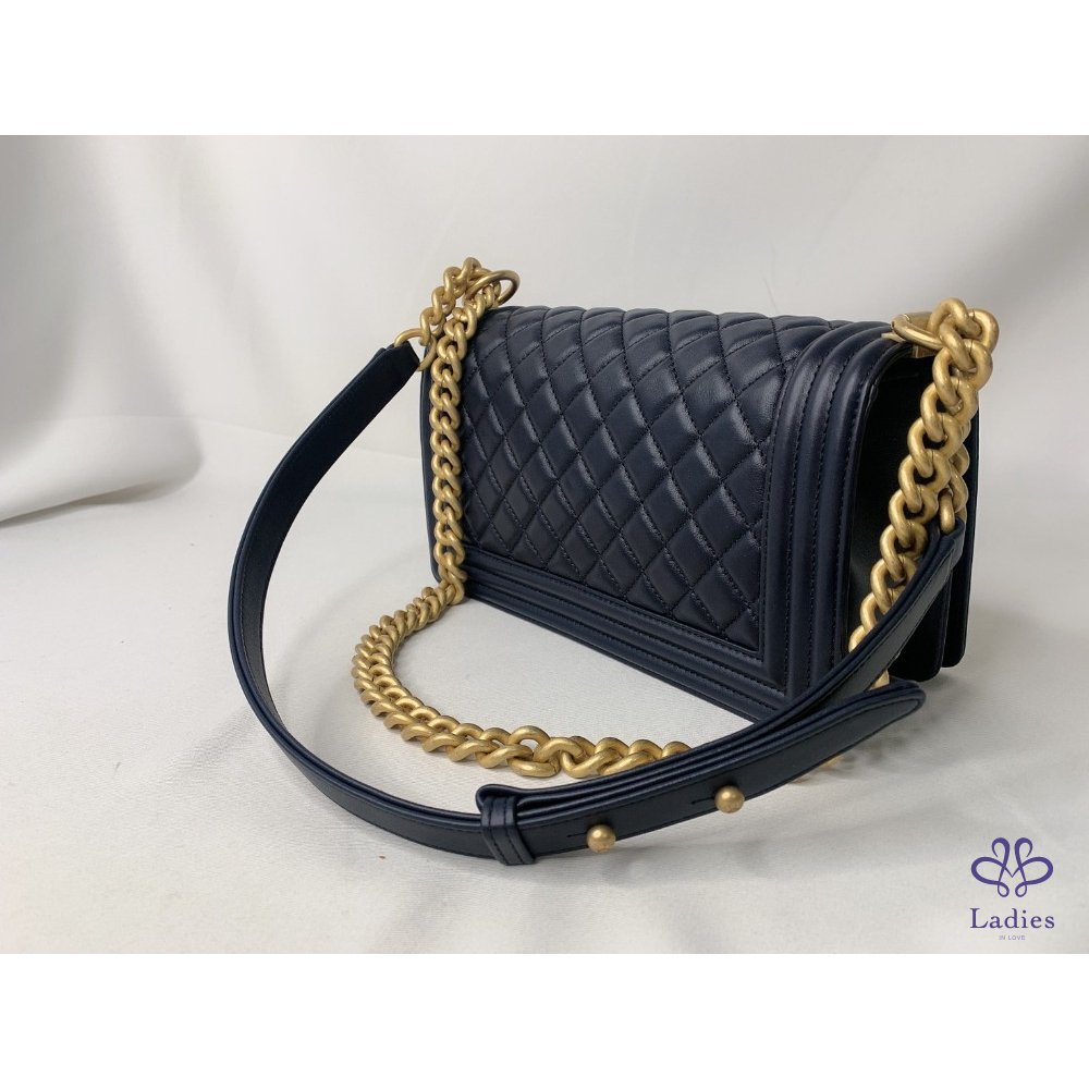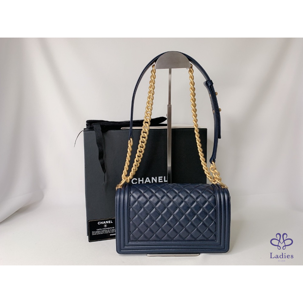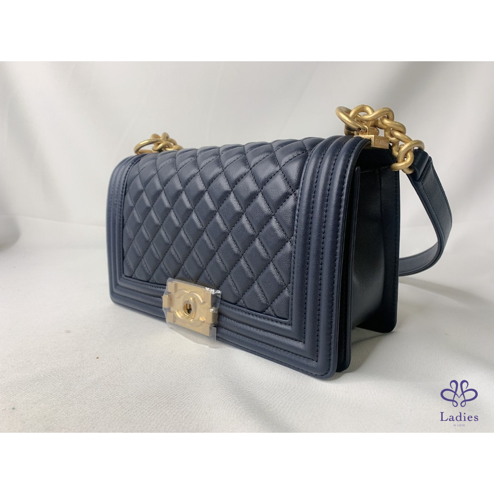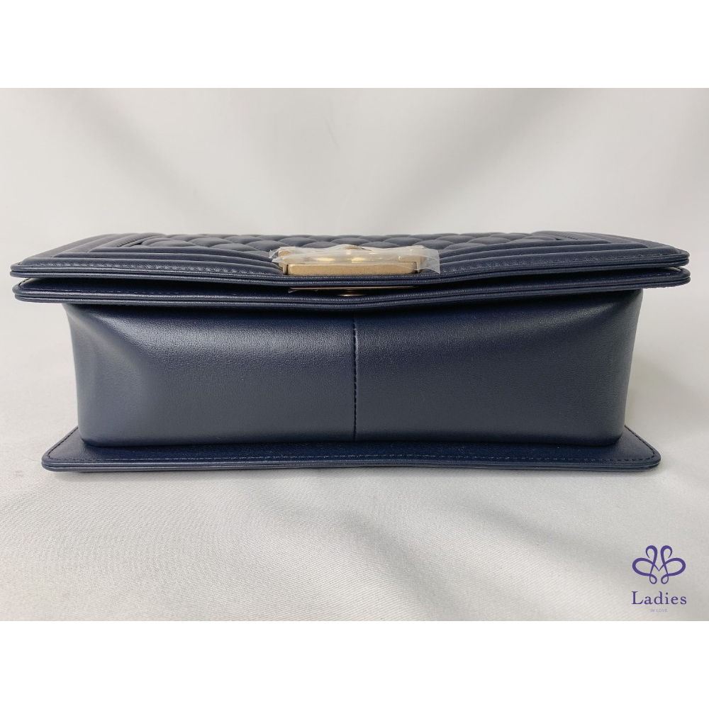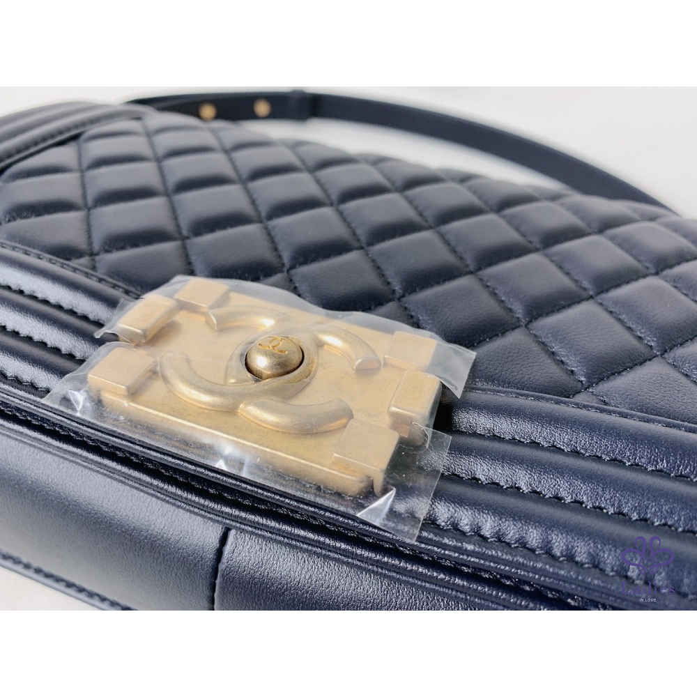 首頁 精品包包 CHANEL 全新羊皮藍金BOY 25