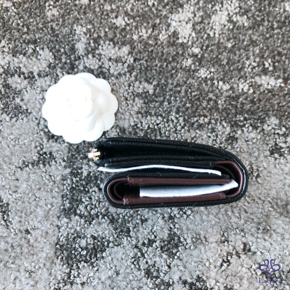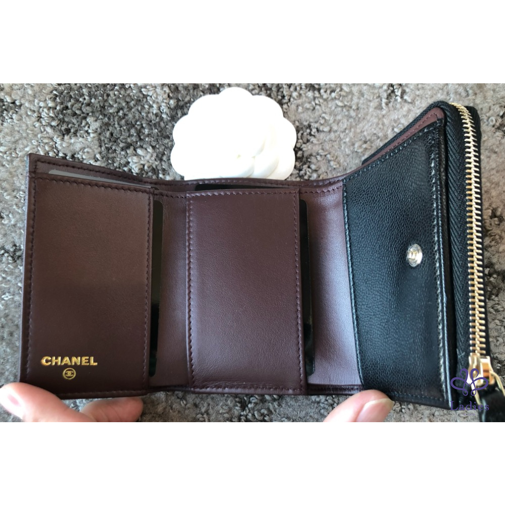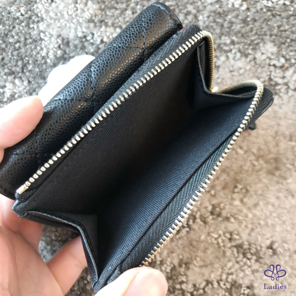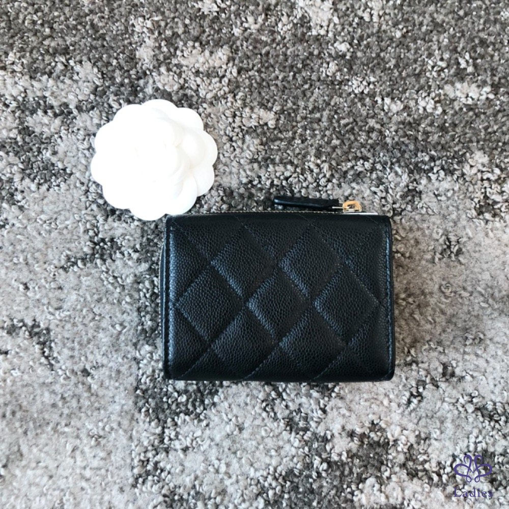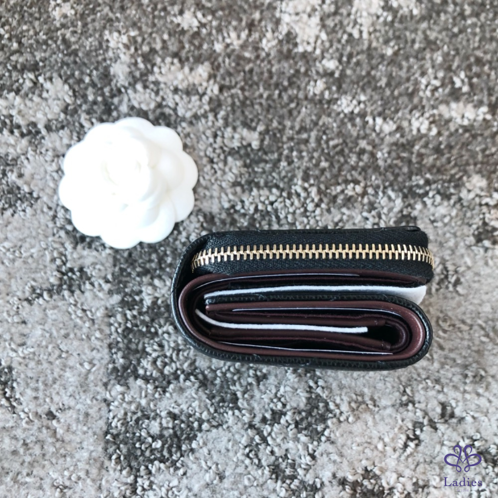 產品信息 如果不想跟別人用一樣經典三折短夾,這顆決定是首選,因為L型拉鍊層做在外面還可以全開、適合零錢很多的人,至少可以放下5張卡片,如果一個放兩張就可以放10張,麻雀雖小五臟俱全也‼️雷標芯片款‼️ 尺寸:11x8.5x3cm 附:盒子.防塵袋.說明書.緞帶.山茶花.紙袋.購證印本