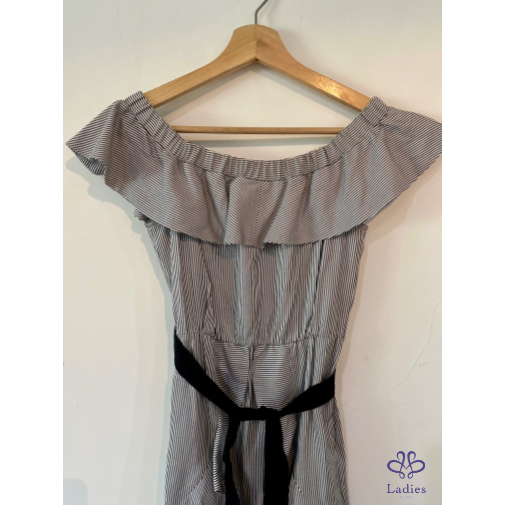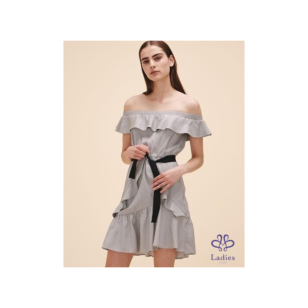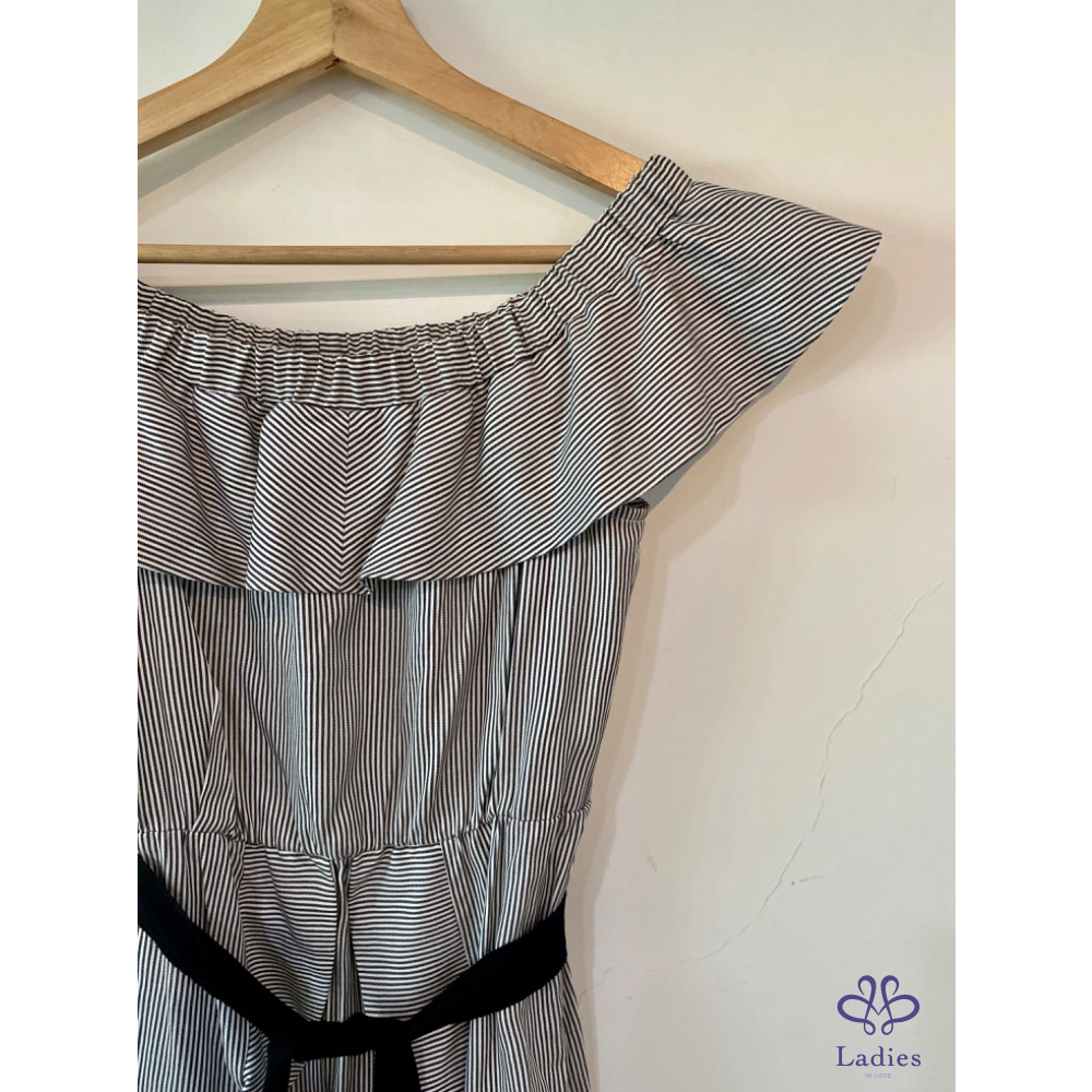 首頁 精品服飾 Maje 露肩波浪邊小仙女條紋洋裝