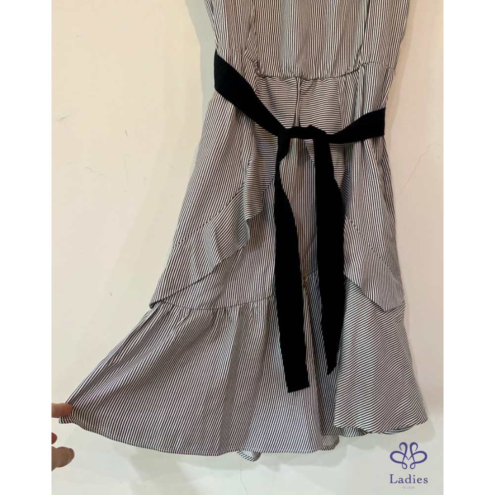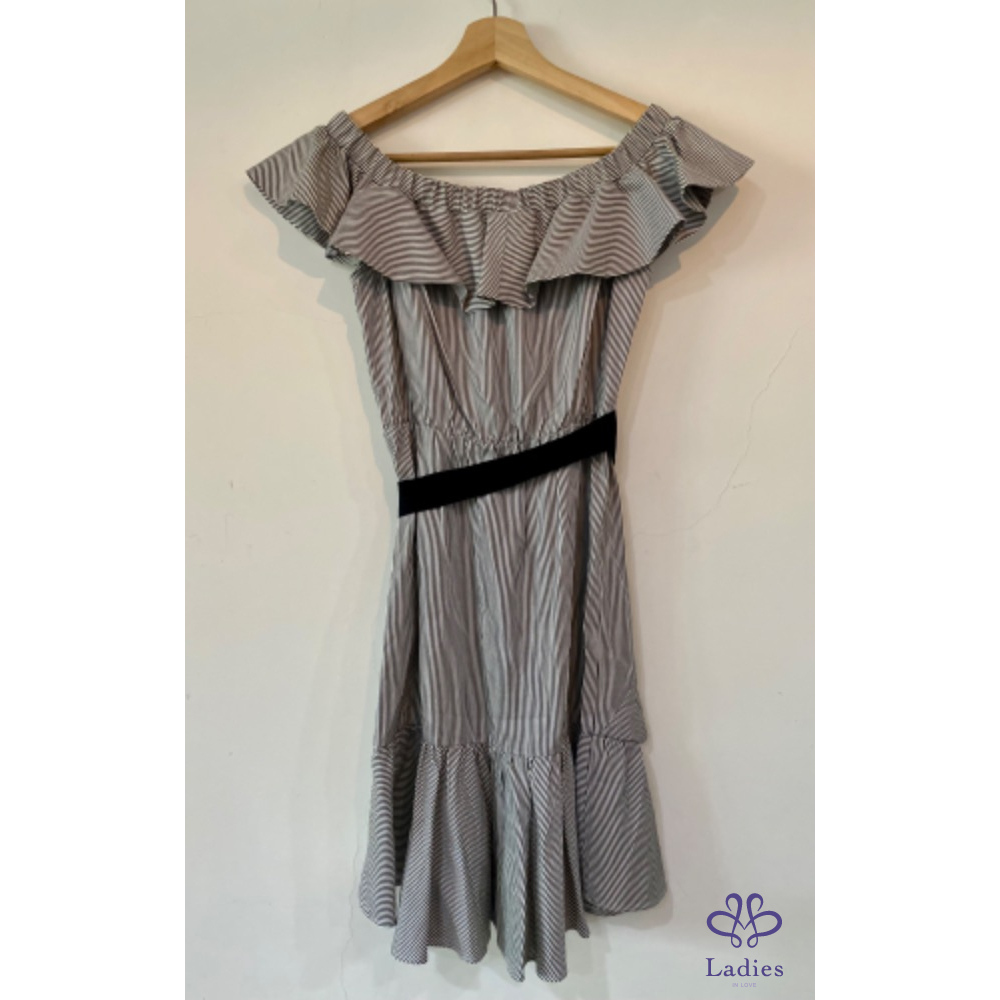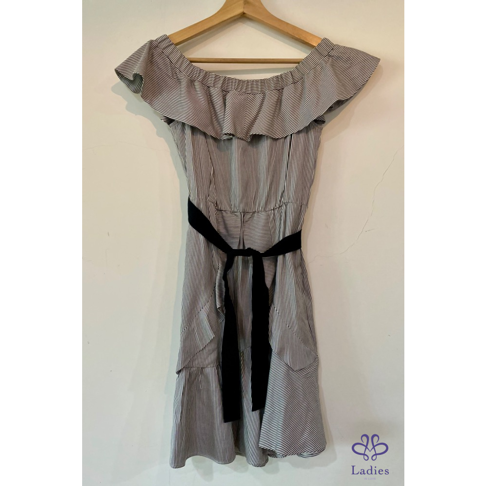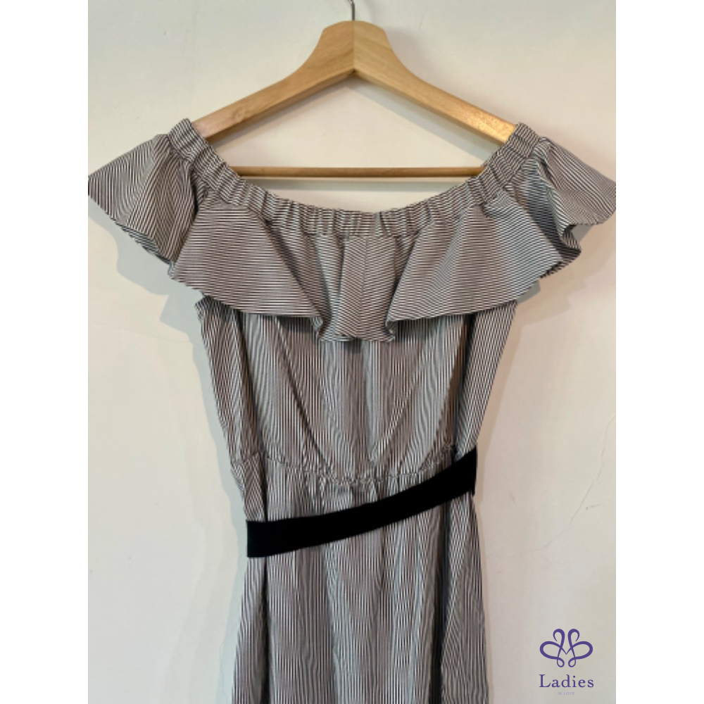 首頁 精品服飾 Maje 露肩波浪邊小仙女條紋洋裝
