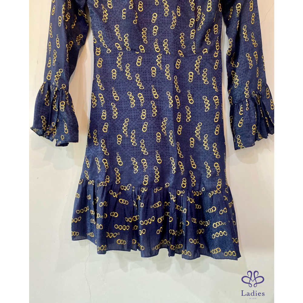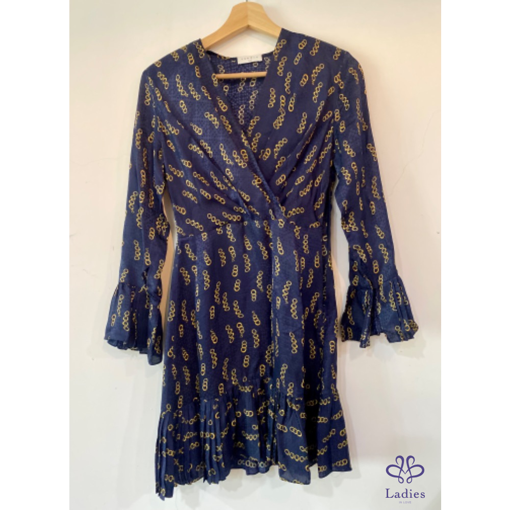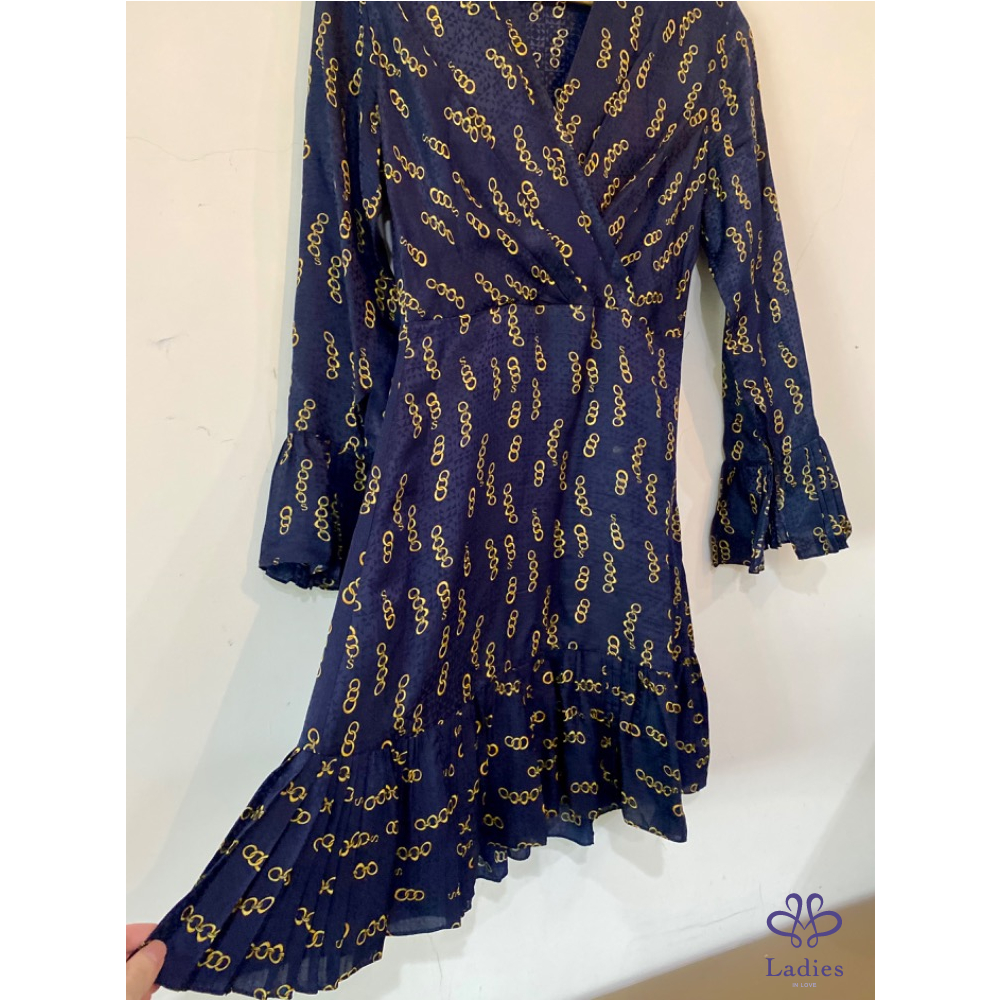 首頁 精品服飾 Sandro 深藍真絲光澤垂墜洋裝