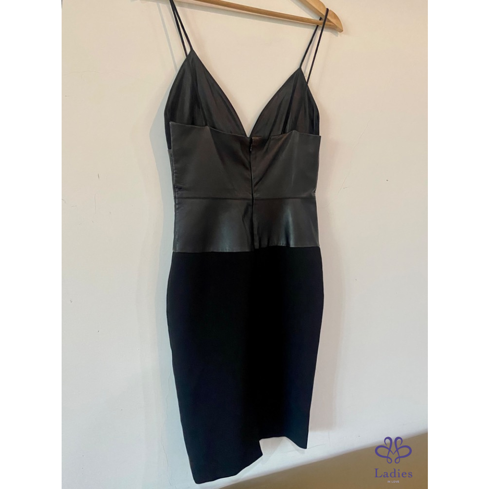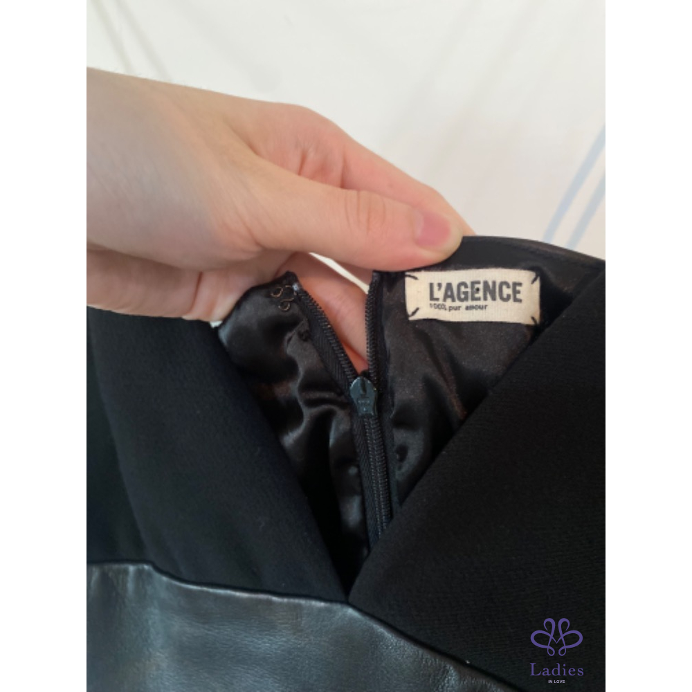 L’Agence 黑色小羔羊皮拼接細肩帶及膝洋裝
