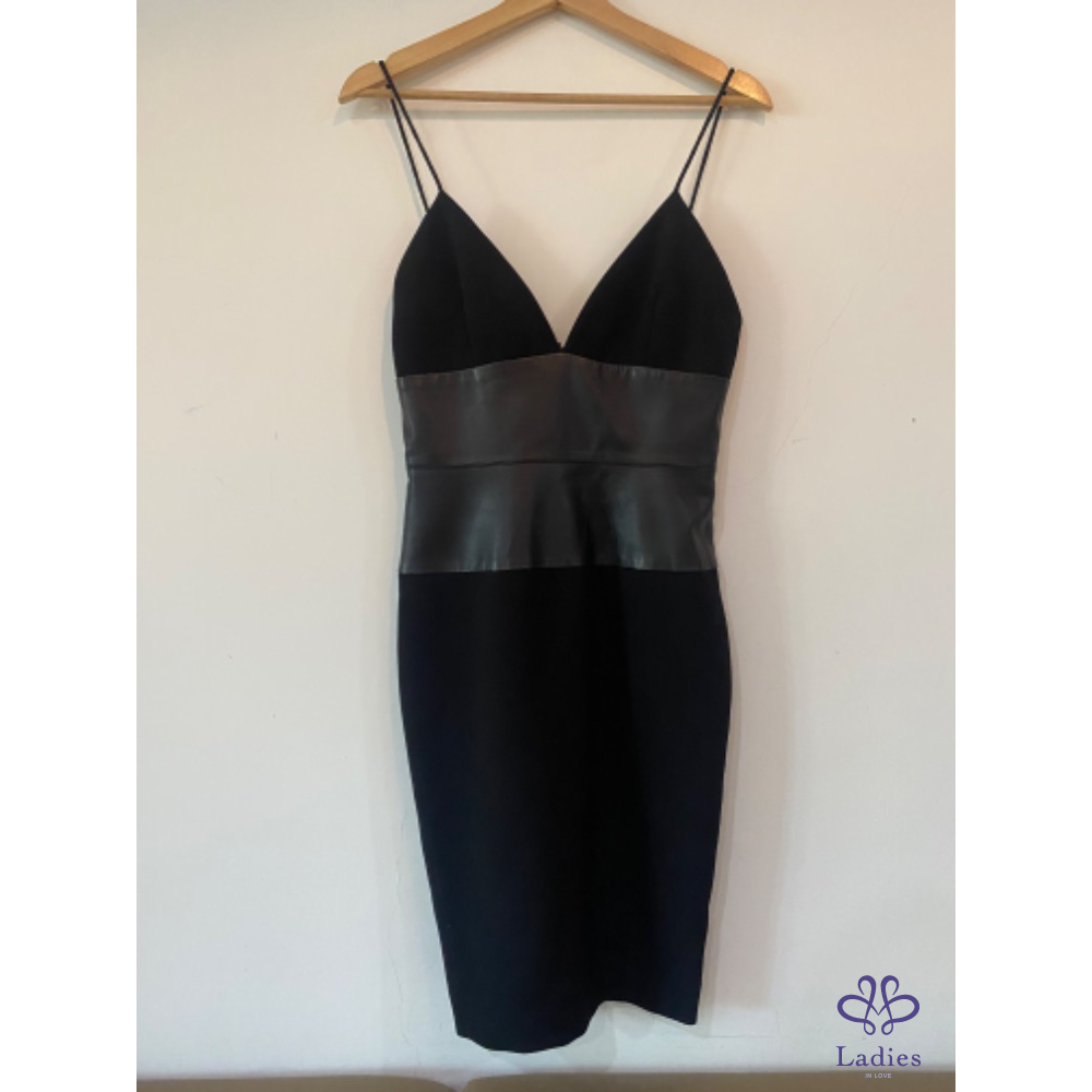 首頁 精品服飾 L’Agence 黑色小羔羊皮拼接細肩帶及膝洋裝