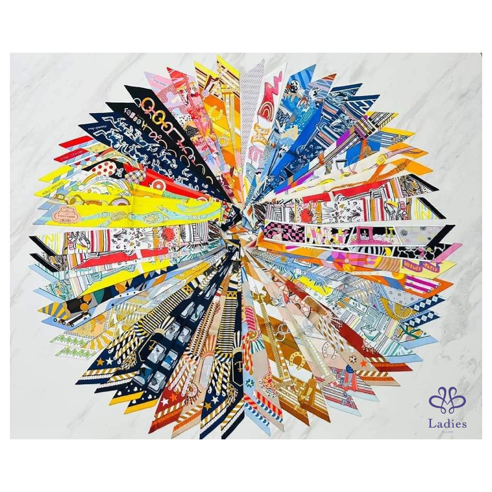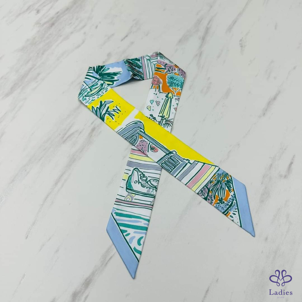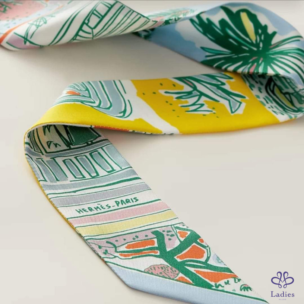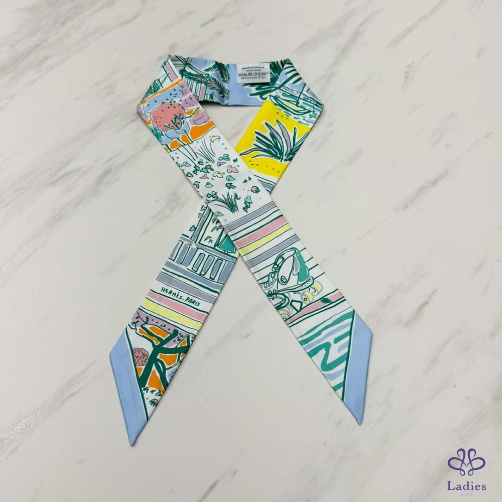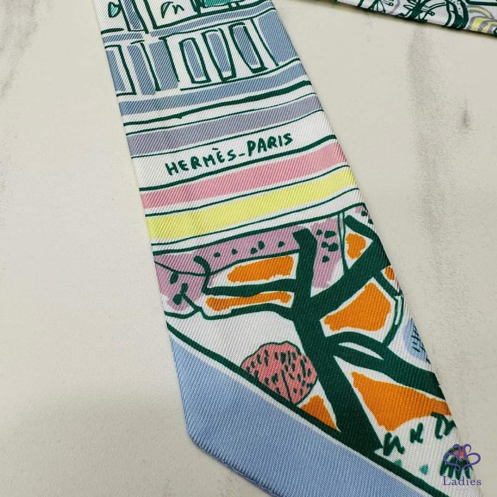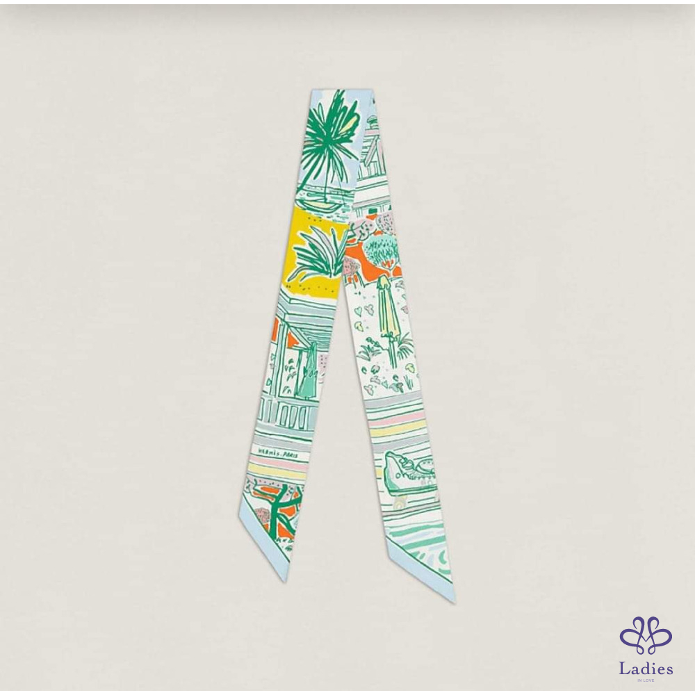 售 Hermes Rayures d'Ete Twilly x jaune vif/ciel/vert 愛馬仕夏季條紋 艷黃/天空藍/綠 綁帶長絲巾