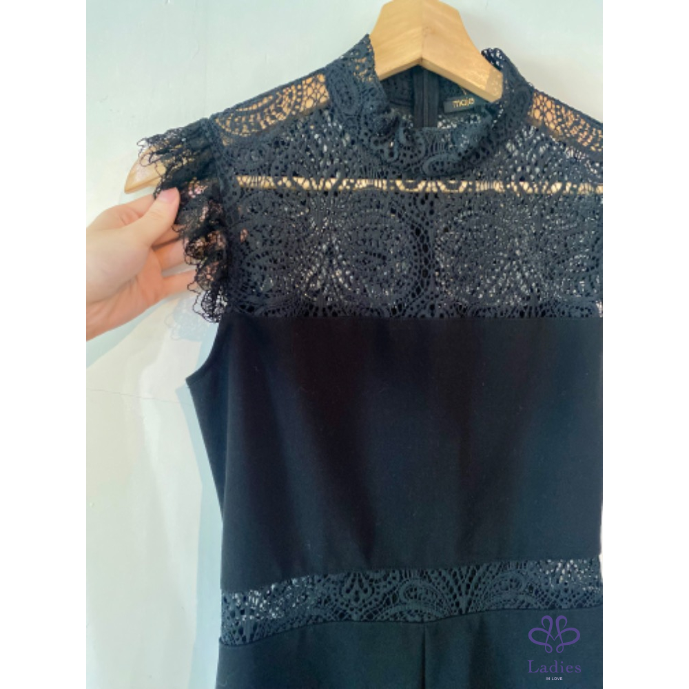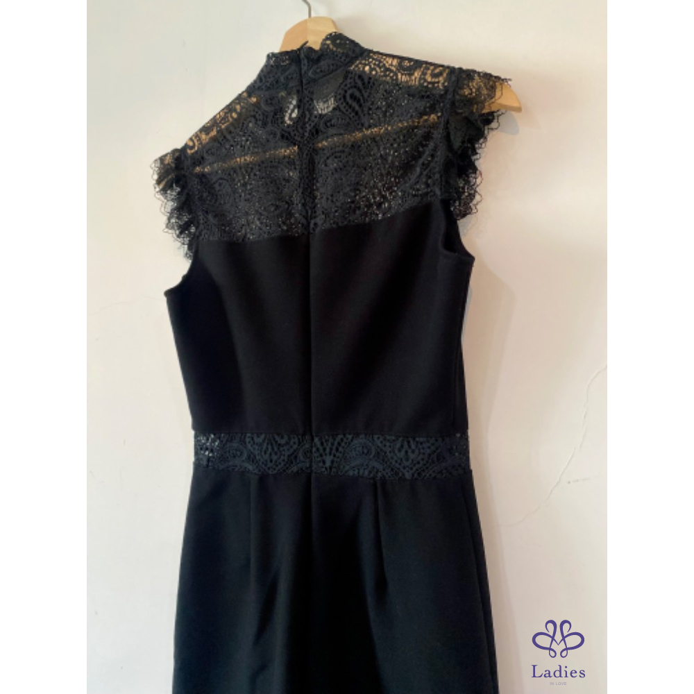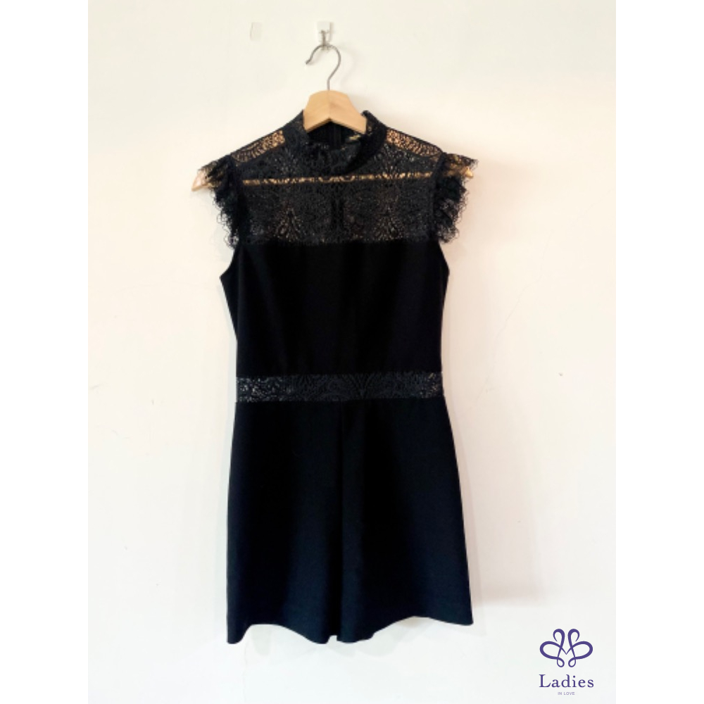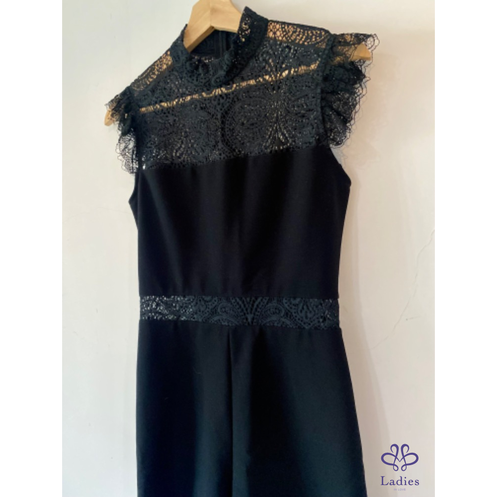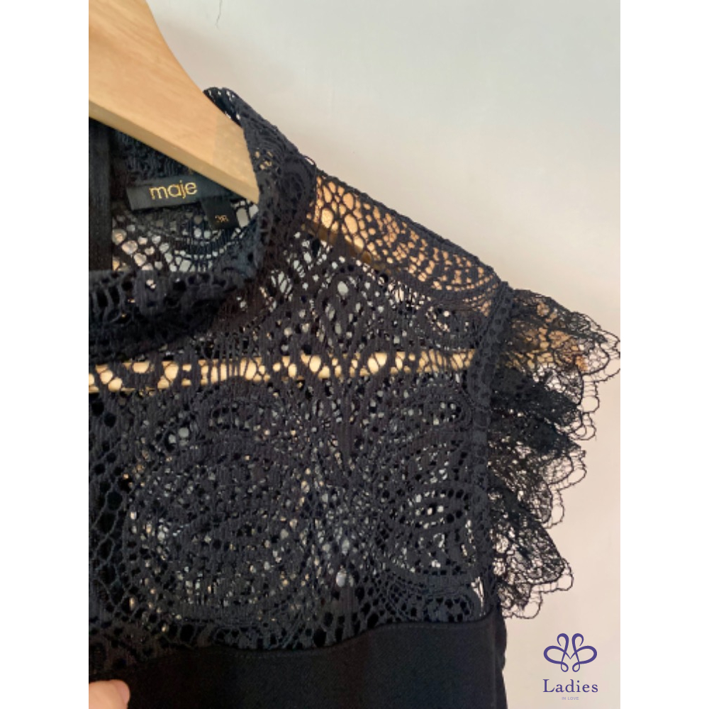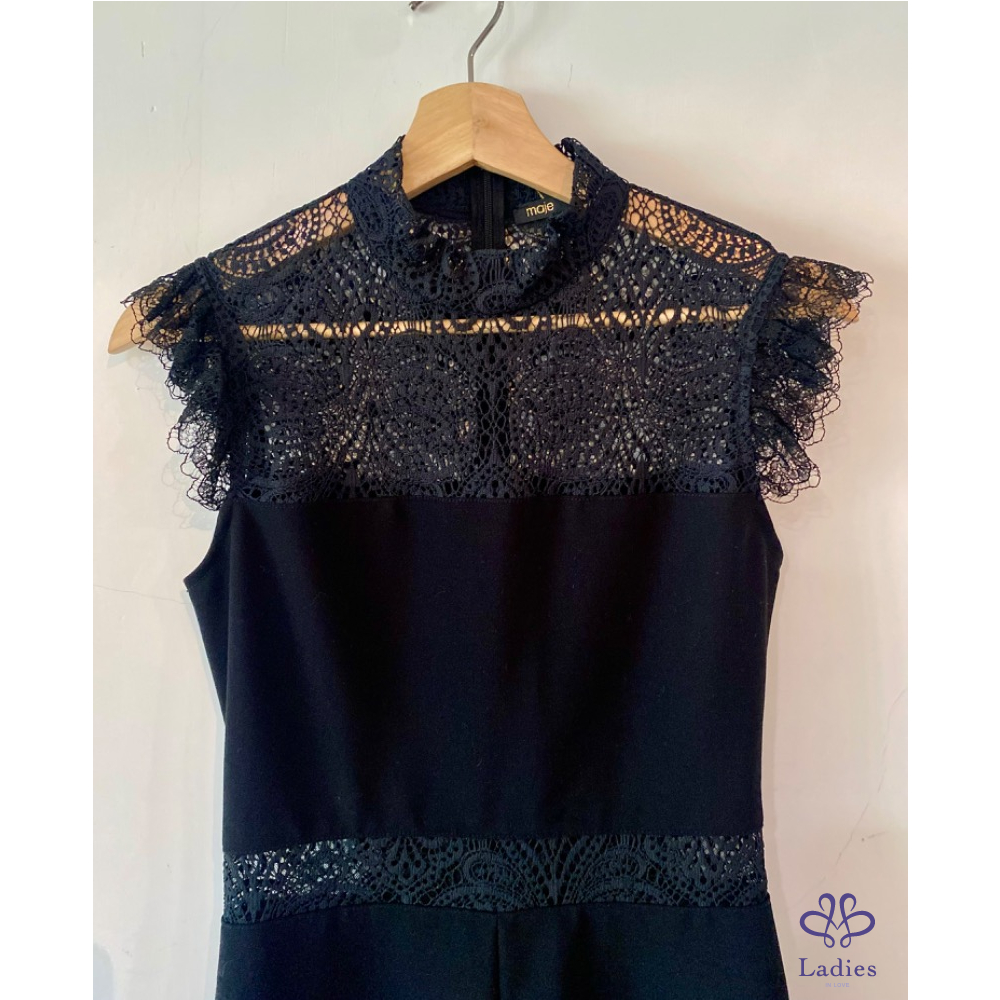 Maje小立領雙肩開展簍空蕾絲連身褲