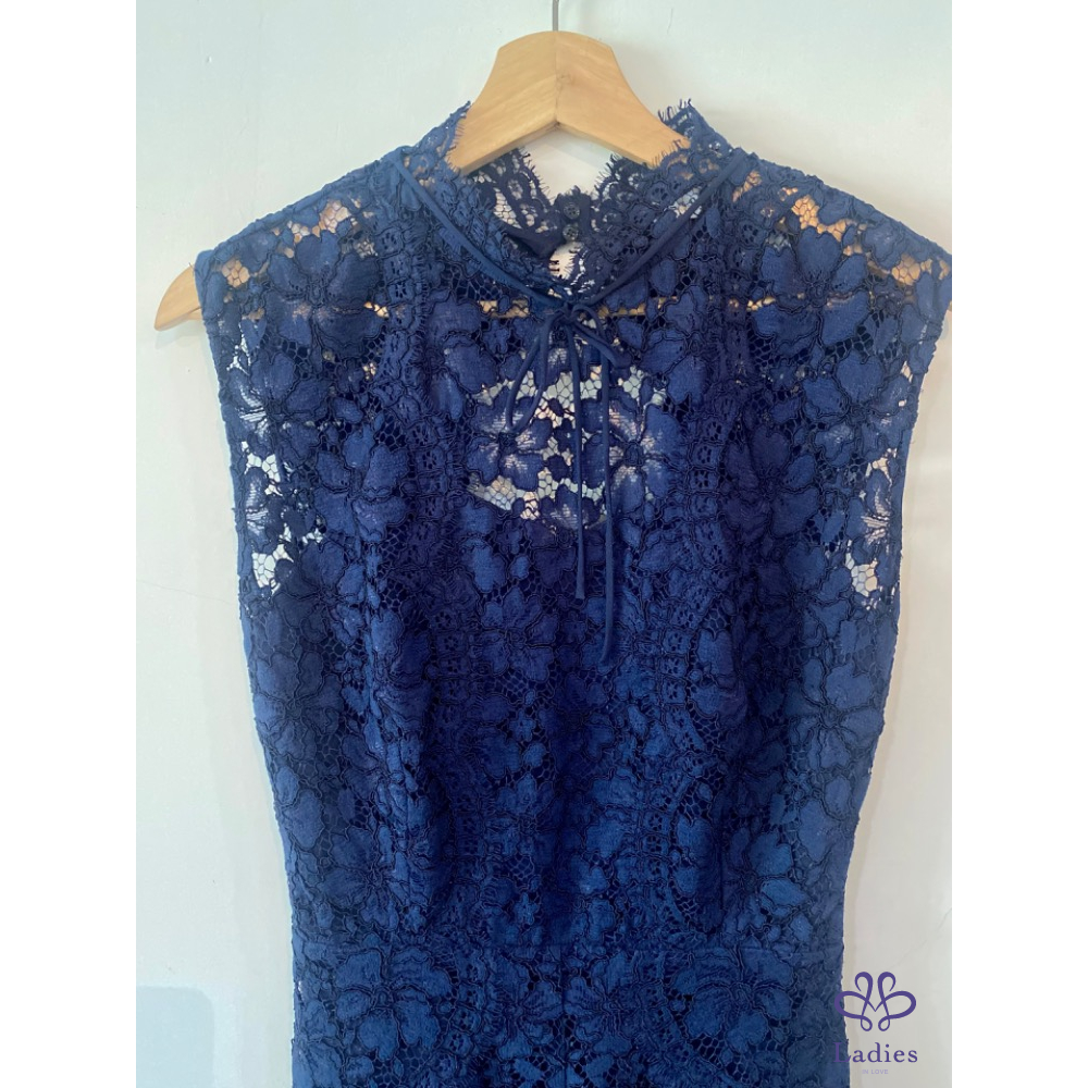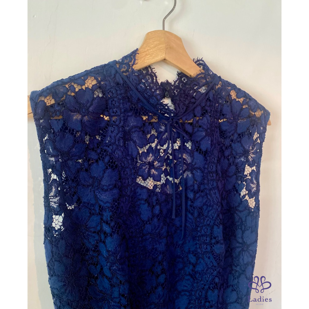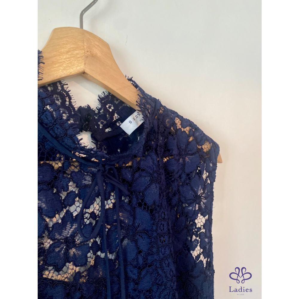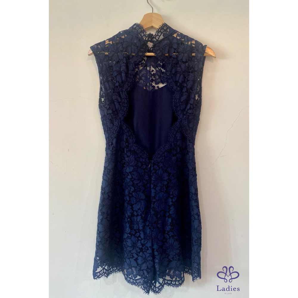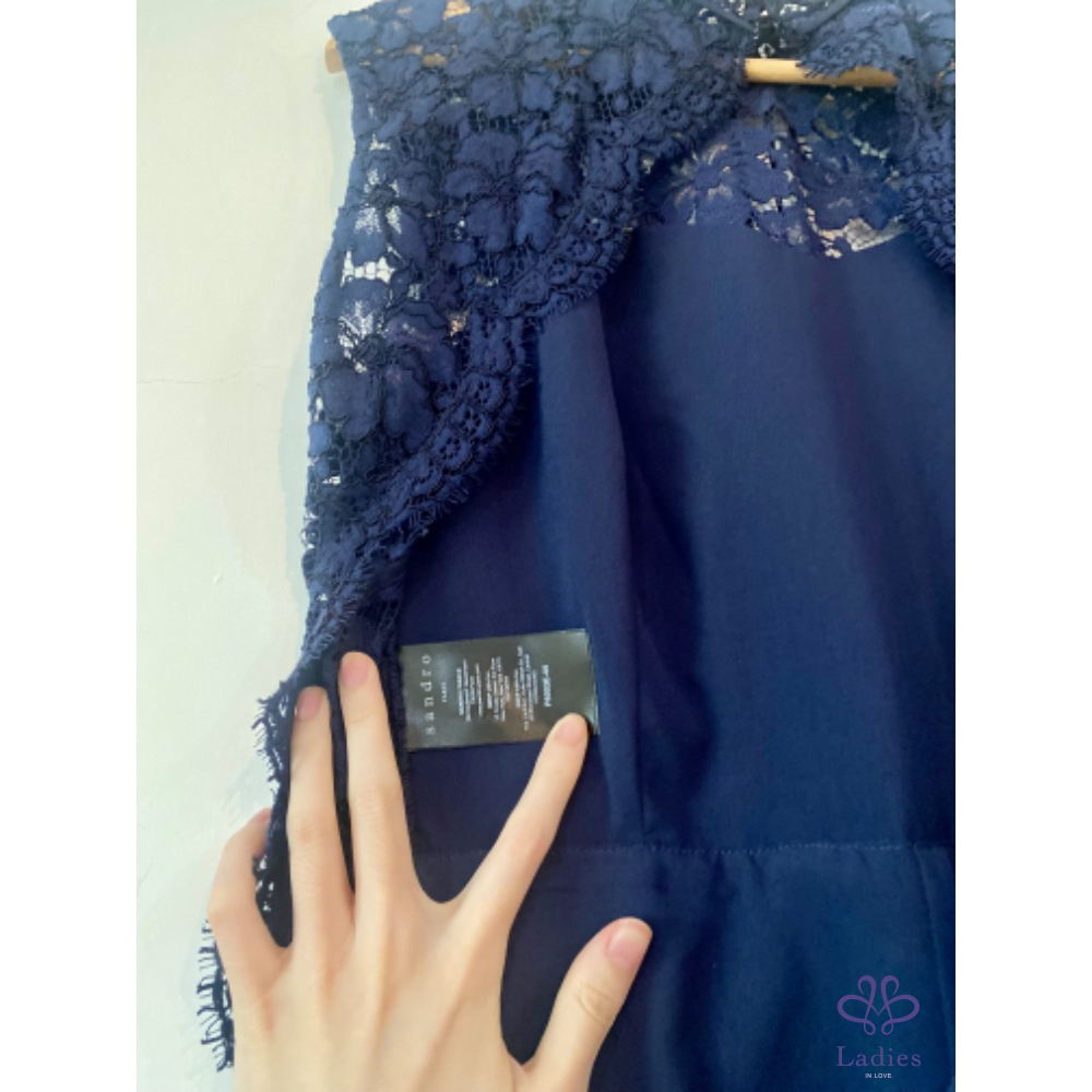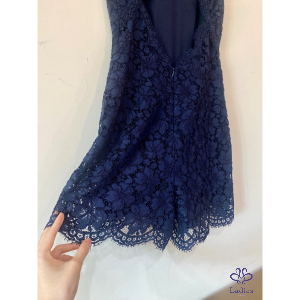 首頁 精品服飾 Sandro 深藍睫毛蕾絲露背連身褲