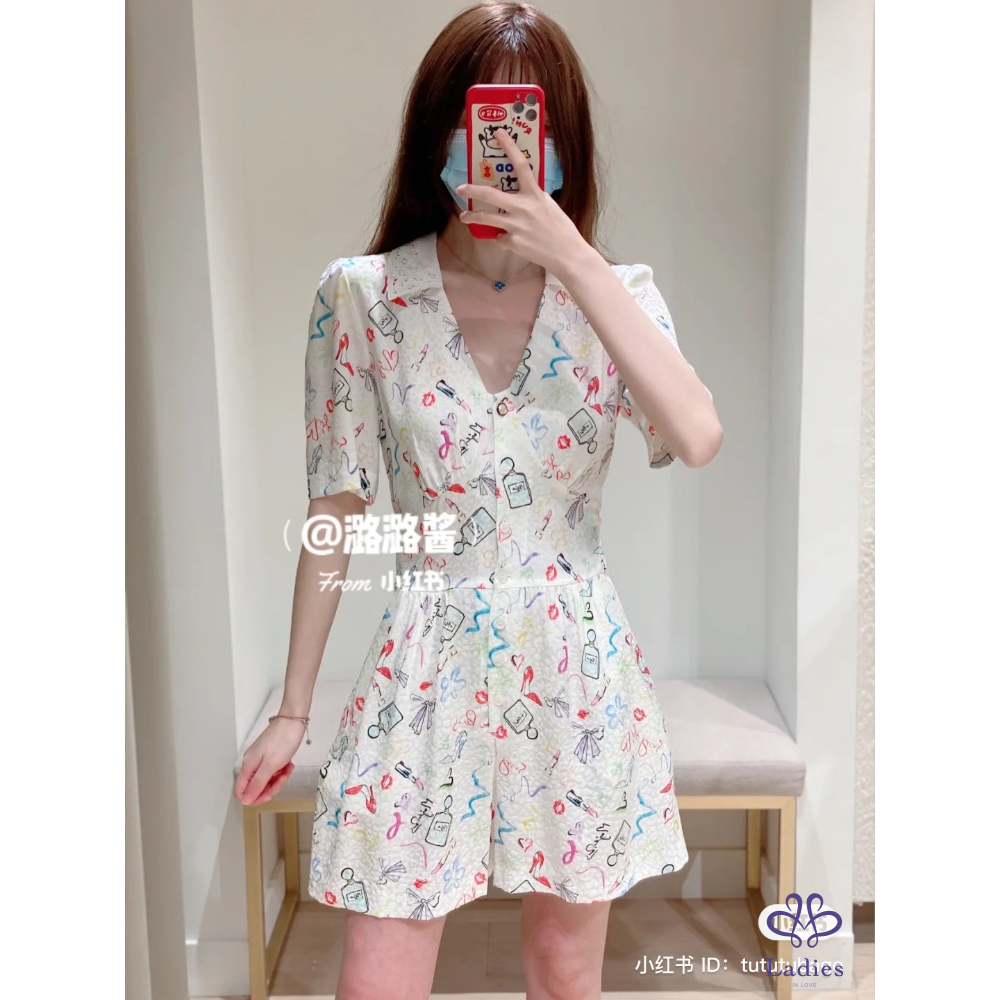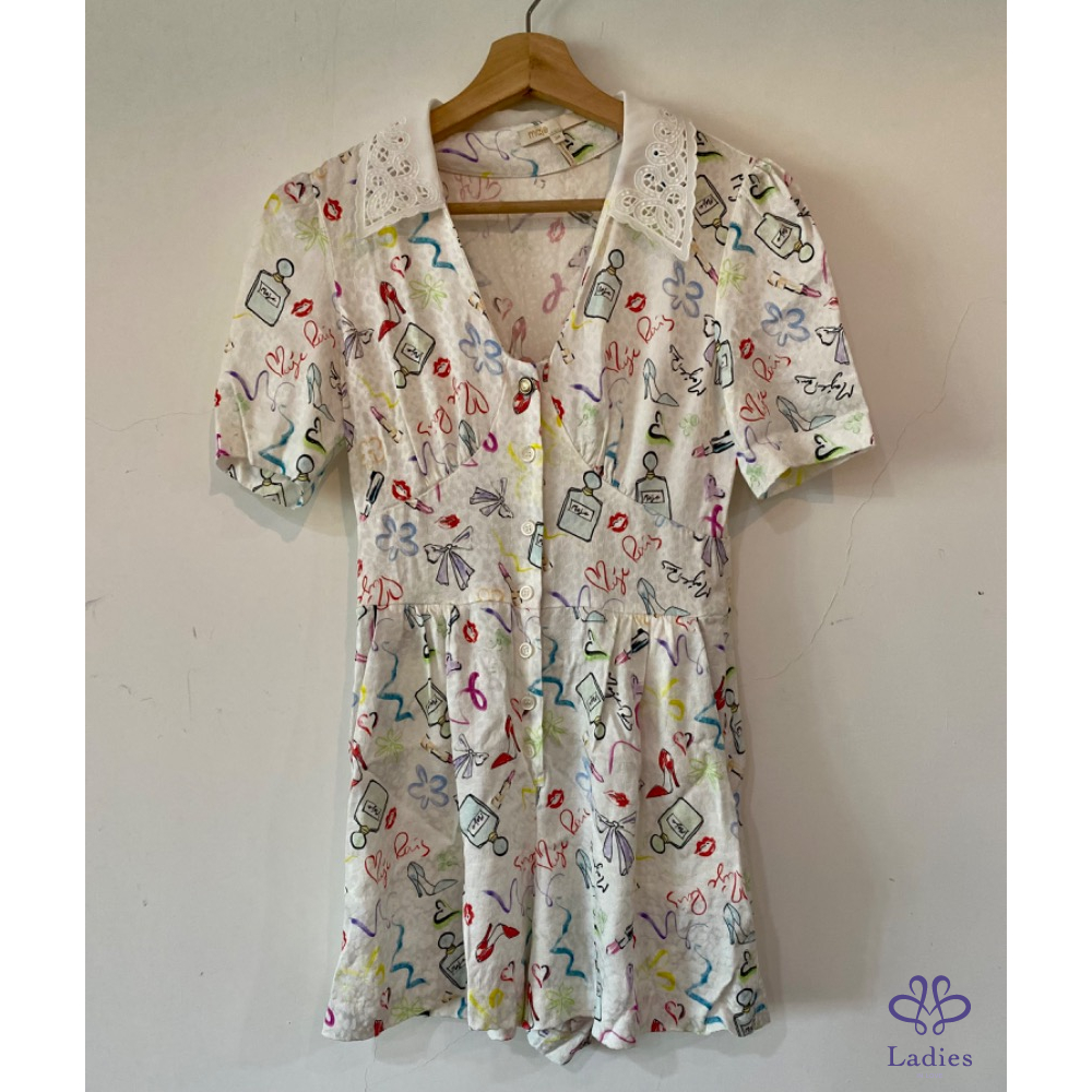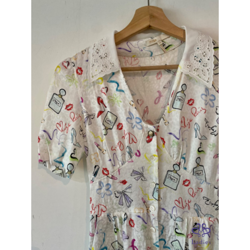 首頁 精品服飾 Maje精緻手繪風白蕾絲領連身褲