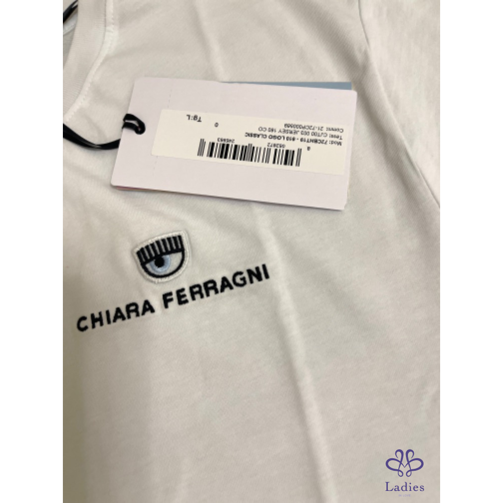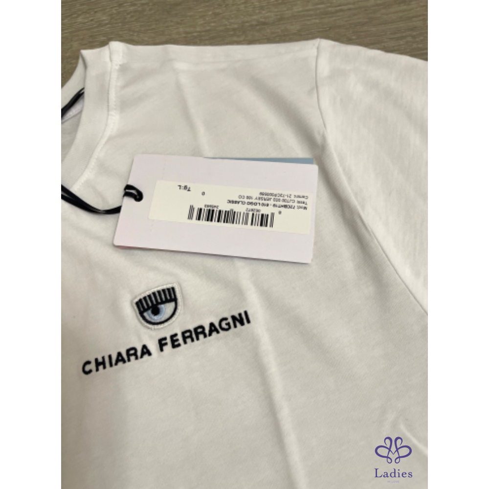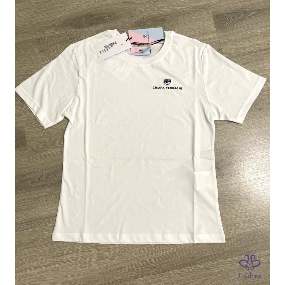 全新 Chiara ferragni 經典刺繡眨眼白色T 恤