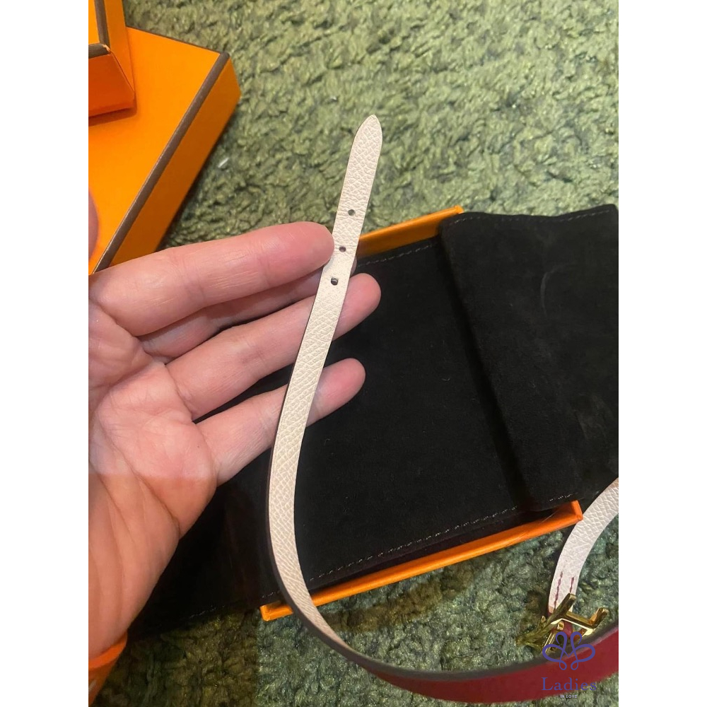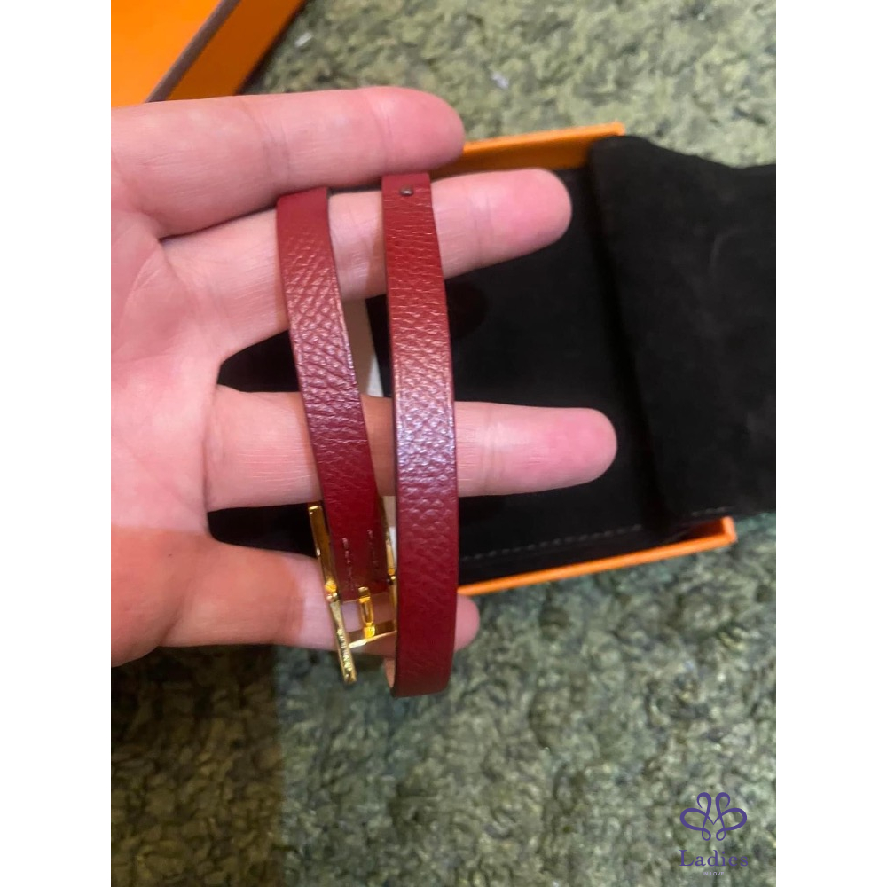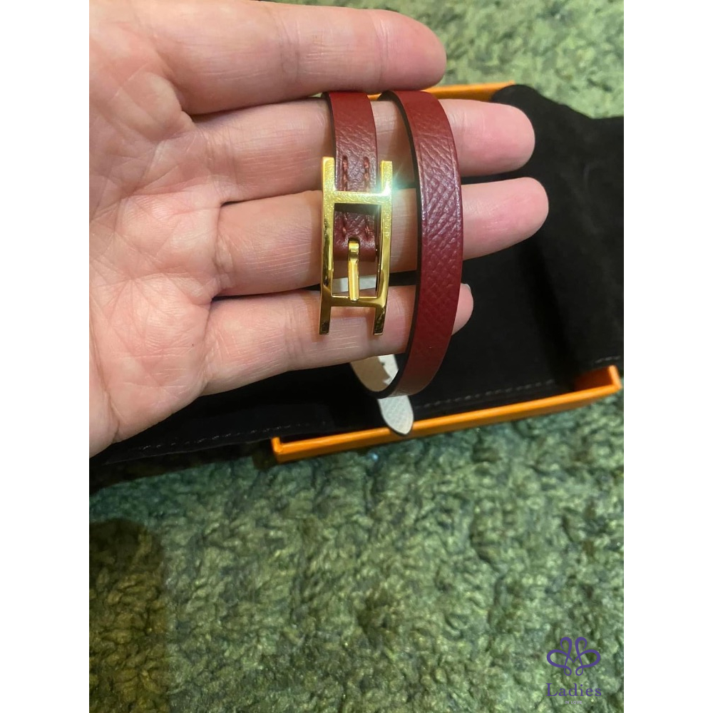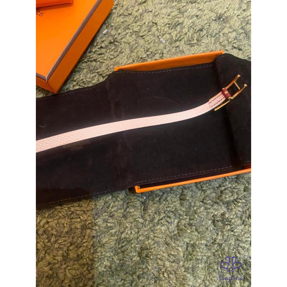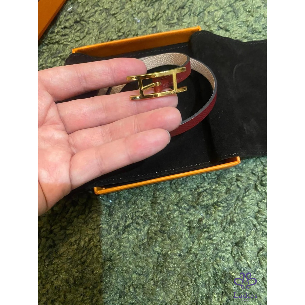 產品信息 Hermes BeHapi H金釦雙色手環 出清價9800元 ????95新,專櫃購入購價忘了,查售價13200元 ????有氣質的粉+石榴紅色系,可以雙面配戴搭配不同色系服裝 有實拍圖,有很多調節孔適合各種手圍的美人 ????戴不到3次就收在防潮箱,金色H釦????️氧化褪色 皮革還新新的,幾乎沒有什麼使用痕跡 附件:原廠防塵袋+橘盒 ????他團同售,郵寄60元