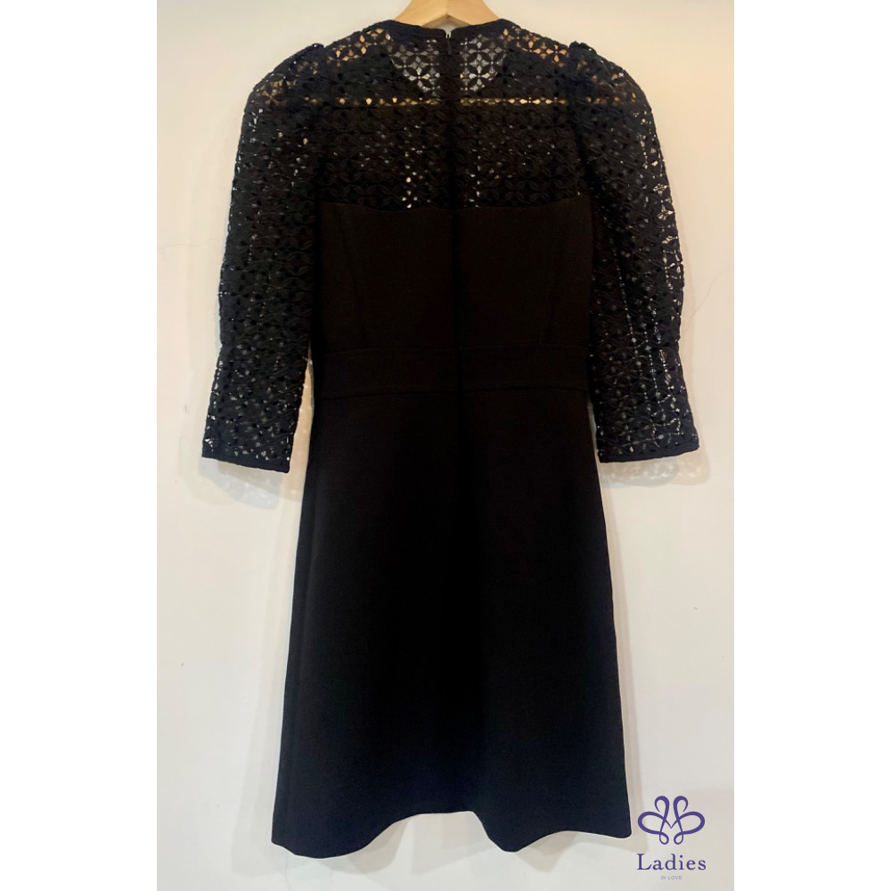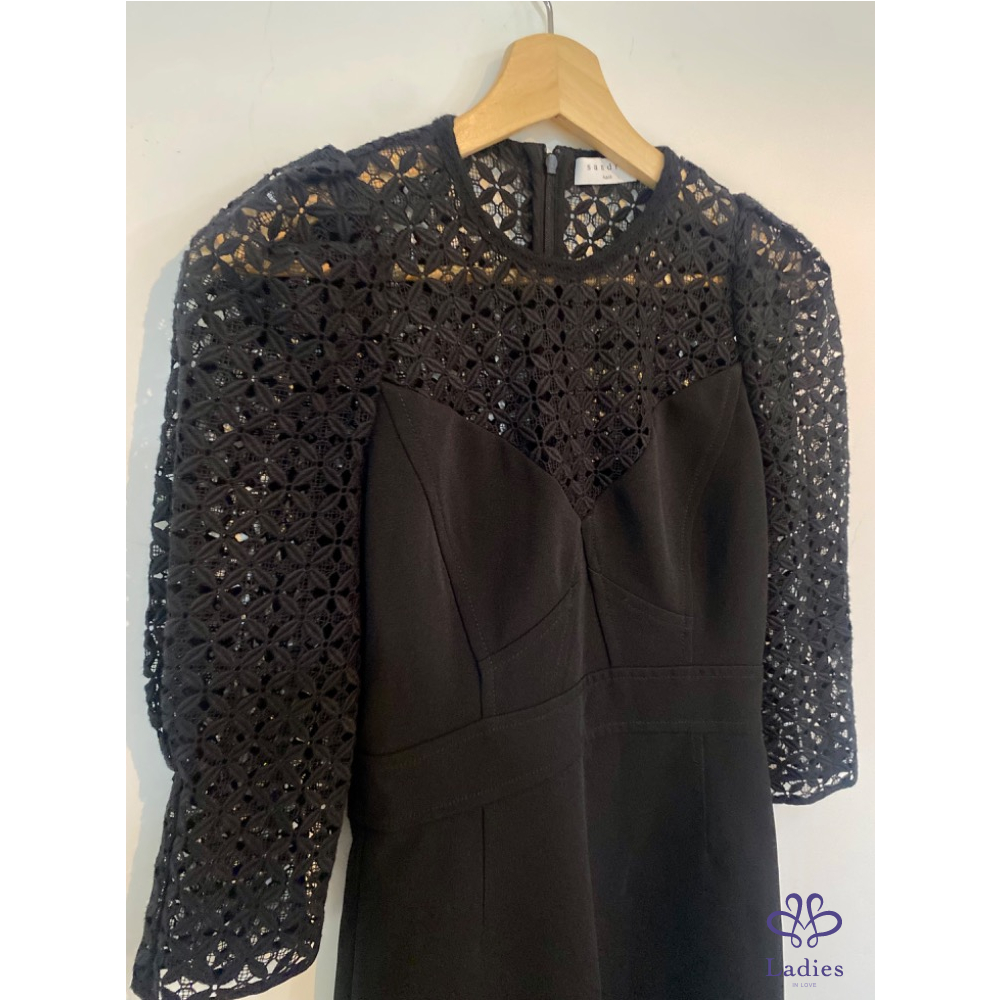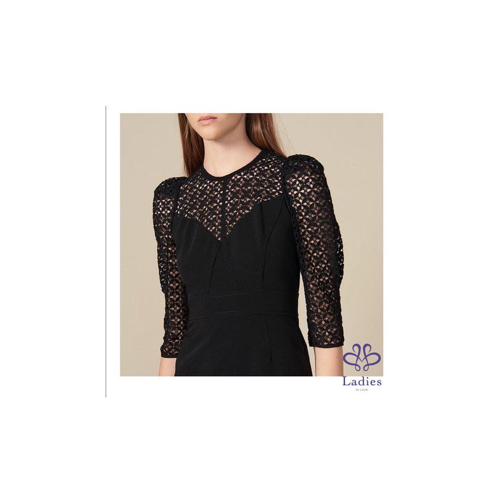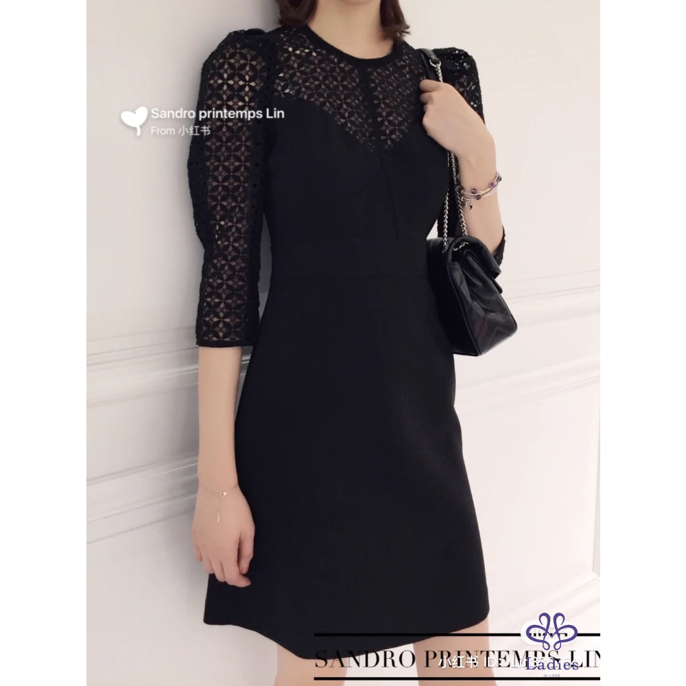 首頁 精品服飾 Maje 黑色泡泡袖菱格簍空洋裝