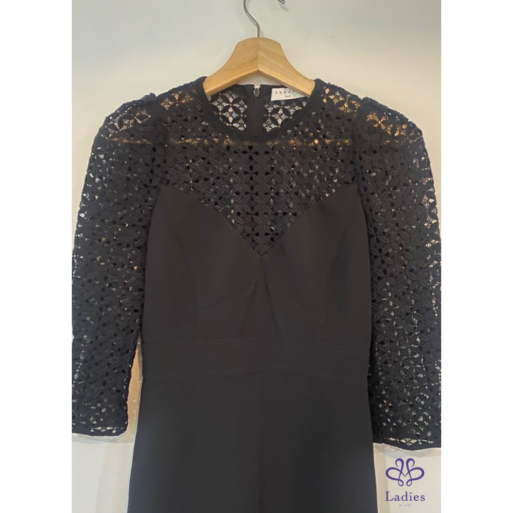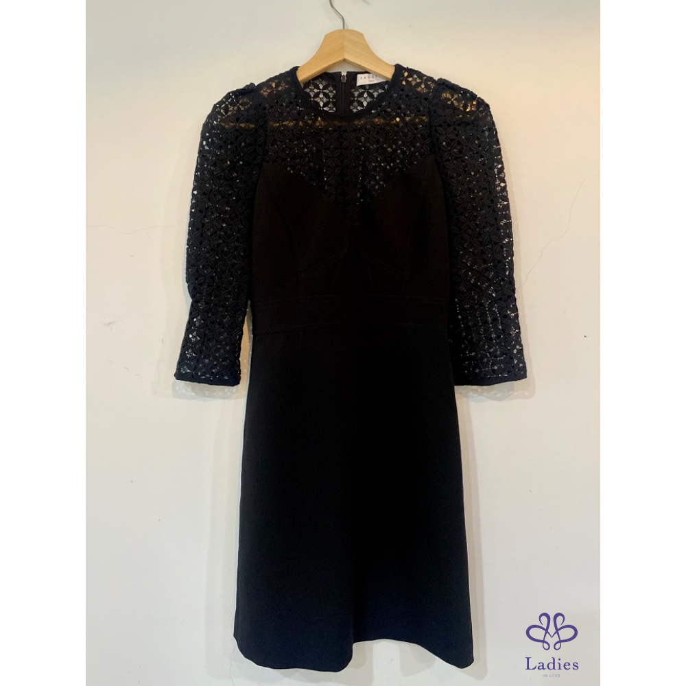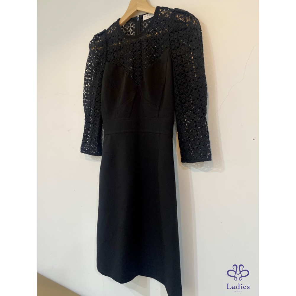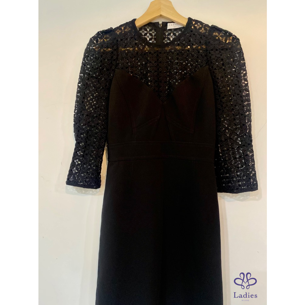 首頁 精品服飾 Maje 黑色泡泡袖菱格簍空洋裝