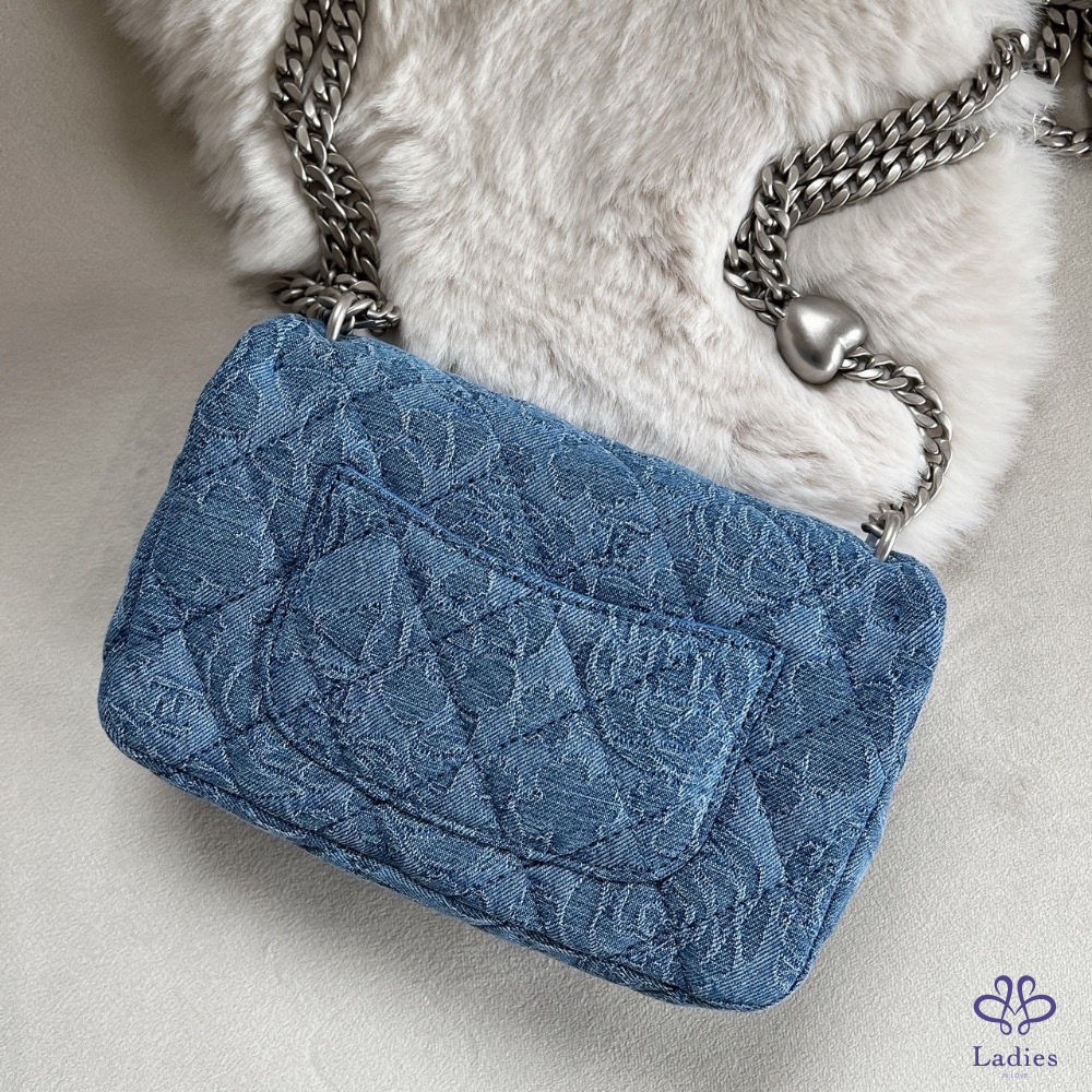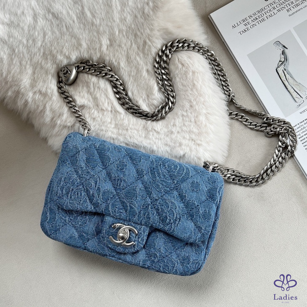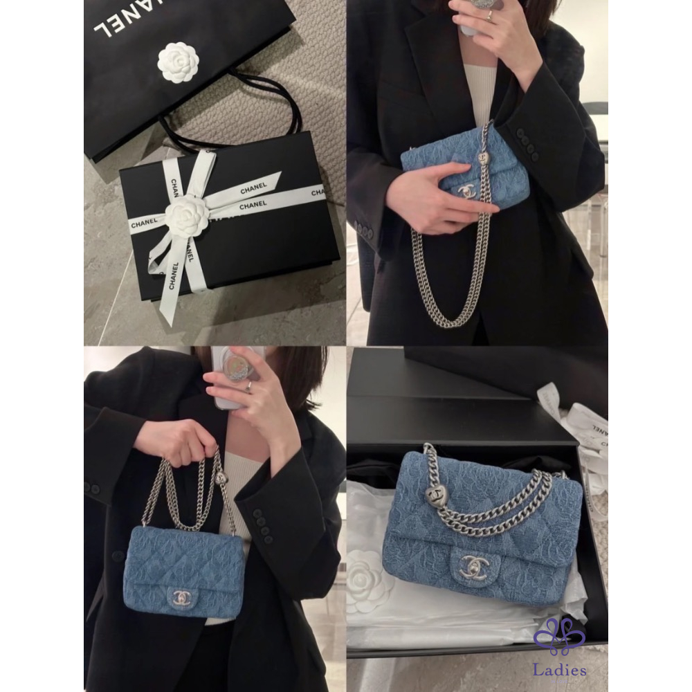 銀色愛心可調節鏈條⛓️搭配牛仔山茶花花紋