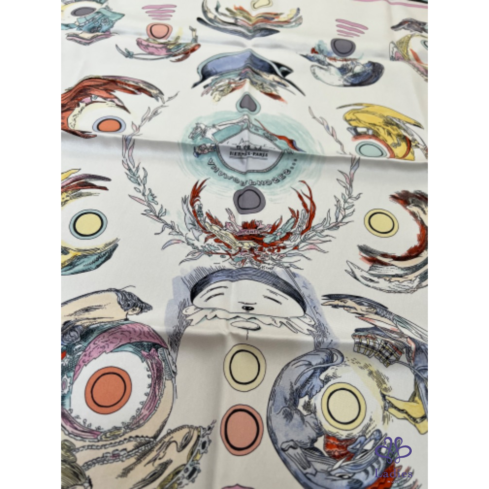 將隨附的鏡面捲起,並置於設計上的彩色圓形上,即會反射出經過扭曲的新圖像。
