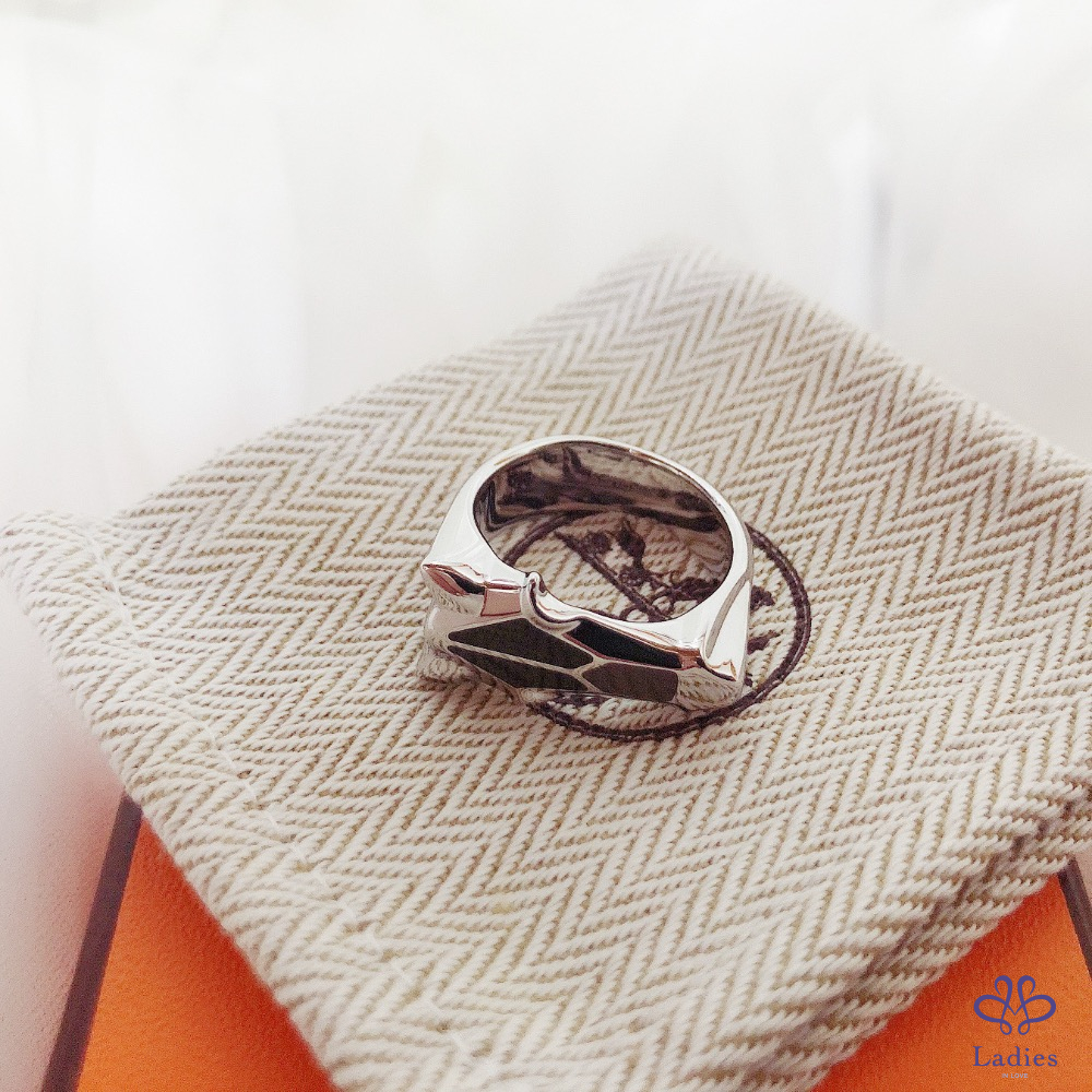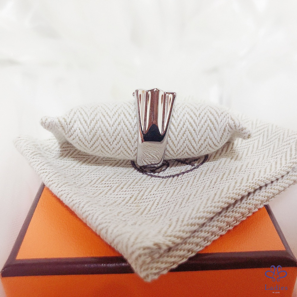 首頁 精品手錶 Hermes 愛馬仕 Destrier ring 琺瑯 銀色 馬頭 戒指 62號 全新✨