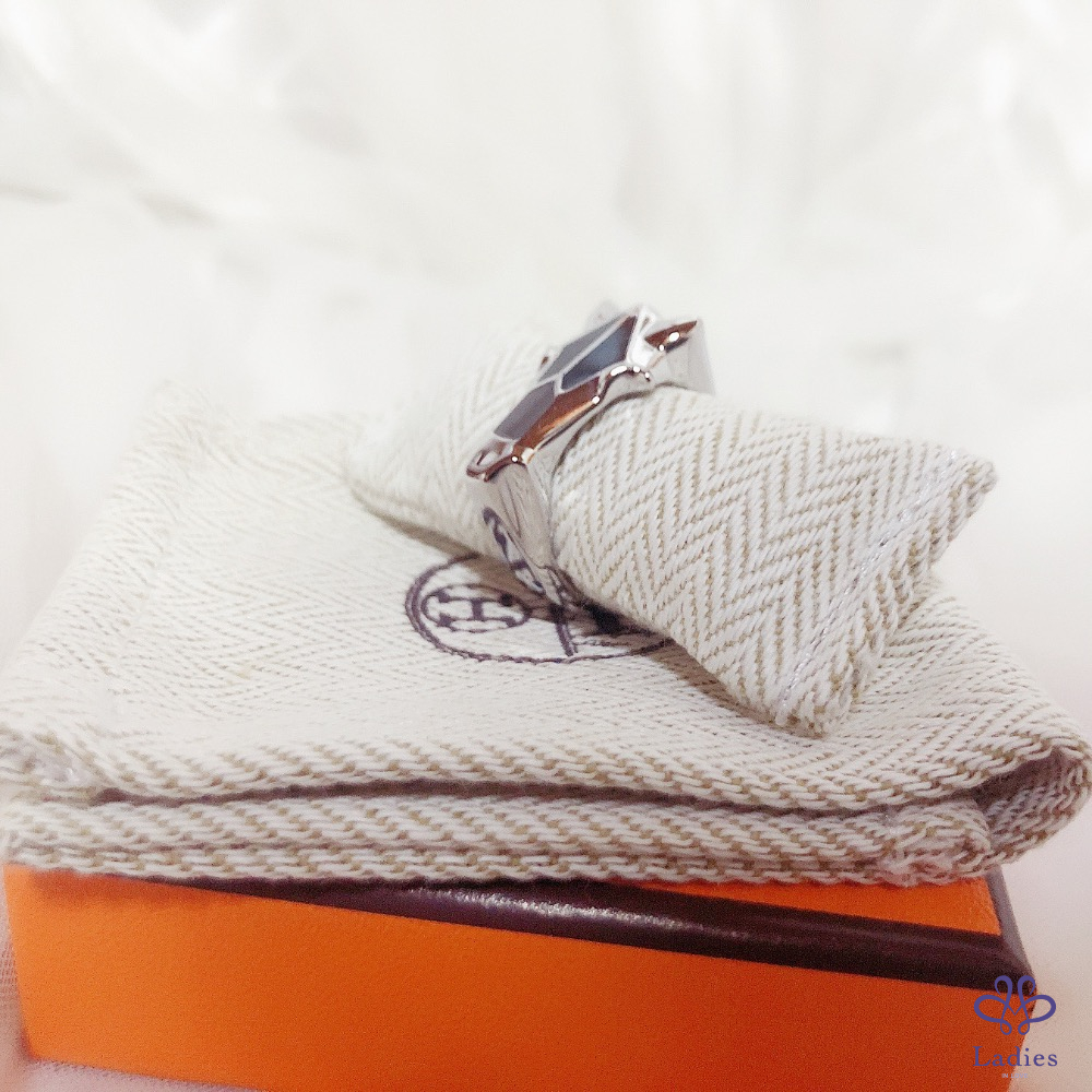 Hermes 愛馬仕 Destrier ring 琺瑯 銀色 馬頭 戒指 62號 全新✨