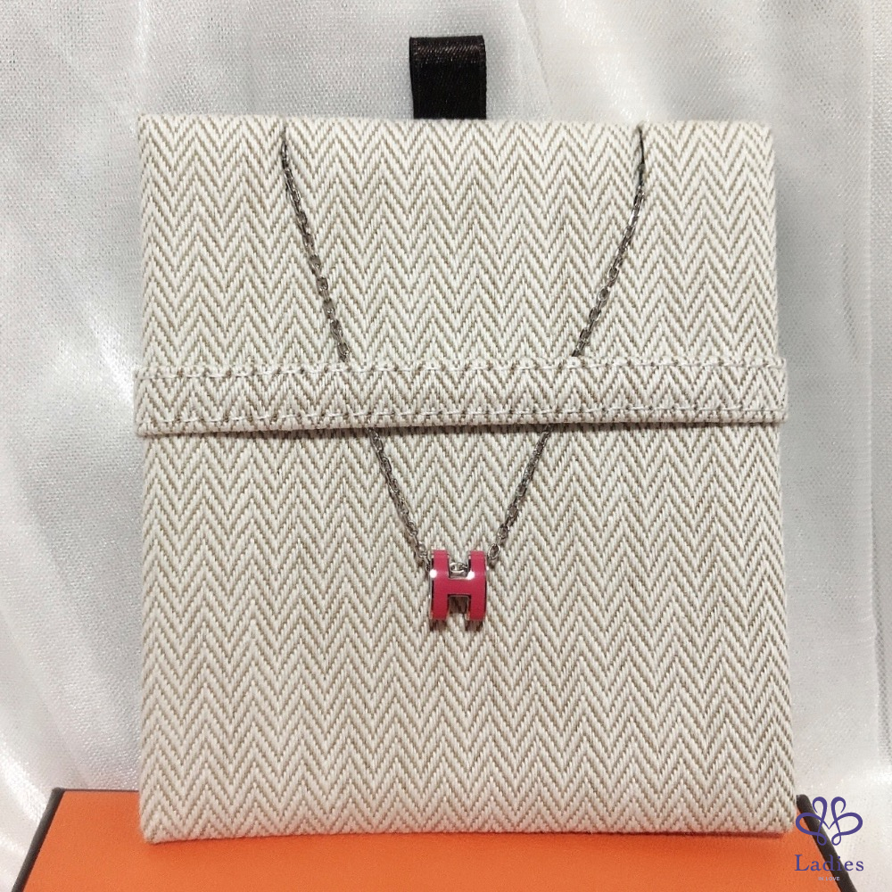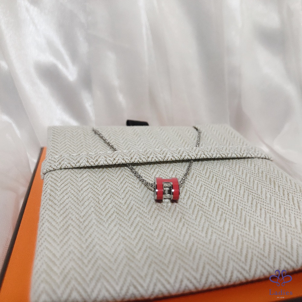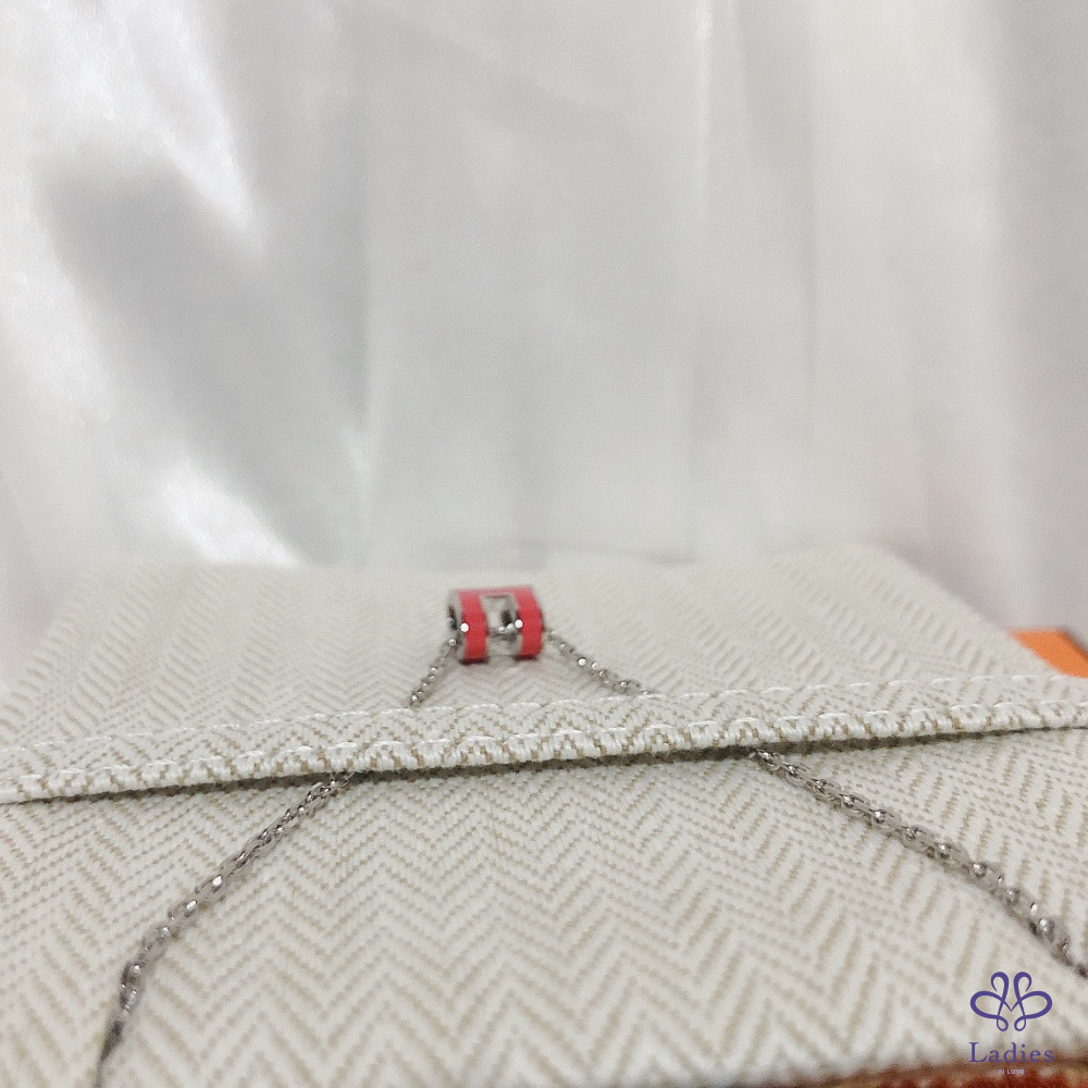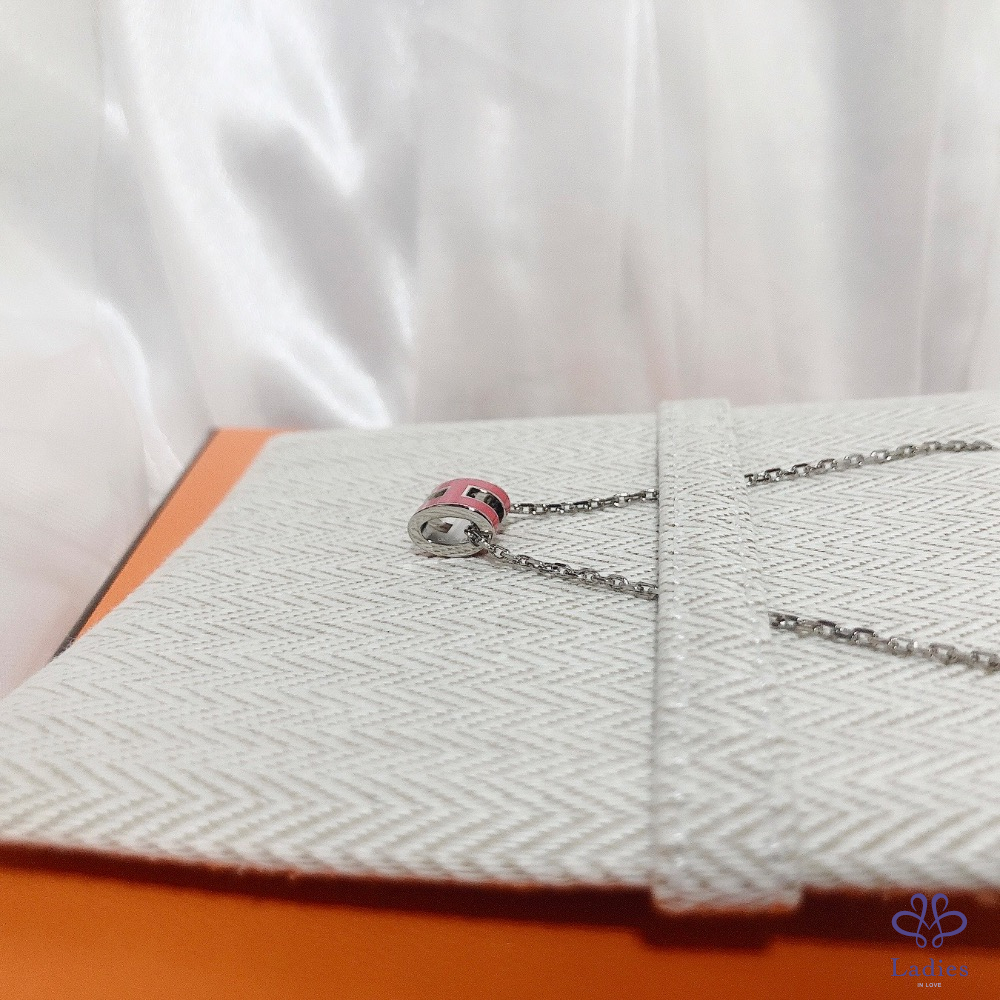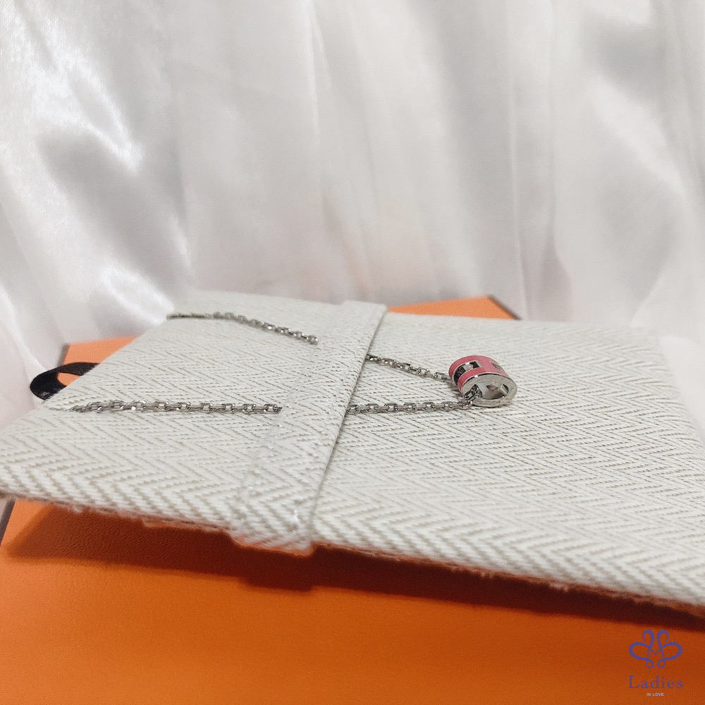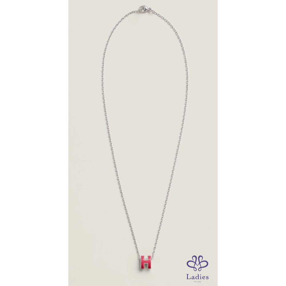 首頁 精品手錶 Hermes 愛馬仕 經典 琺瑯 橢圓型 新款 mini pop H 項鍊 覆盆子玫瑰色配銀鍊 全新 ✨