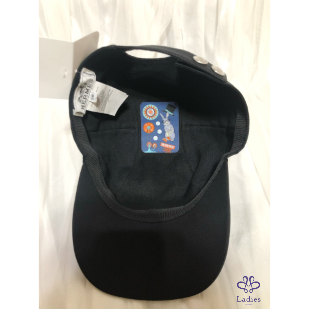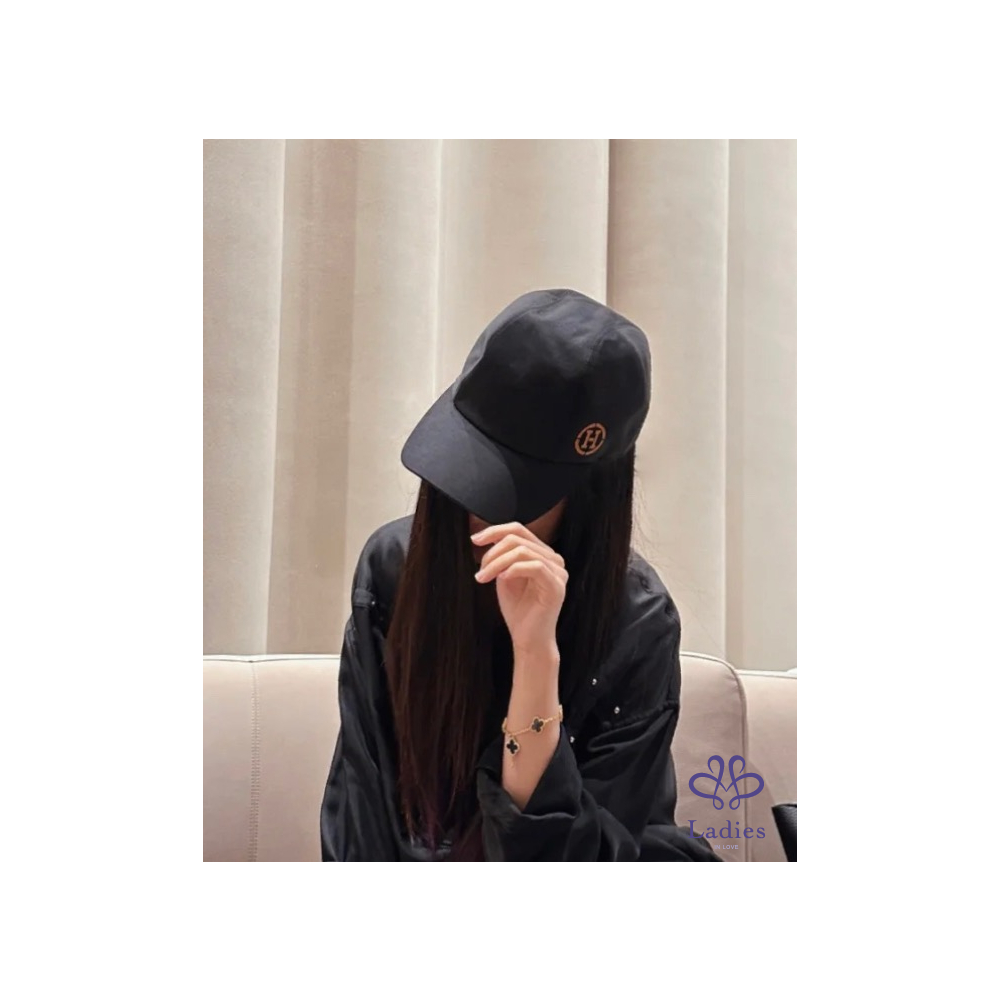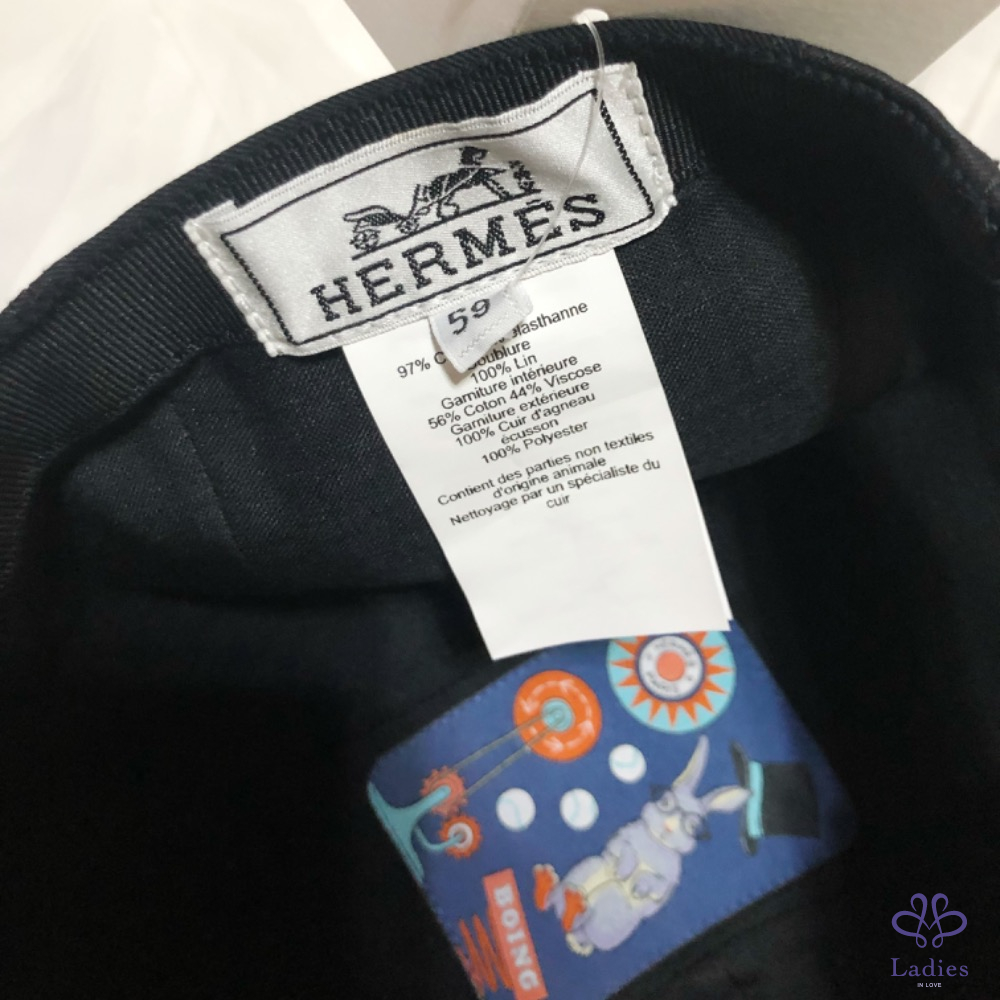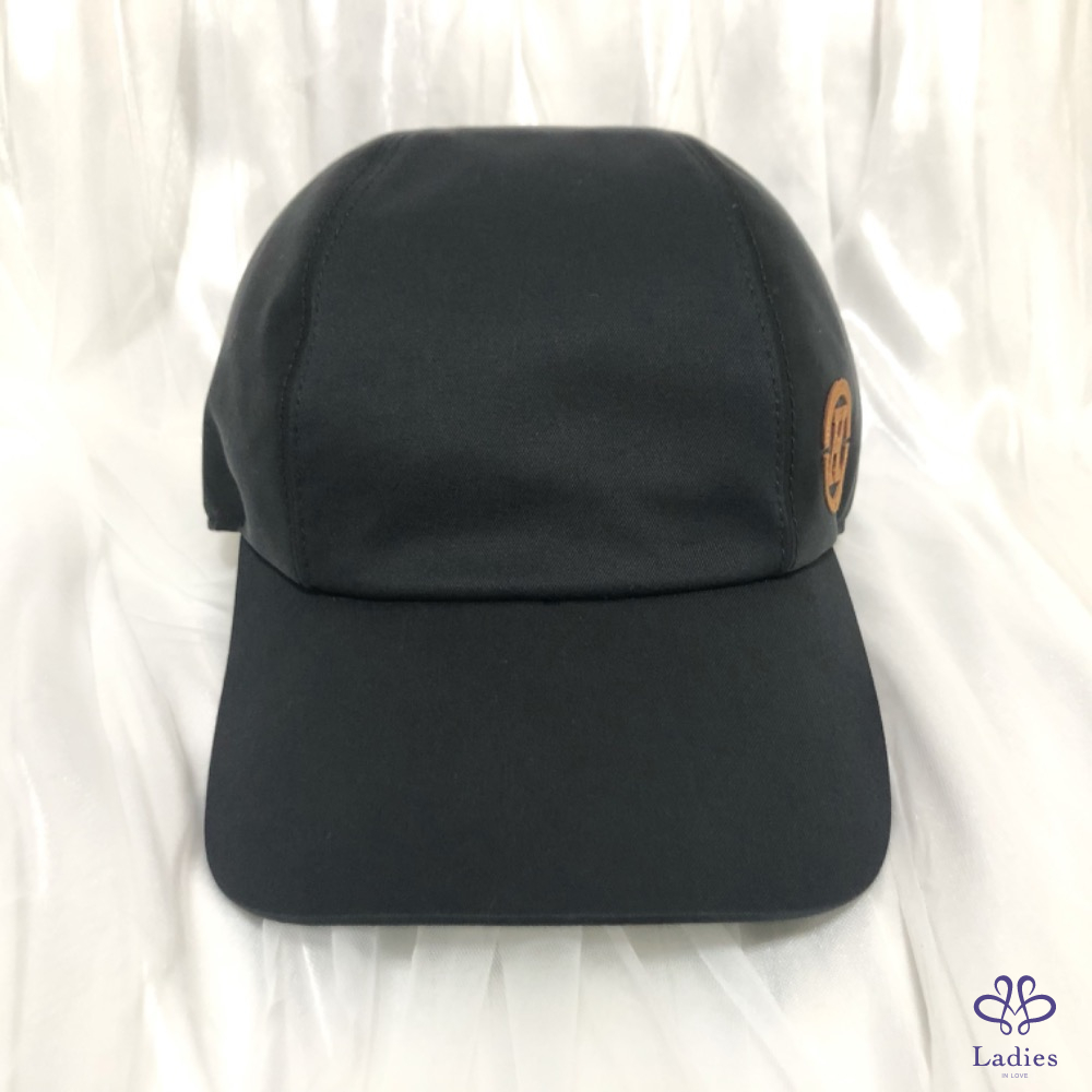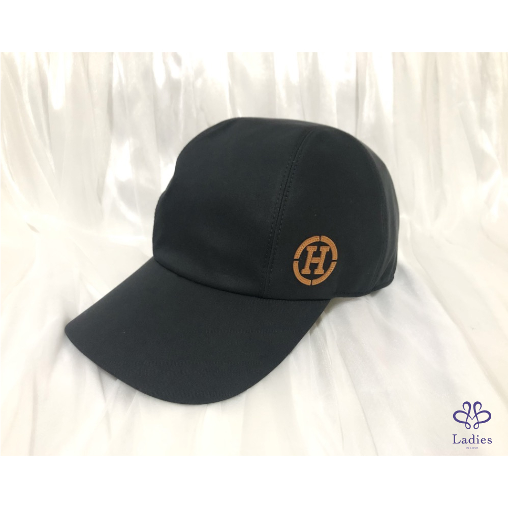 彈性斜紋棉質男士休閒帽,內側"Lunar New Year 2023"徽章和標誌性對比色小羊皮"H Circle",可調整釦帶和兩個磨砂鍍鈀馬鞍釘釦。亞麻內裡。