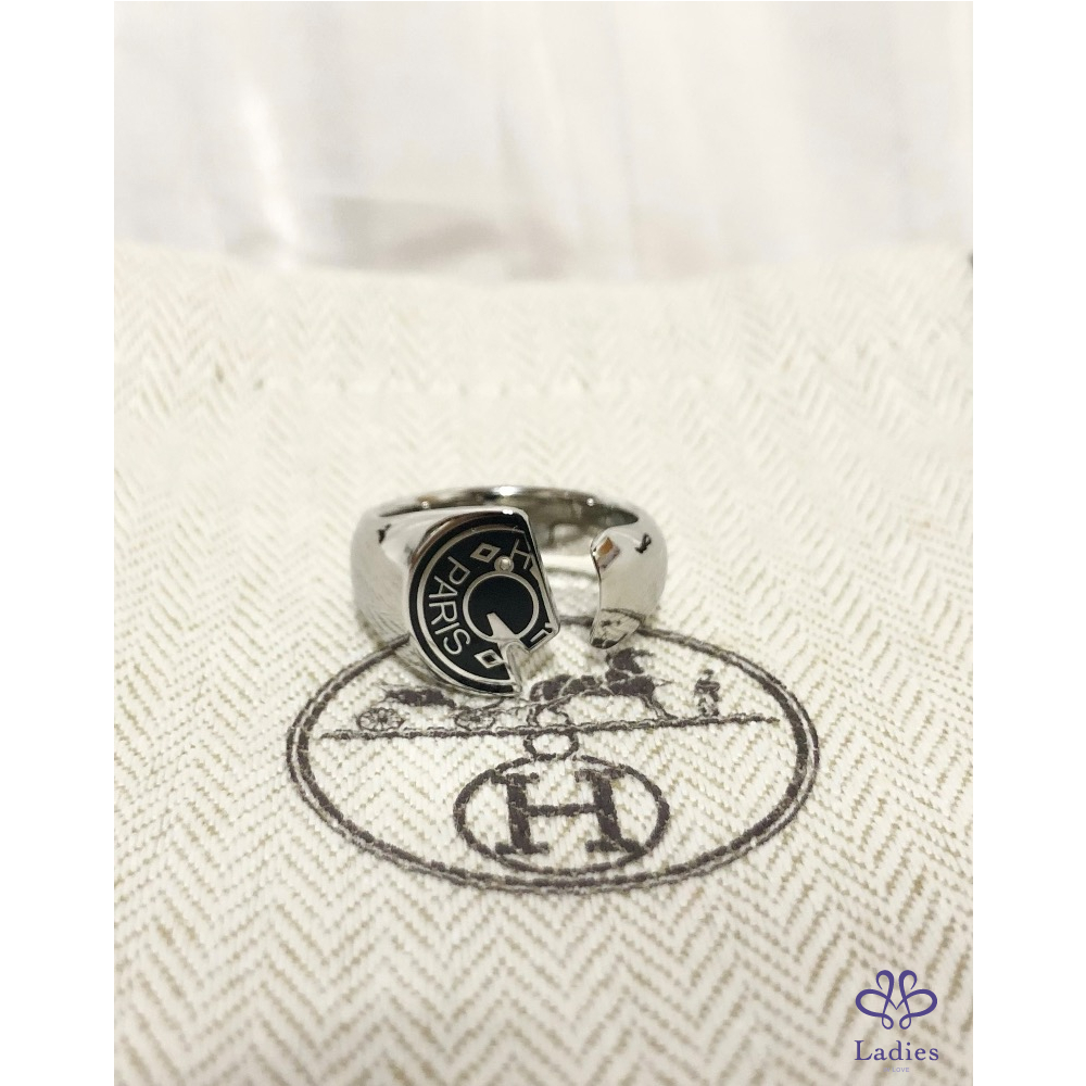 Hermes 愛馬仕 黑色琺瑯 馬頭 Carrousel ring戒指 60號 全新✨