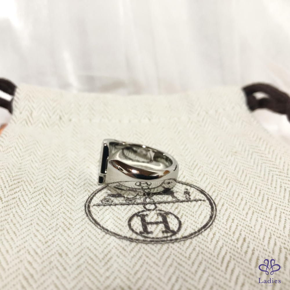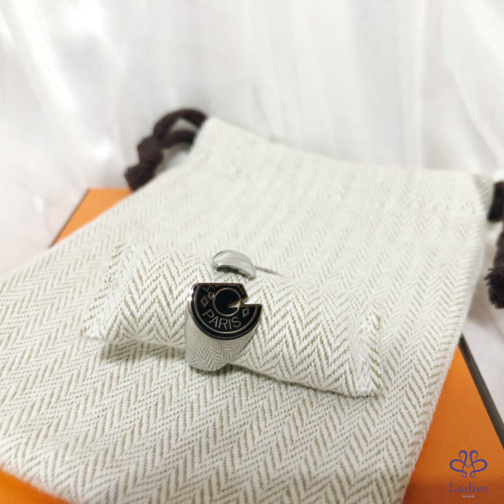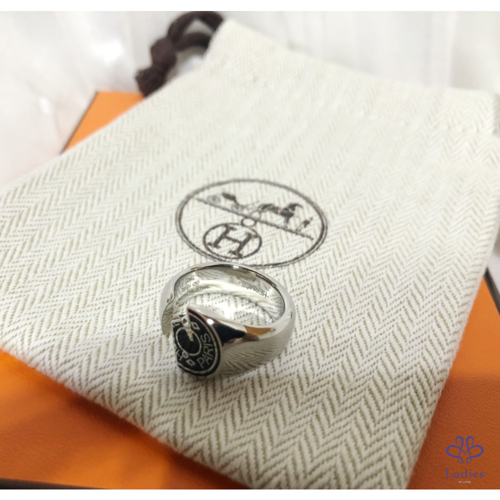 首頁 精品手錶 Hermes 愛馬仕 黑色琺瑯 馬頭 Carrousel ring戒指 60號 全新✨