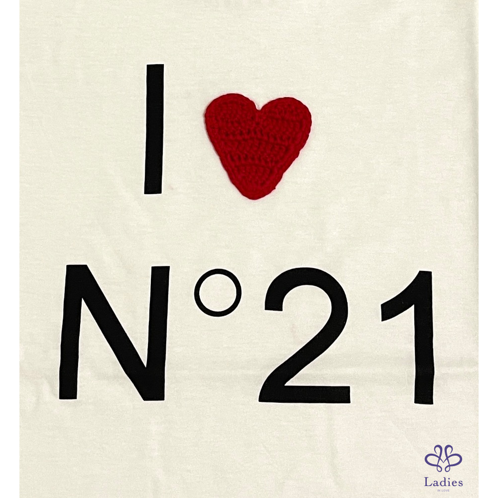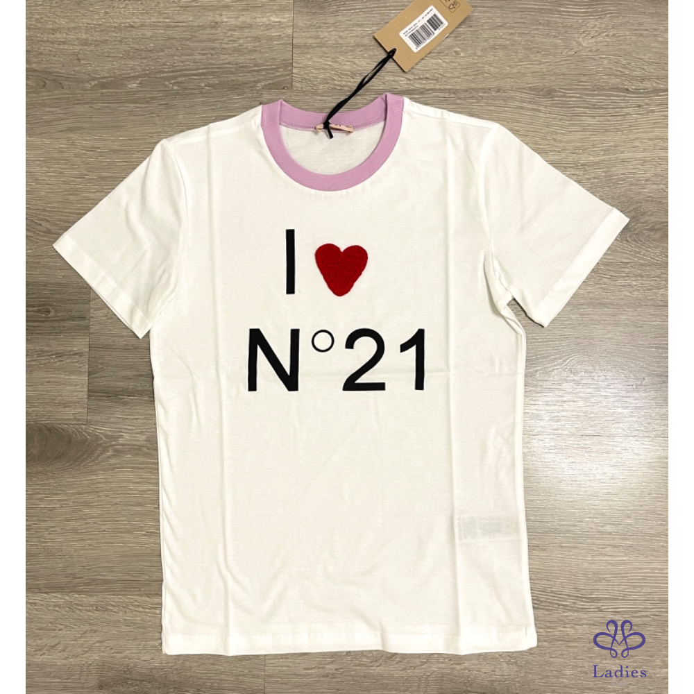 全新Nº21可愛粉色領子刺繡紅色愛心 T 恤