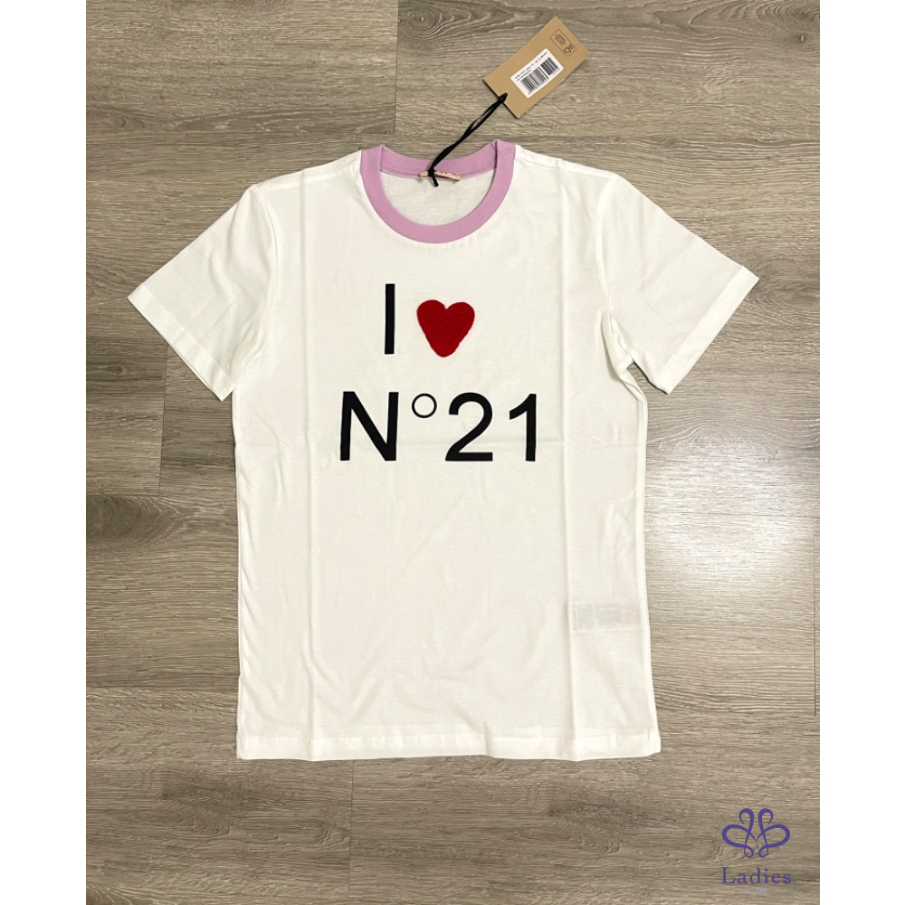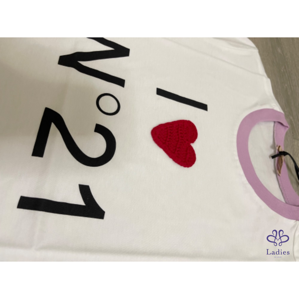 全新 Nº21可愛粉色領子刺繡紅色愛心 T 恤