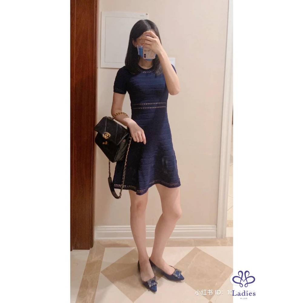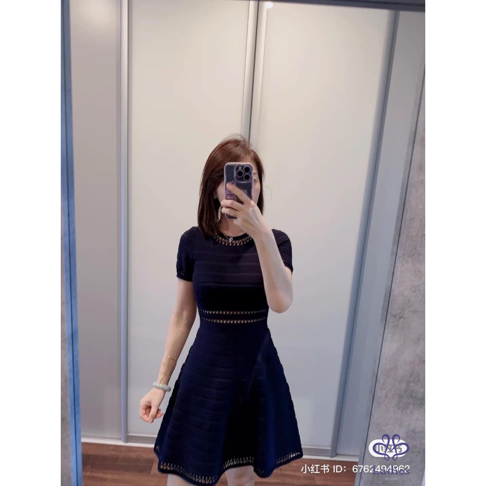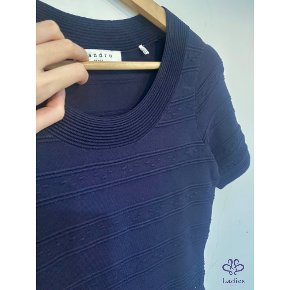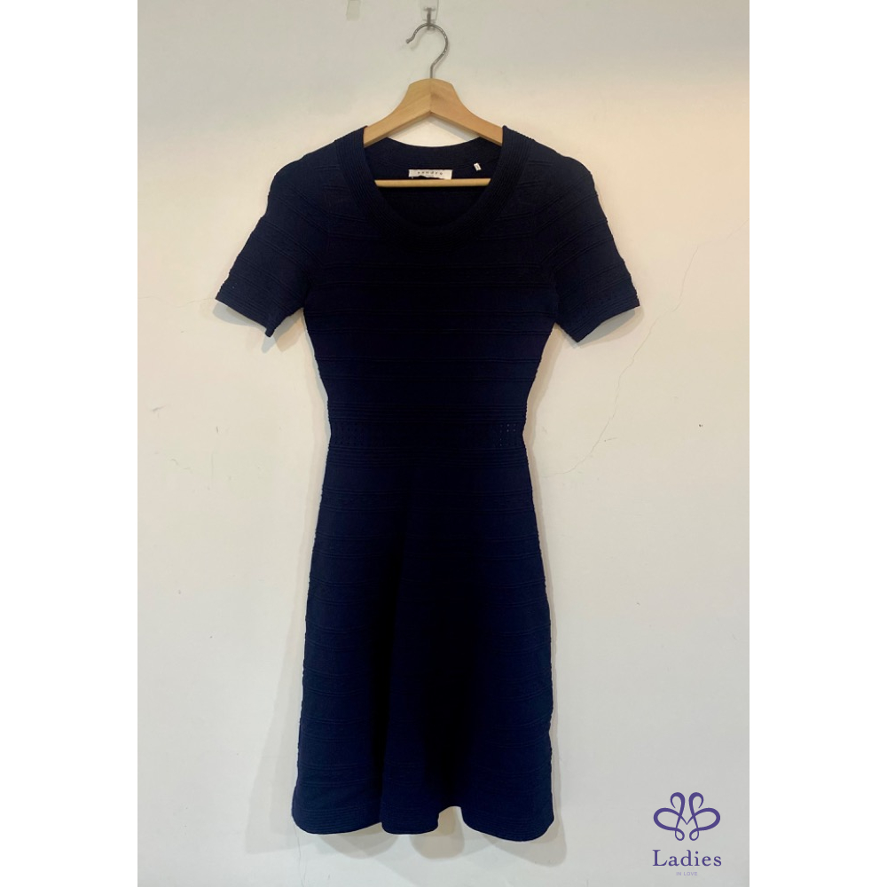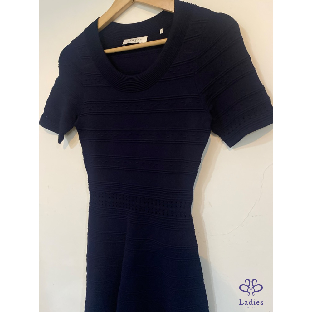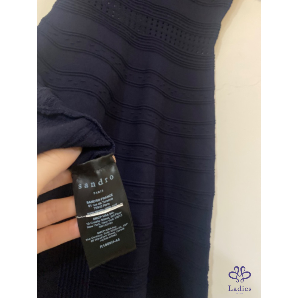 首頁 精品服飾 Sandro 深藍圓領簍空針織洋裝