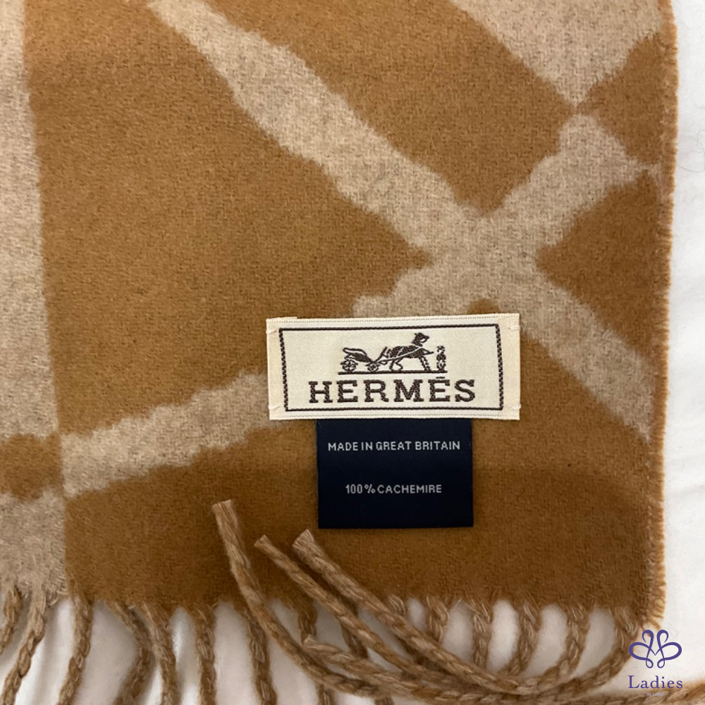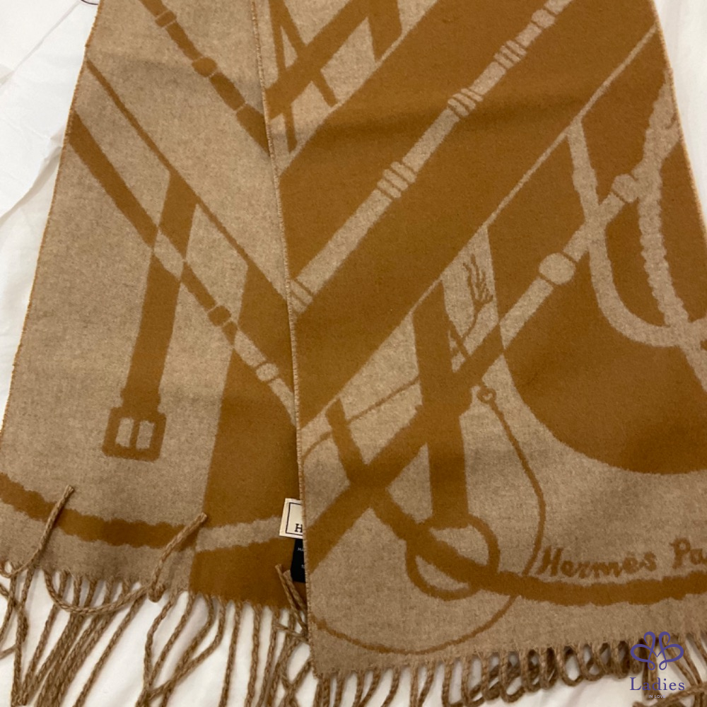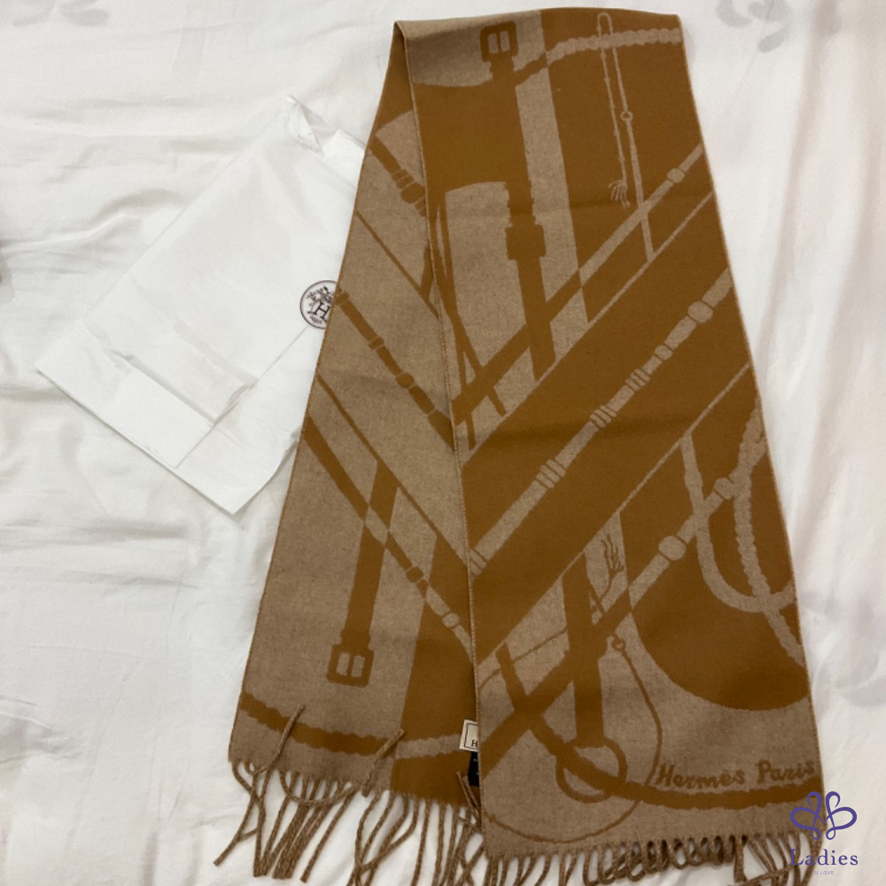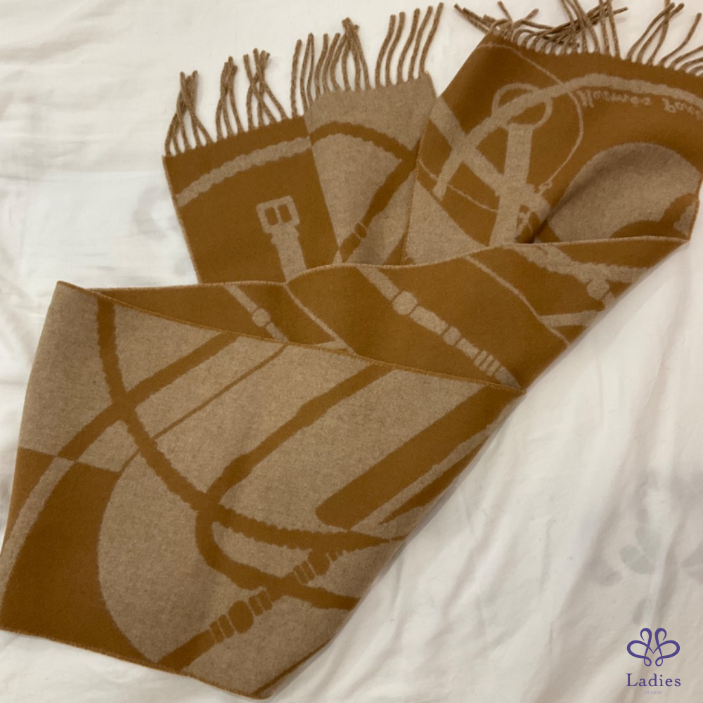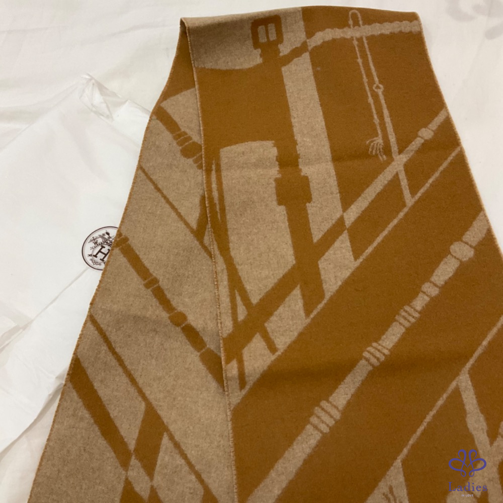 售 離櫃新 Hermès 2023 Clic-Clac 雙面圍巾 (駝色)
