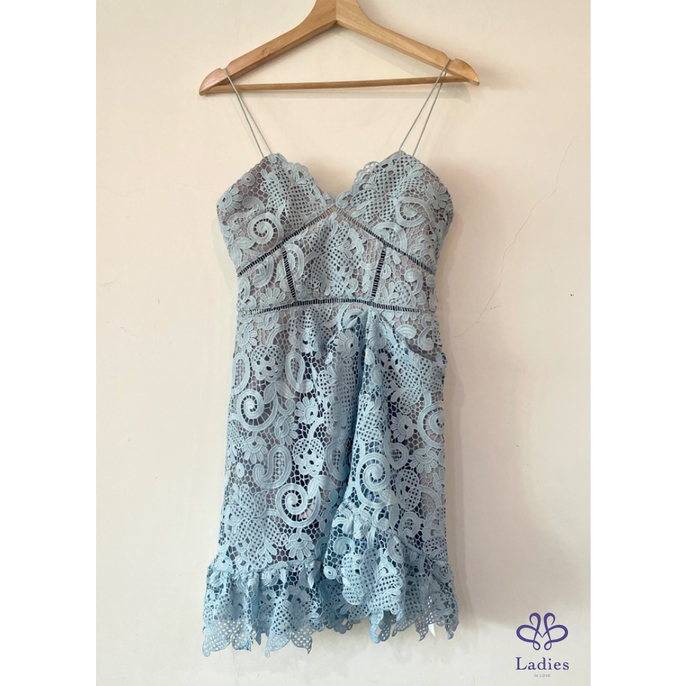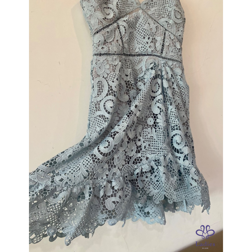 首頁 精品服飾 Self portrait淺藍杜鵑簍空蕾絲細肩帶魚尾短洋裝