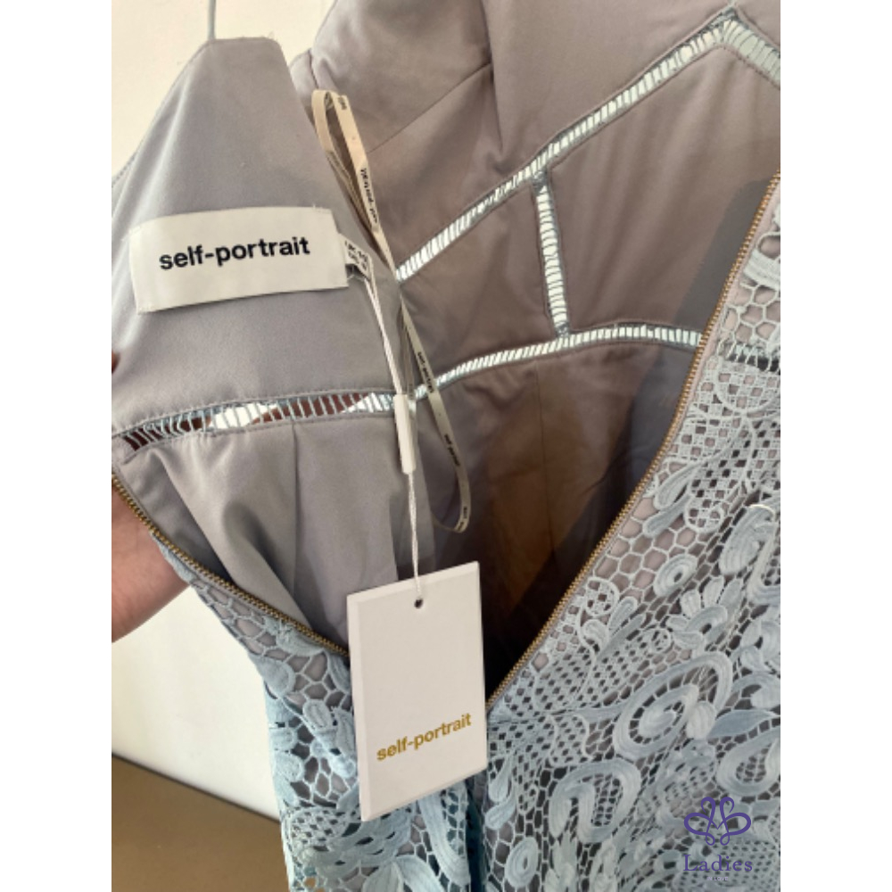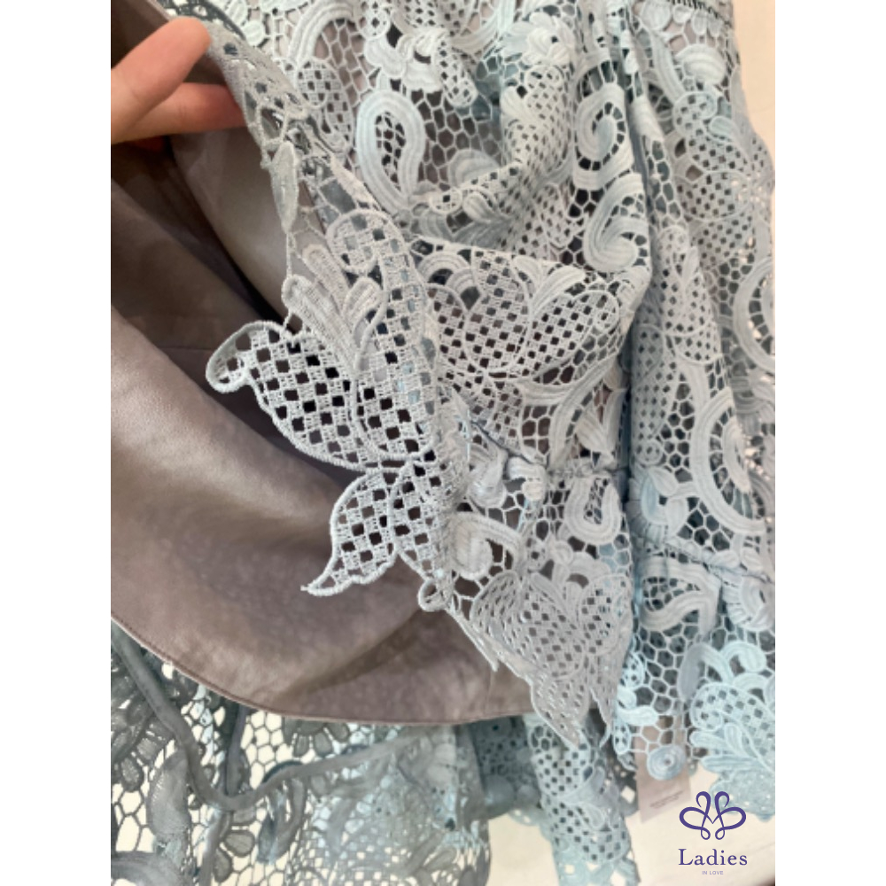 Self portrait淺藍杜鵑簍空蕾絲細肩帶魚尾短洋裝