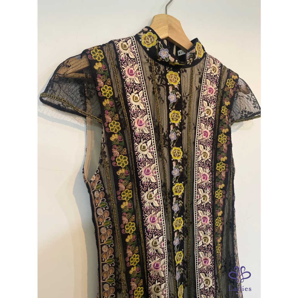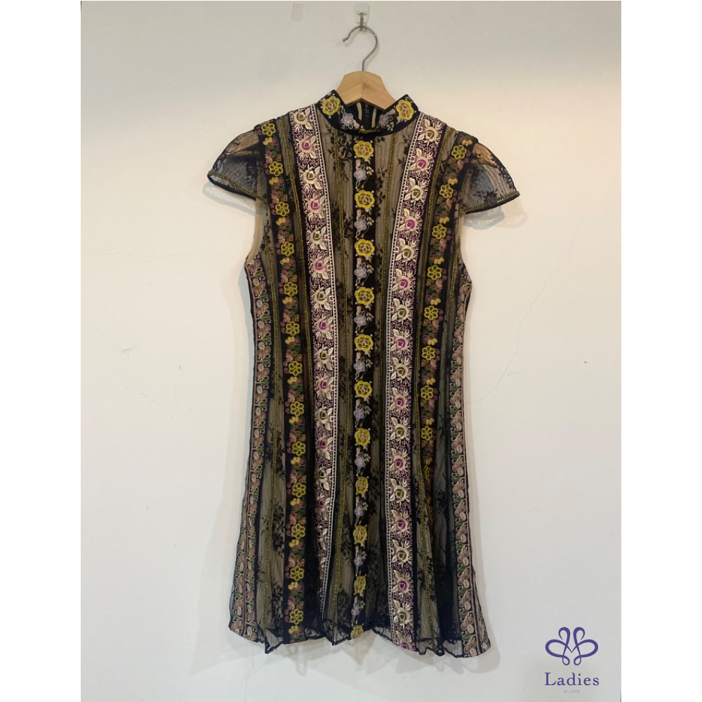 首頁 精品服飾 Alice + Olivia 花朵圖騰透膚燒花蕾絲旗袍洋裝