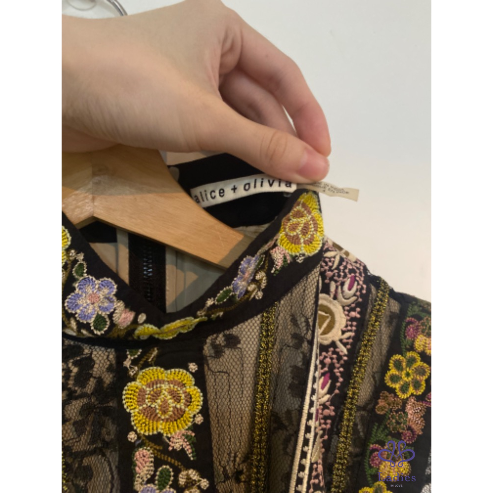 Alice + Olivia 花朵圖騰透膚燒花蕾絲旗袍洋裝