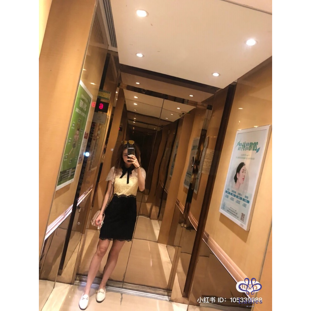 首頁 精品服飾 Sandro 領子蝴蝶結透膚蕾絲洋裝