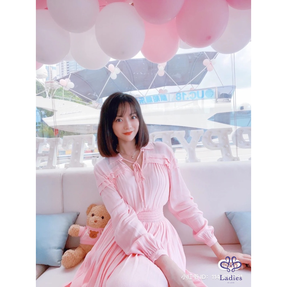 Maje 寶寶粉柔軟類雪紡垂墜洋裝